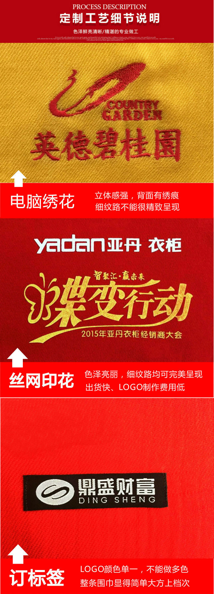 中国大红色围巾定logo刺绣制作做印字聚会活动公司年会红围巾披肩