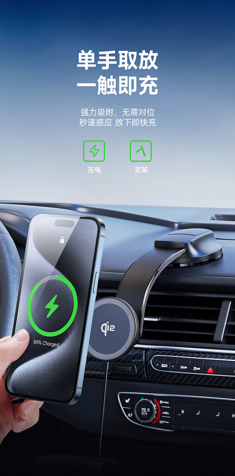 颜色 黑色 车载磁吸无线快充