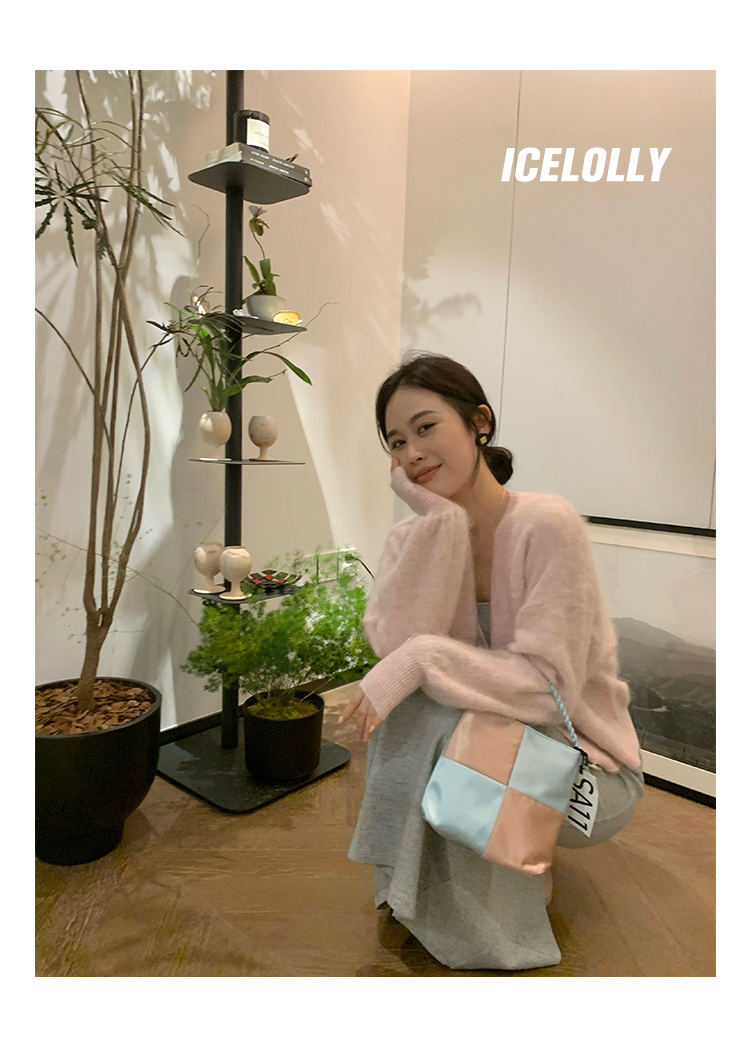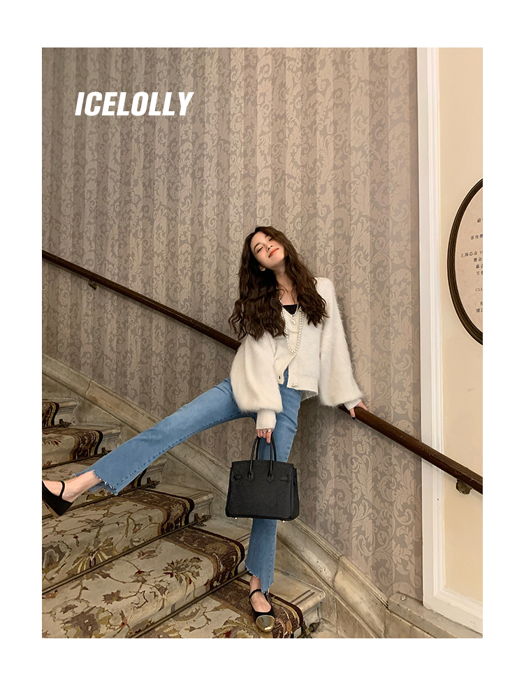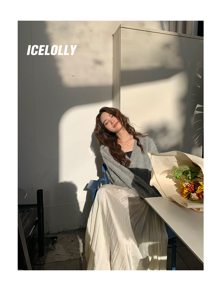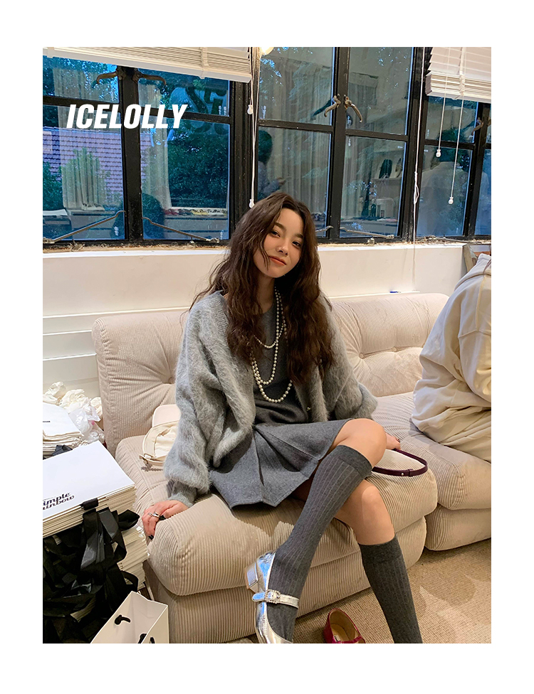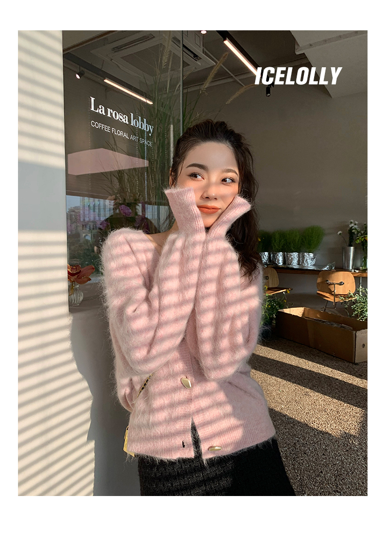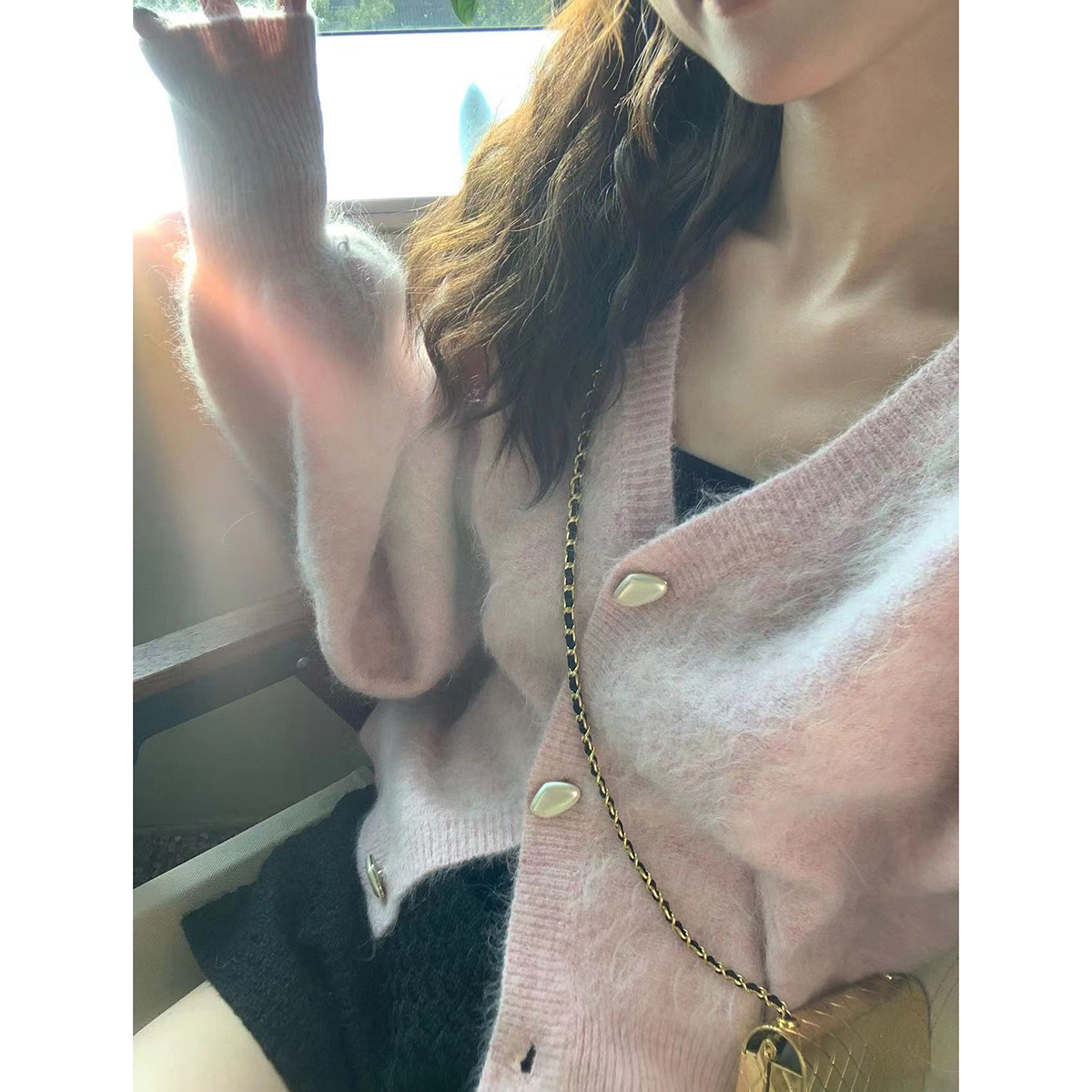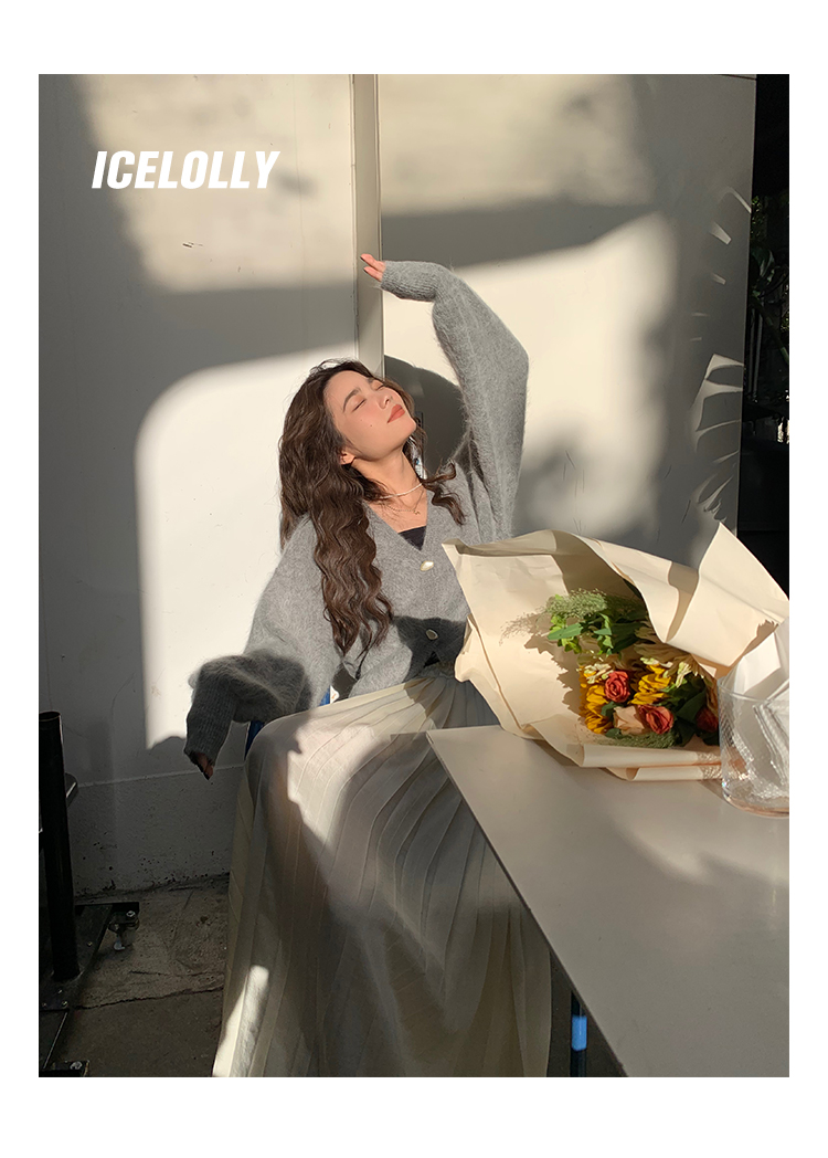 ICELOLLY慵懶風V領羊毛毛衣外套女秋冬外穿短款針織開衫深秋上衣