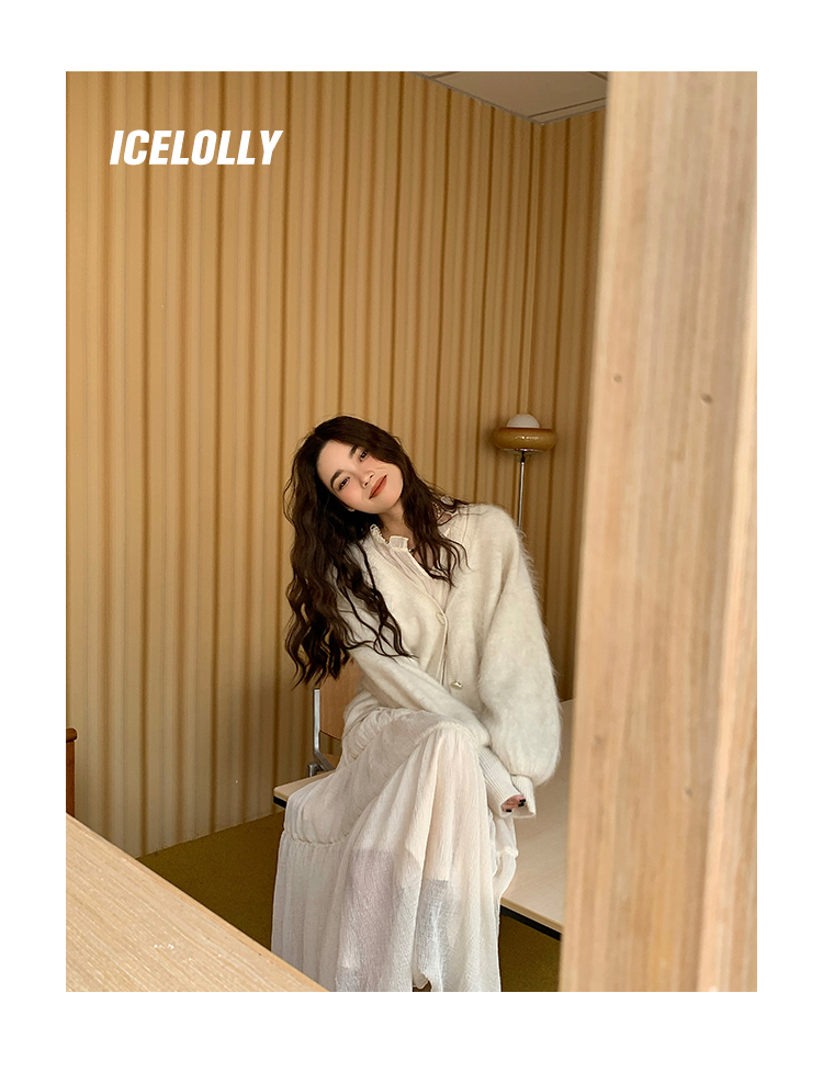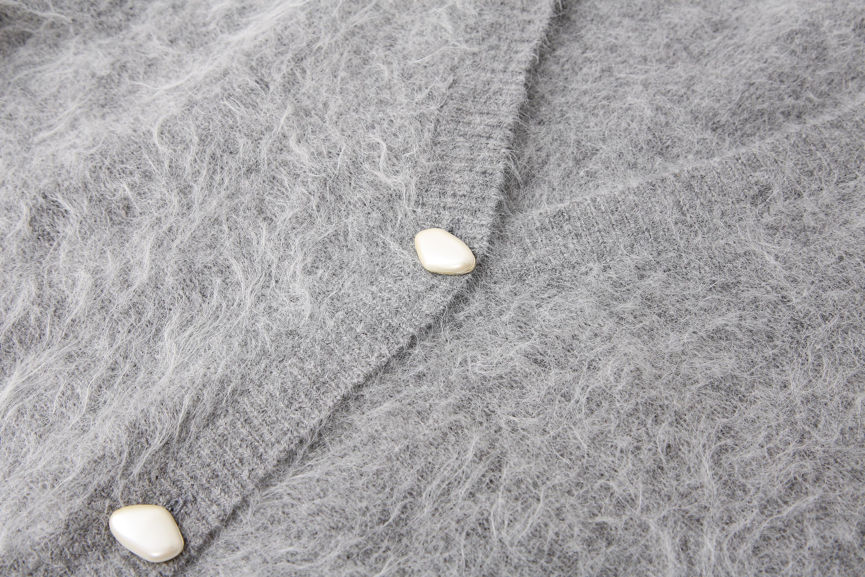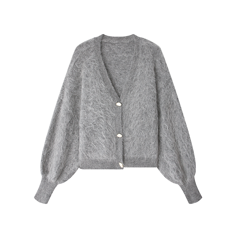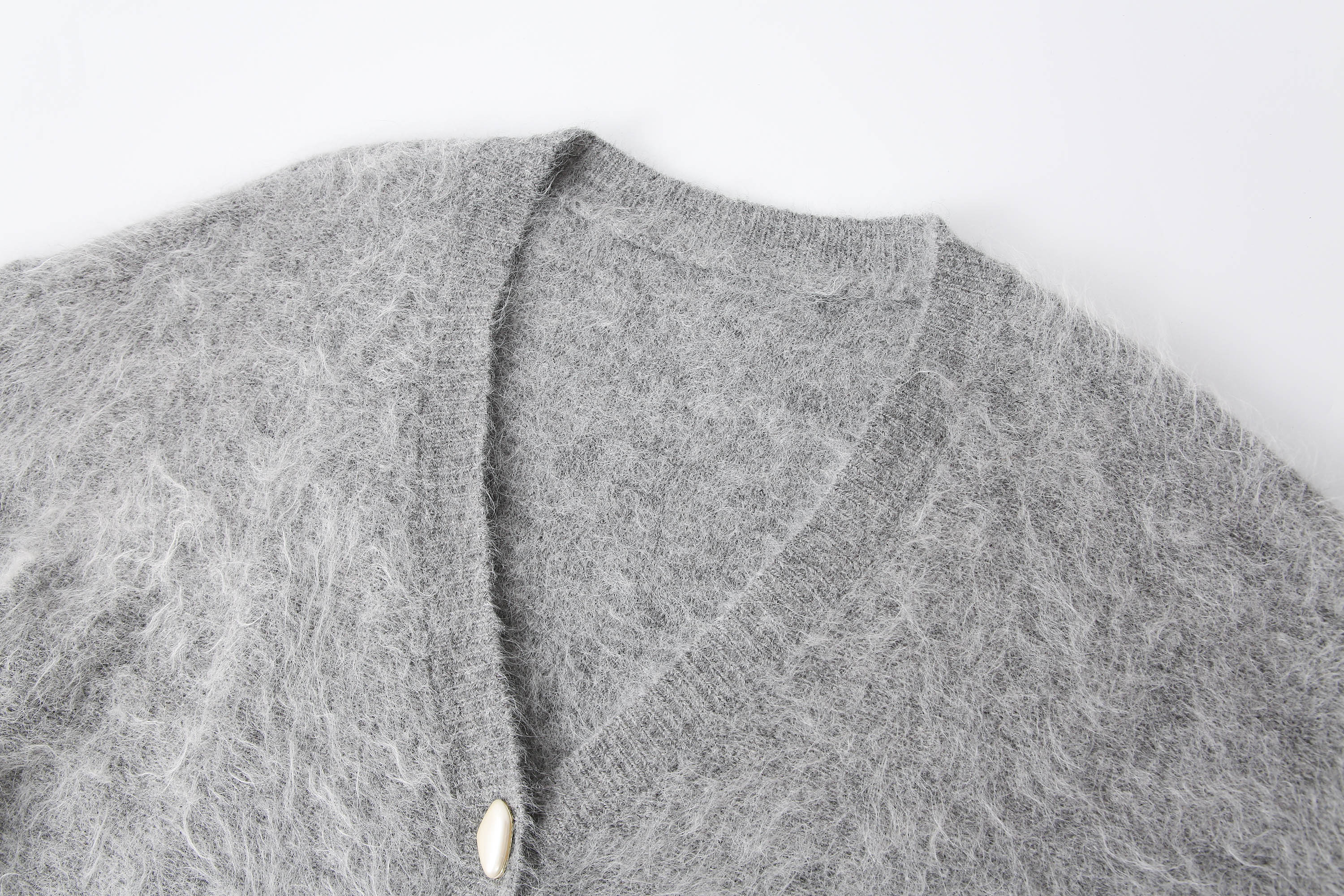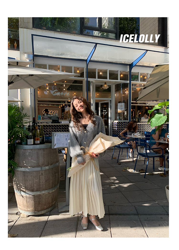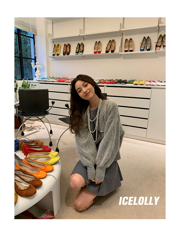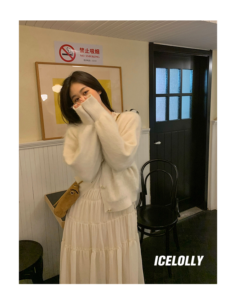 ICELOLLY慵懶風V領羊毛毛衣外套女秋冬外穿短款針織開衫深秋上衣