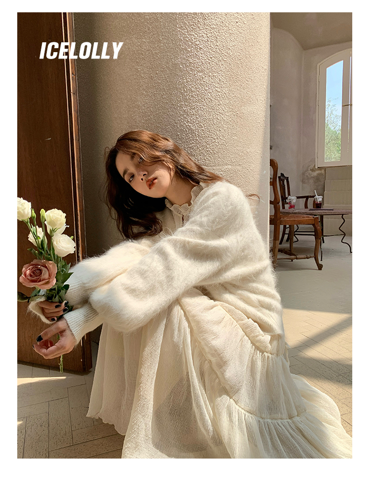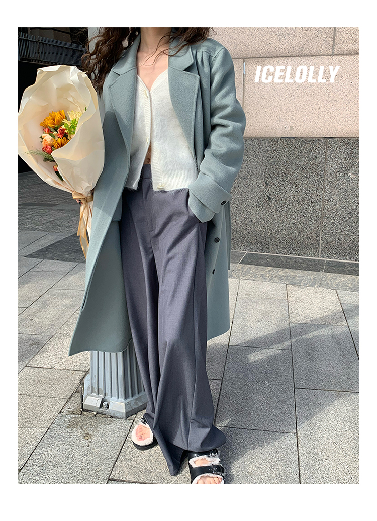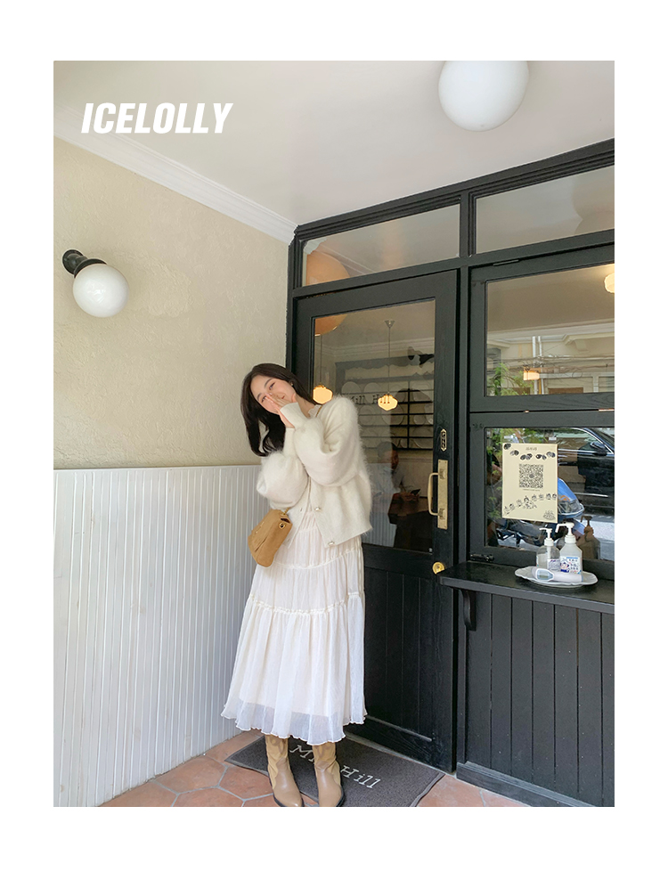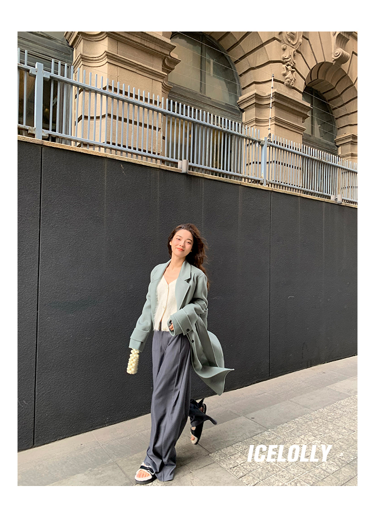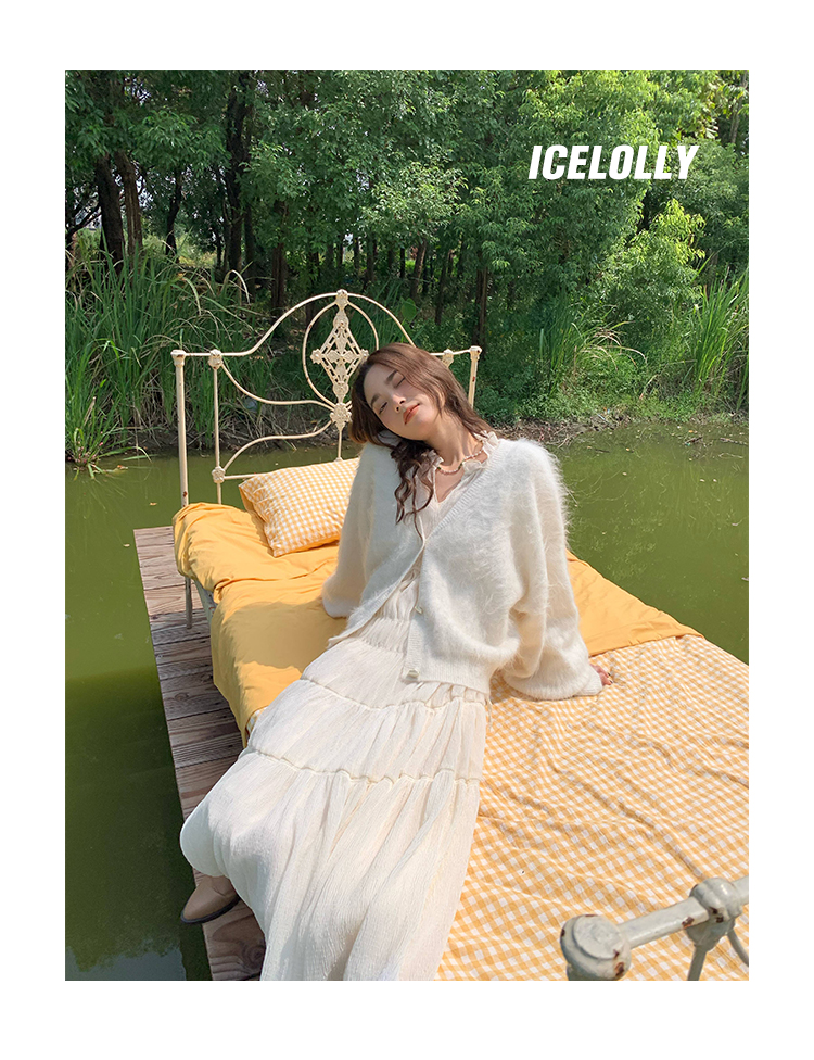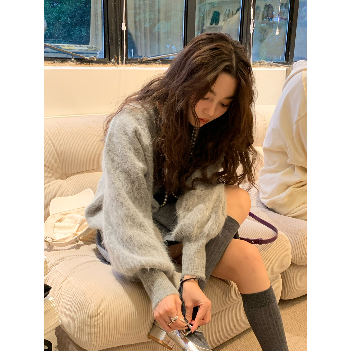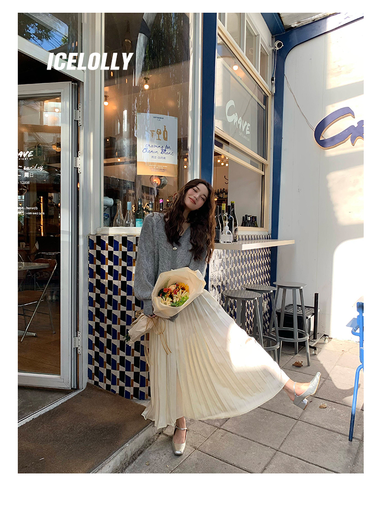 ICELOLLY慵懶風V領羊毛毛衣外套女秋冬外穿短款針織開衫深秋上衣