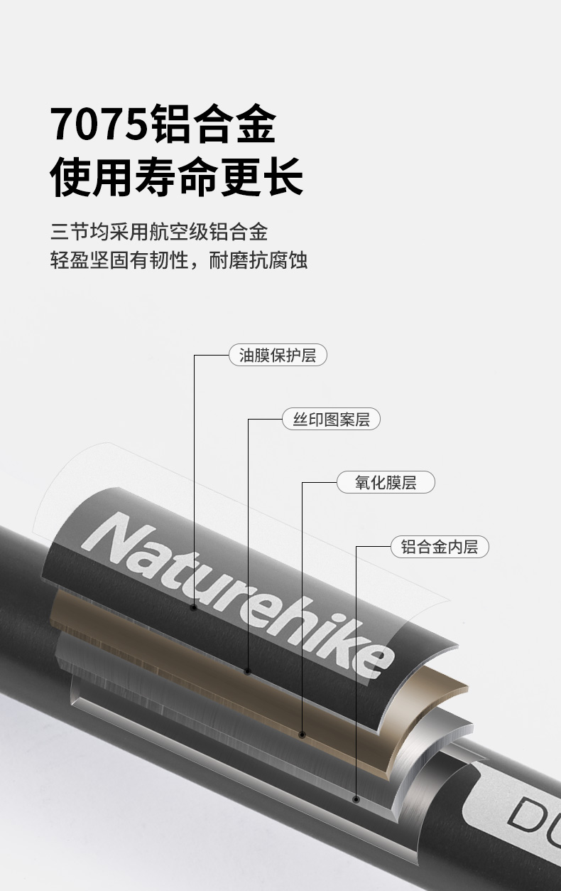 Naturehike挪客戶外鋁合金登山杖外鎖伸縮徒步手杖男女款爬山裝備
