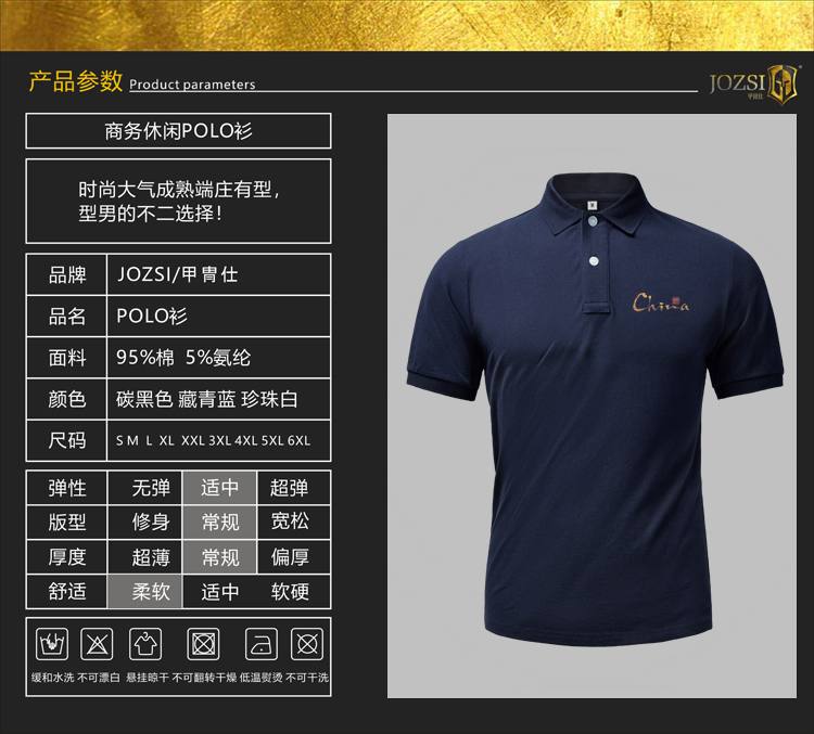 JOZSI/甲冑仕翻領polo衫男夏短袖t恤純棉中國風休閒商務男士半袖