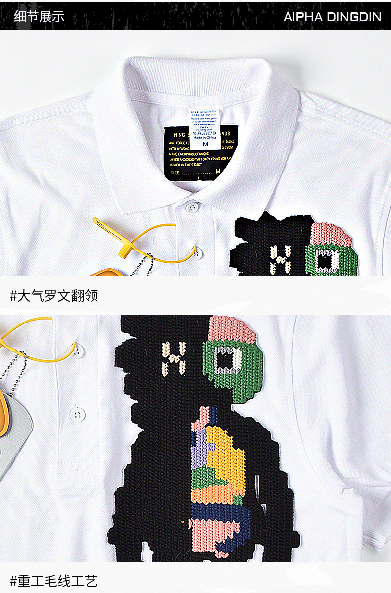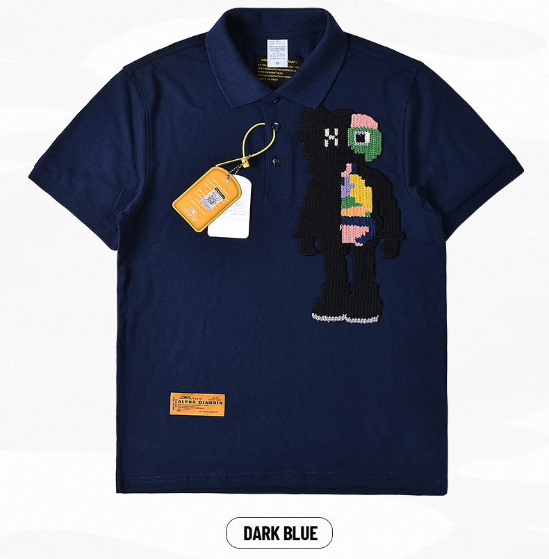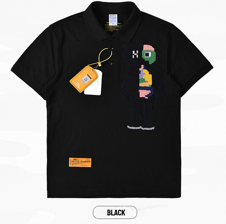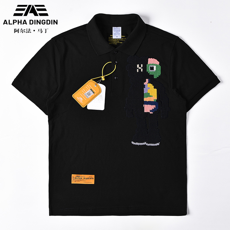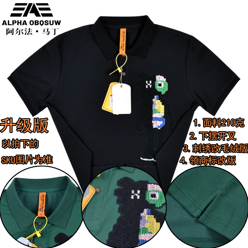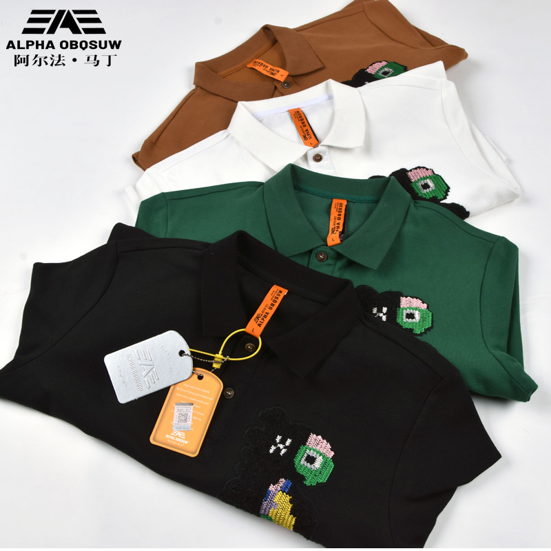 阿爾法·馬丁潮牌Polo衫男短袖夏季小眾設計感刺繡翻領t恤男短袖