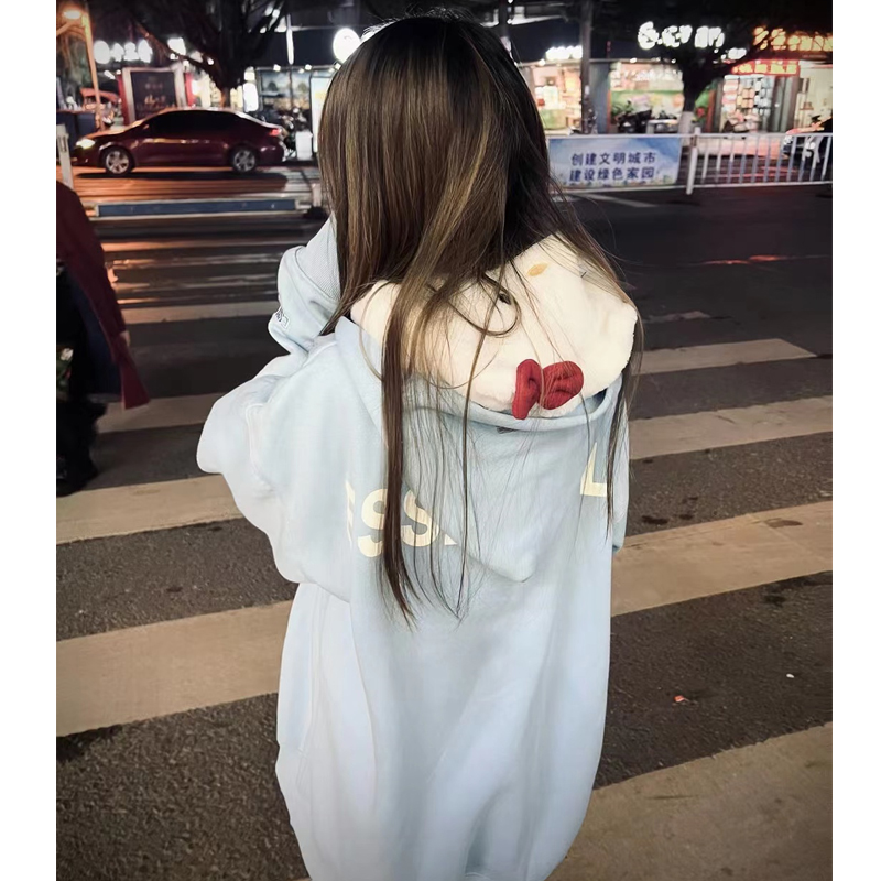 美式oversize銀狐絨衛衣女2022新款加絨加厚秋冬小個子情侶裝外套