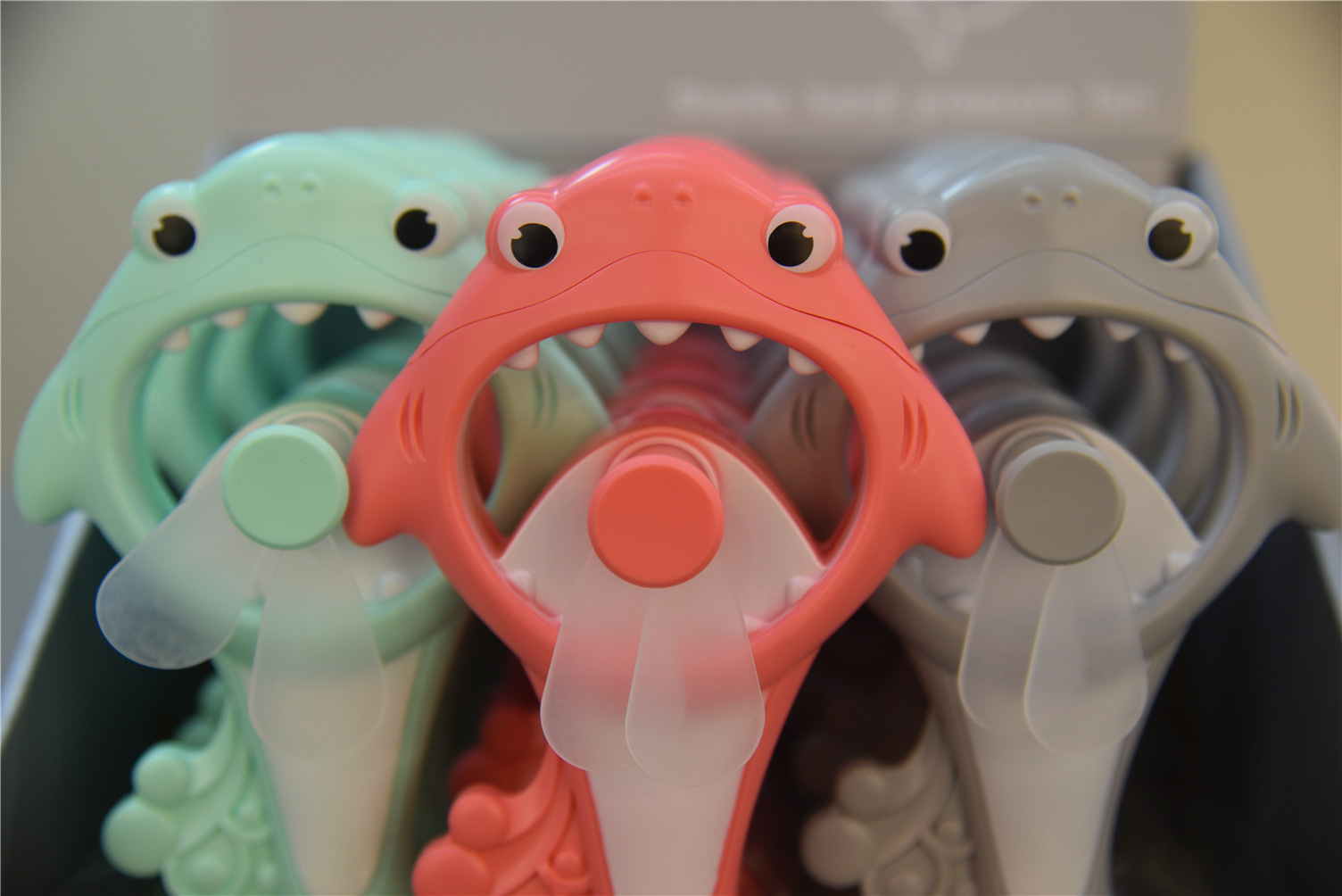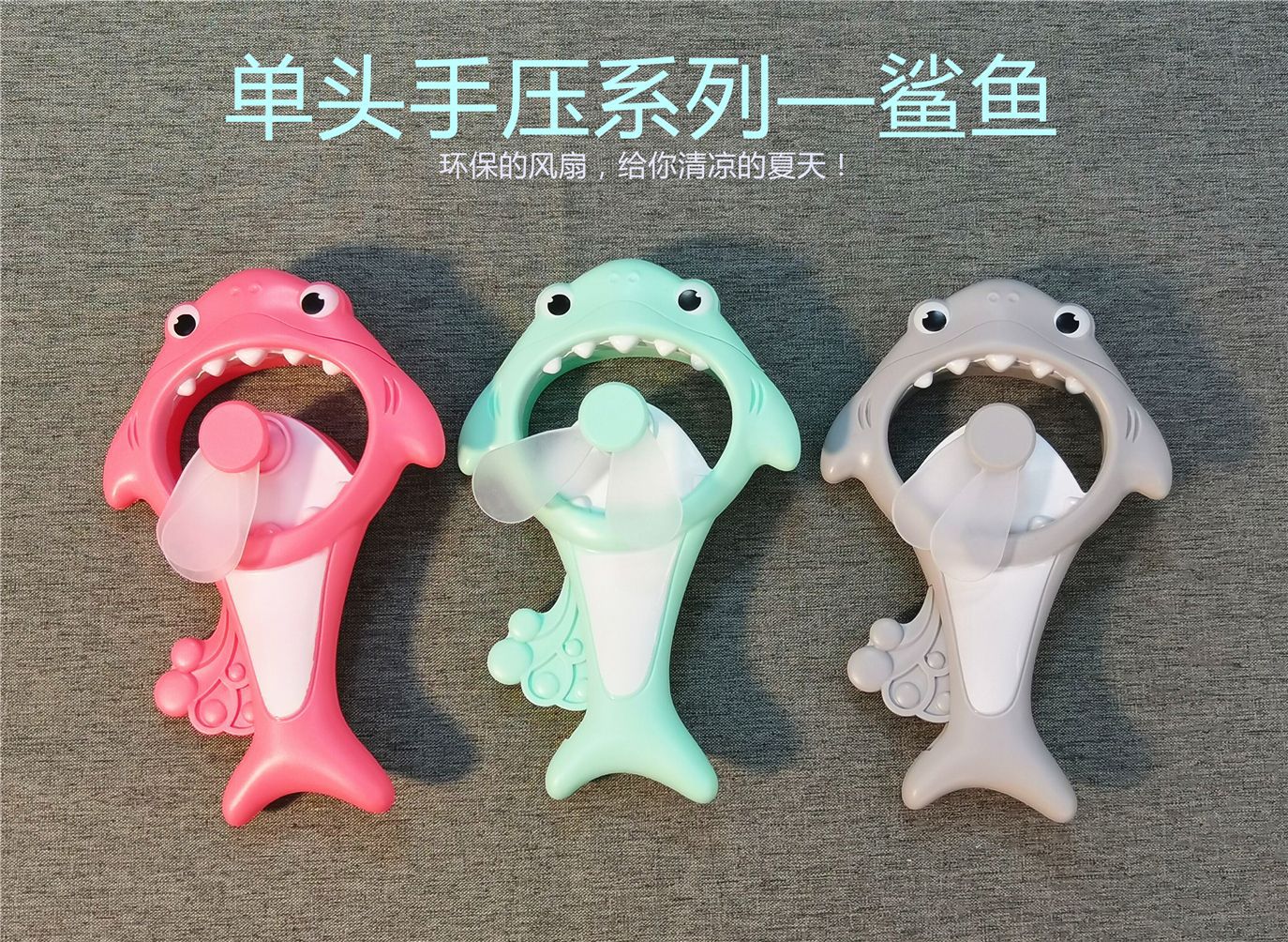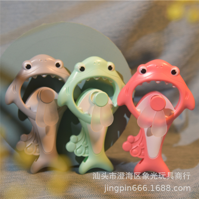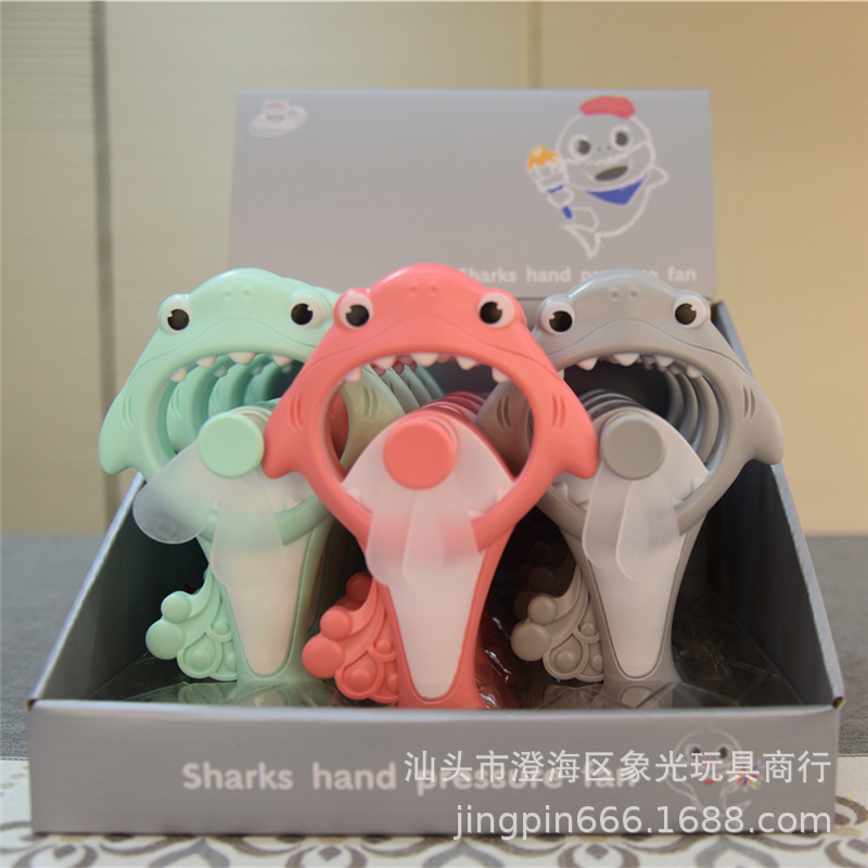 Q版鲨鱼手压风扇手拿按压式随身手持风扇动物园乐园活动礼品风扇