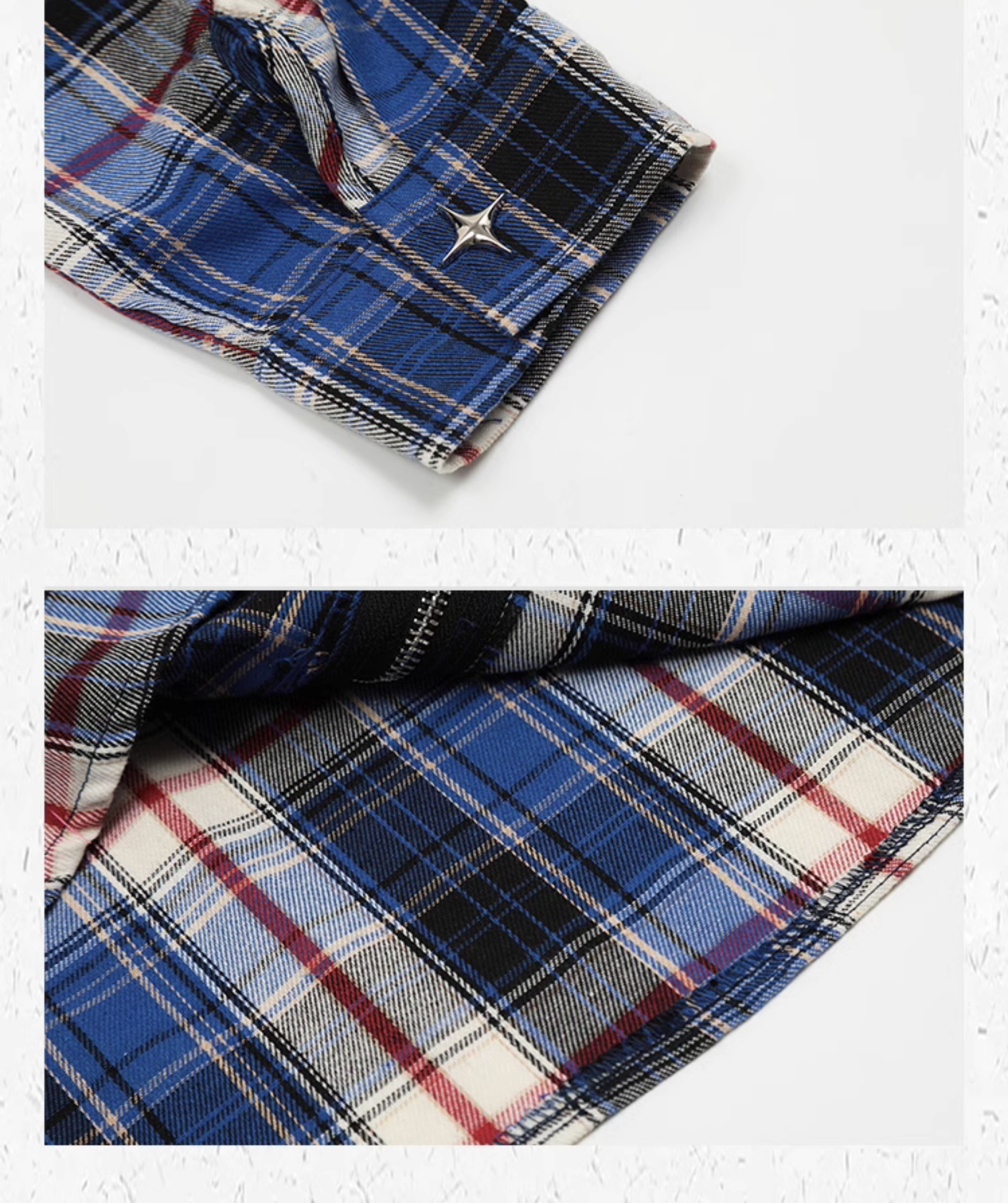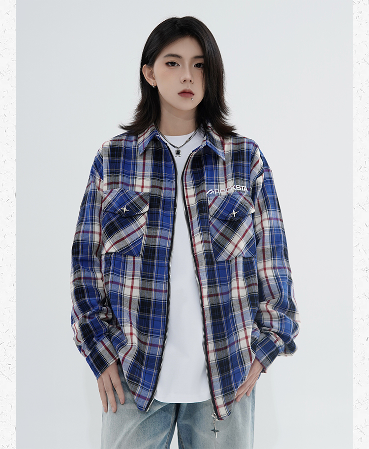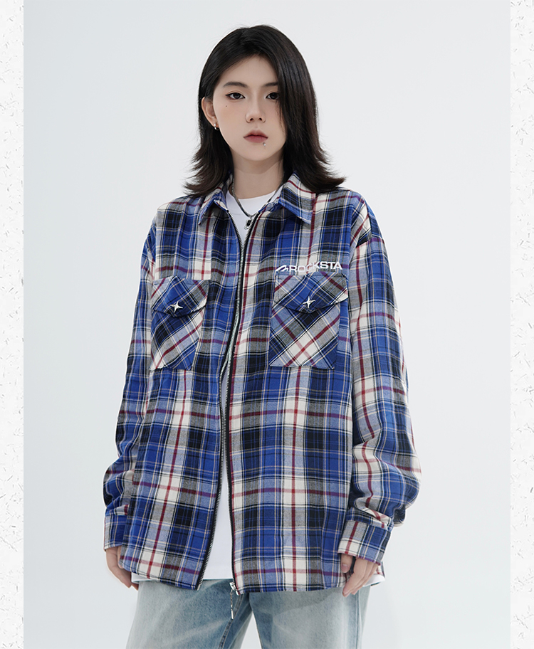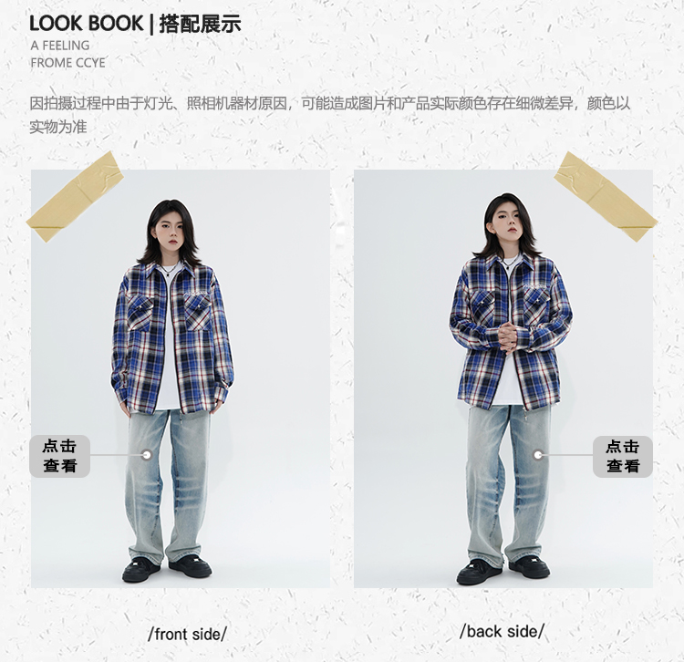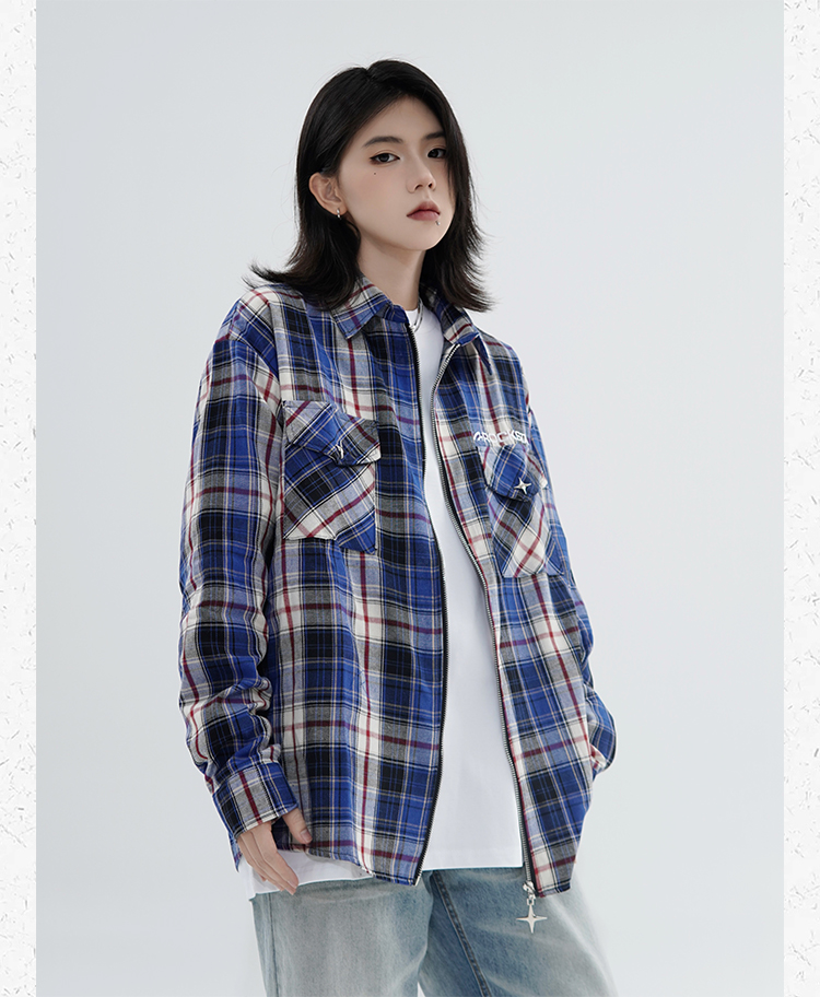 川川也美式街頭格子長袖襯衫外套男女復古寬鬆POLO衫開衫上衣潮牌