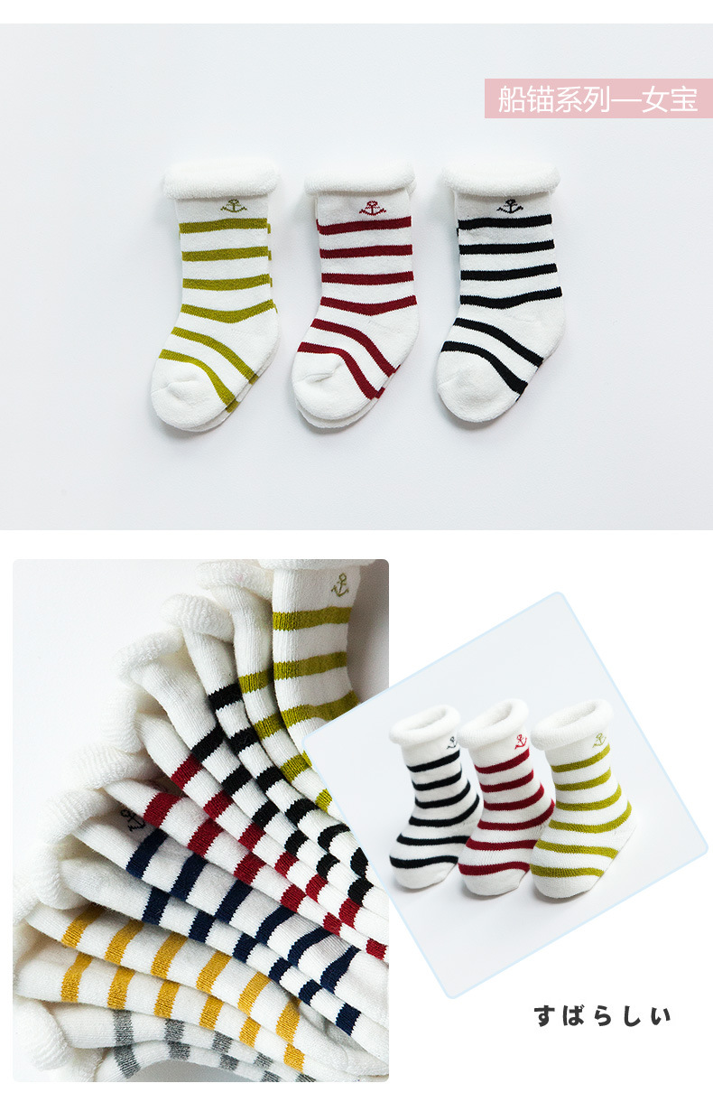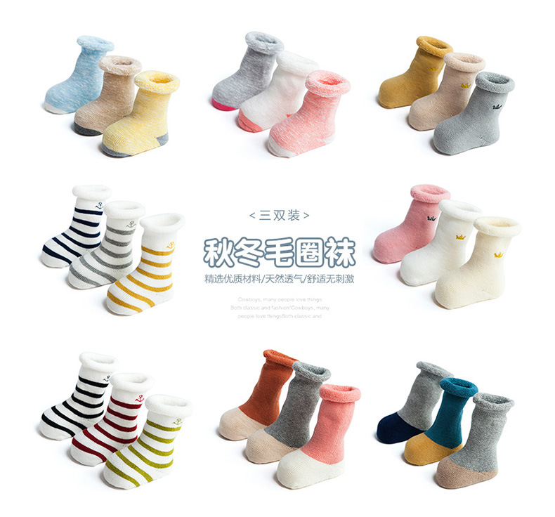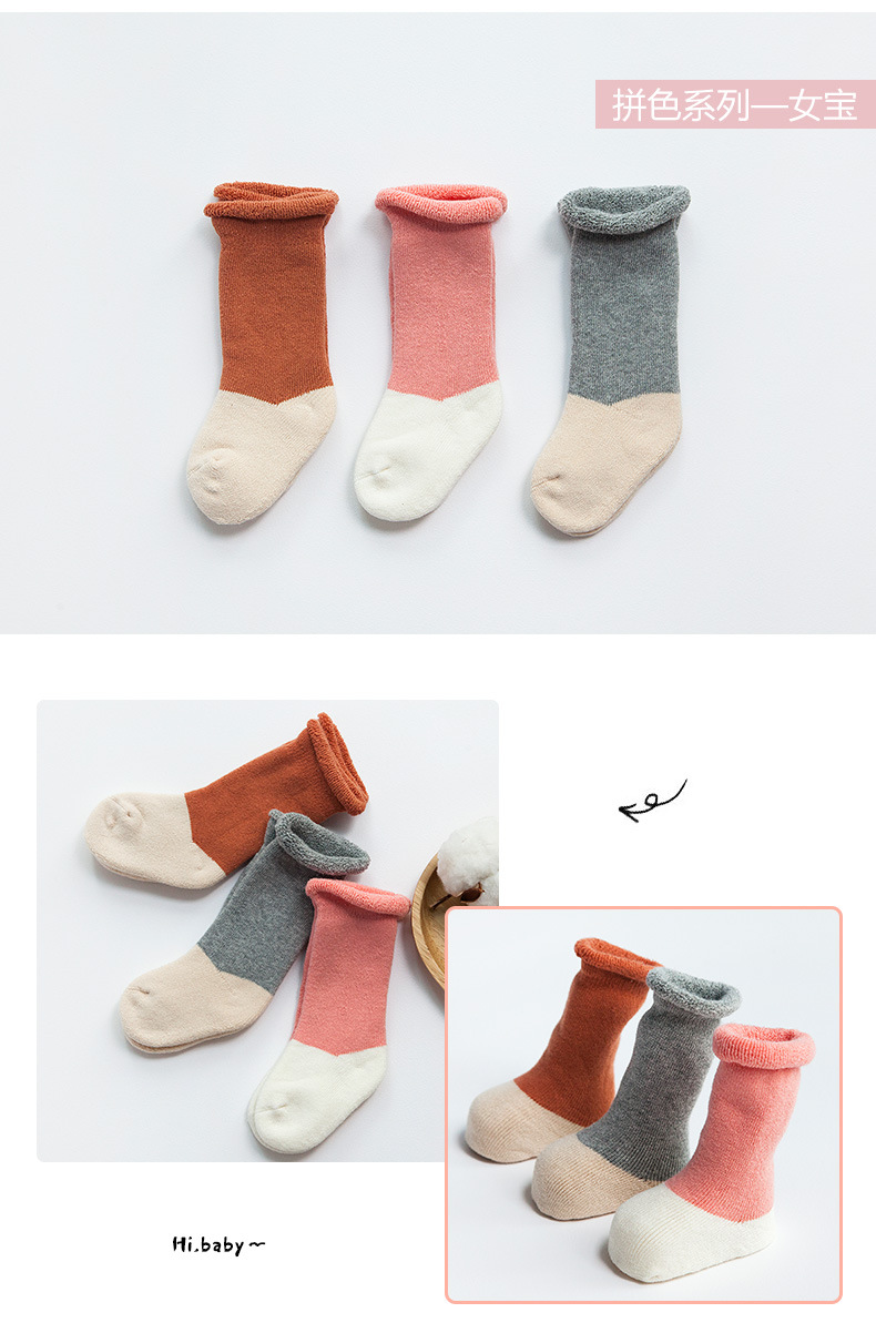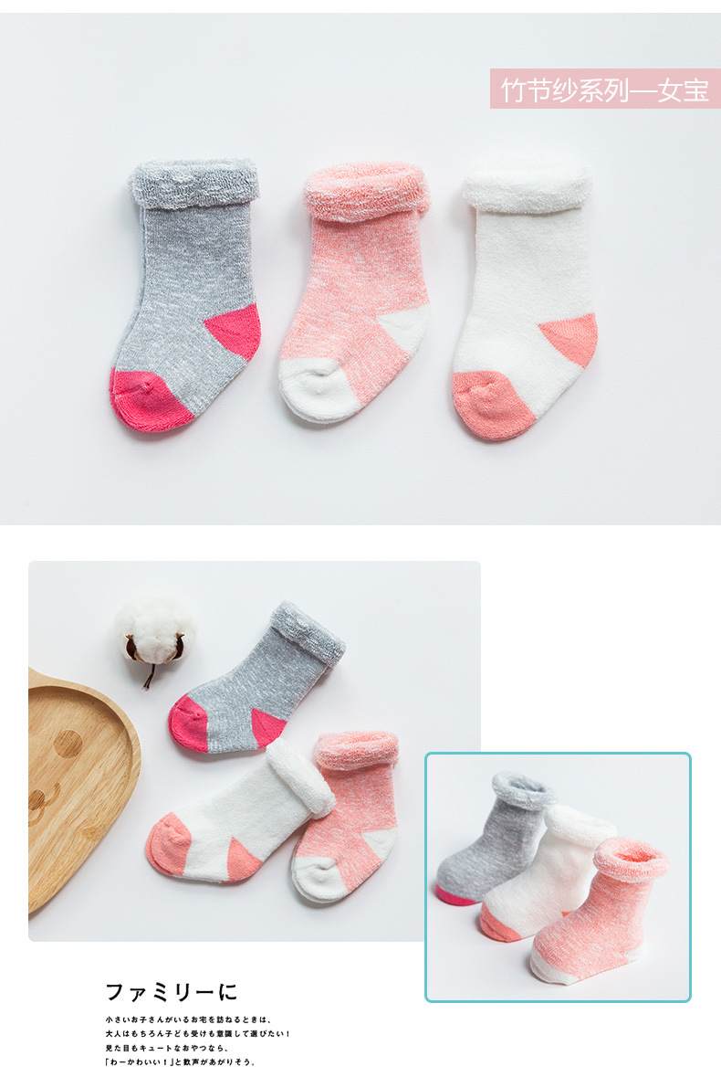 秋冬新款毛圈加厚婴儿袜子新生儿男女中筒宝宝袜棉儿童毛圈袜松口