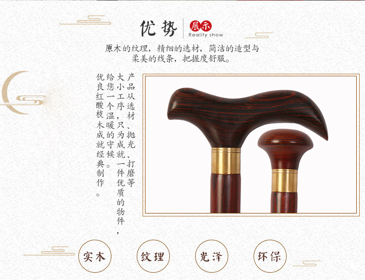 實木老人柺杖紅木紅酸枝木質老年人防滑柺棍龍頭手杖木頭拐扙包郵