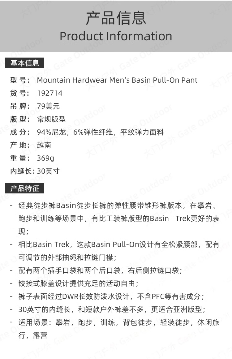 Mountain Hardwear山浩戶外休閒褲 Basin Pull-On 男褲薄款彈力