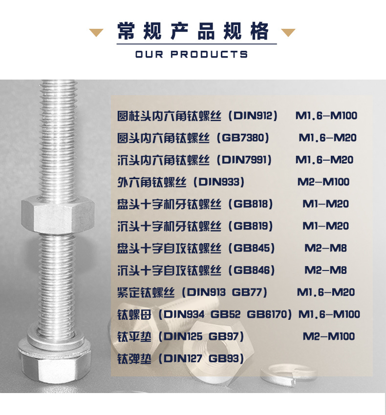 钛紧固件20年生产经验,已通过ISO9001:2015国际质量管理体系认证