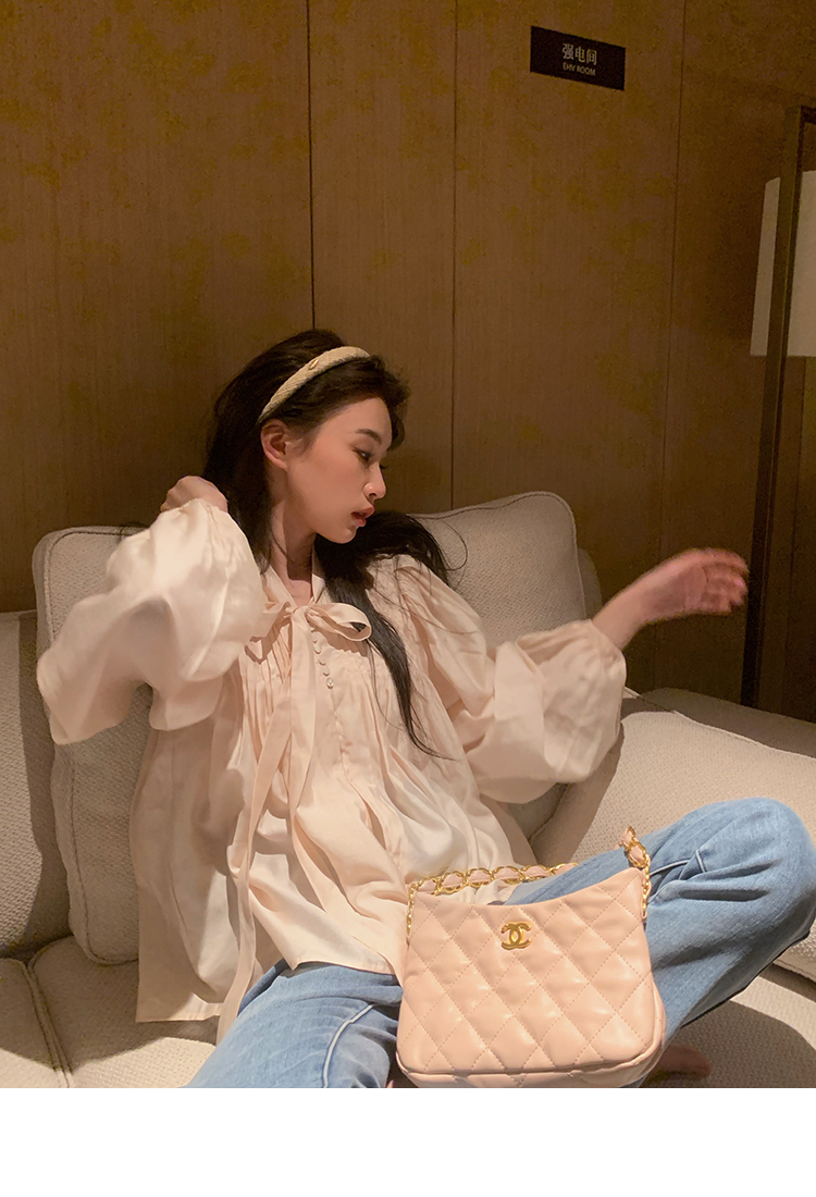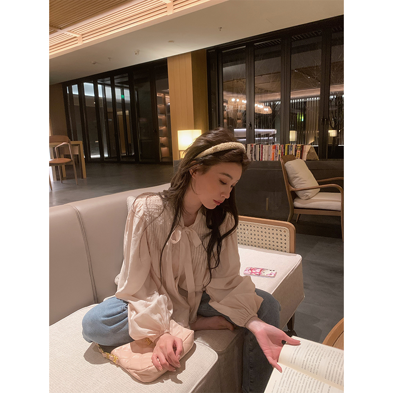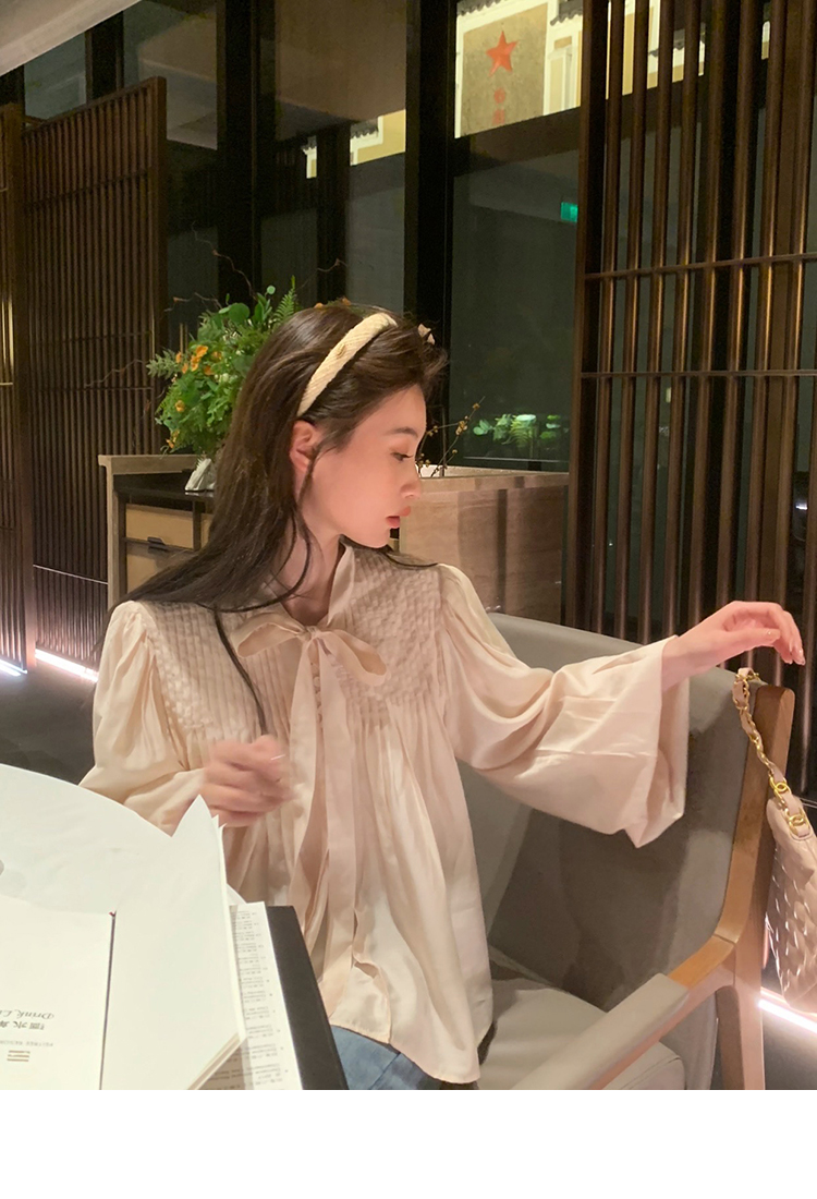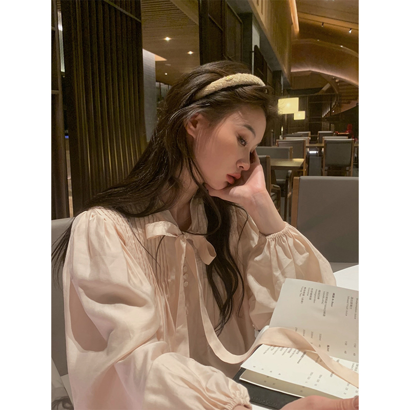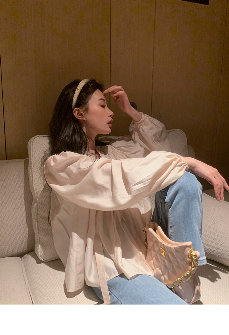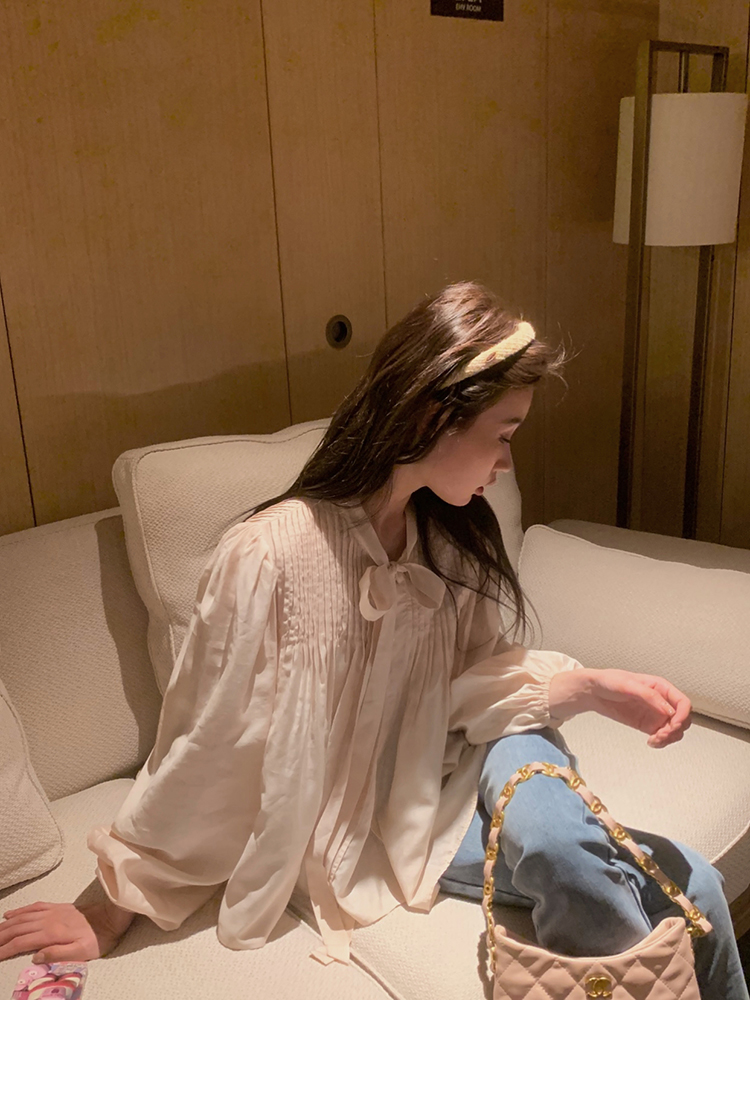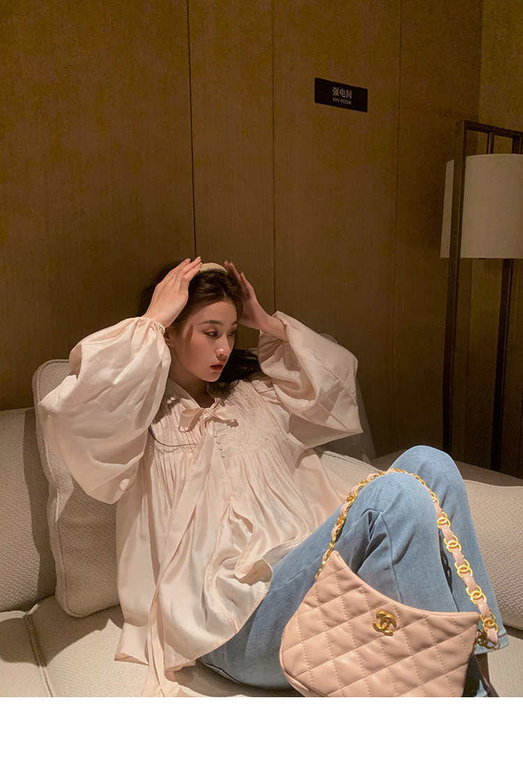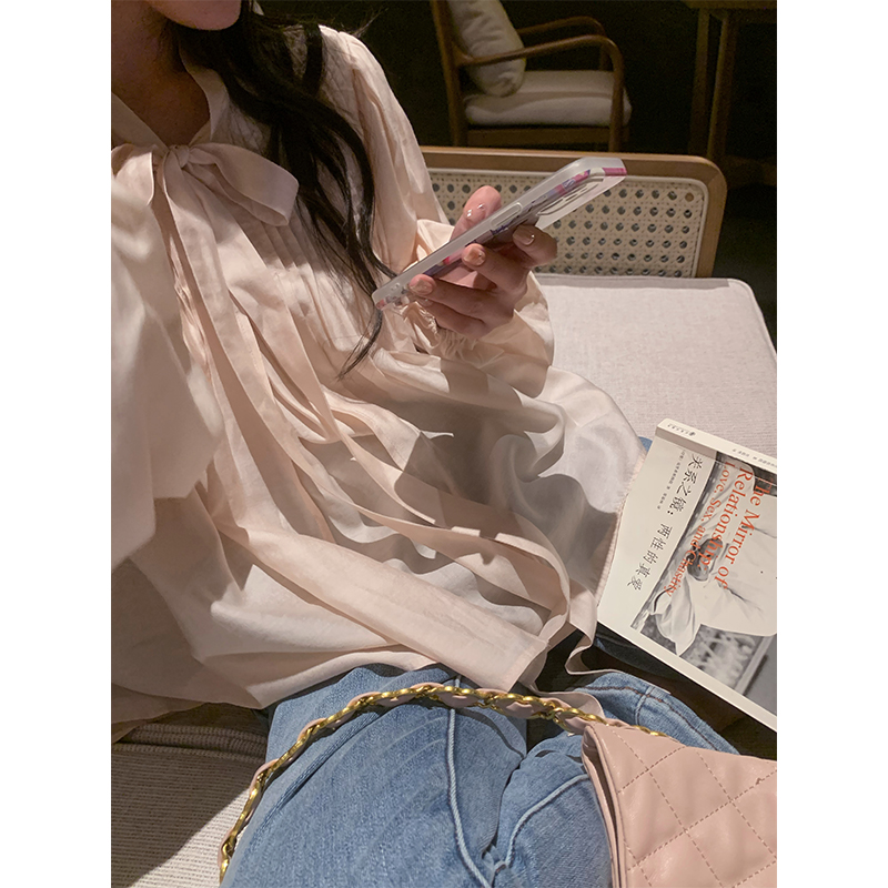 are U shop天絲棉古著款襯衫女春2023年法式宮廷風設計感小眾上衣