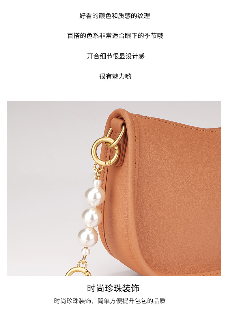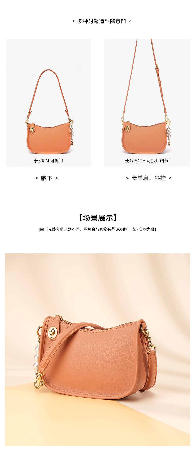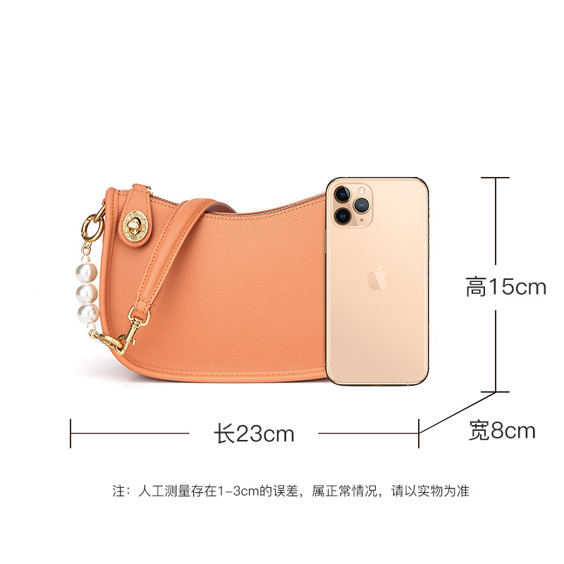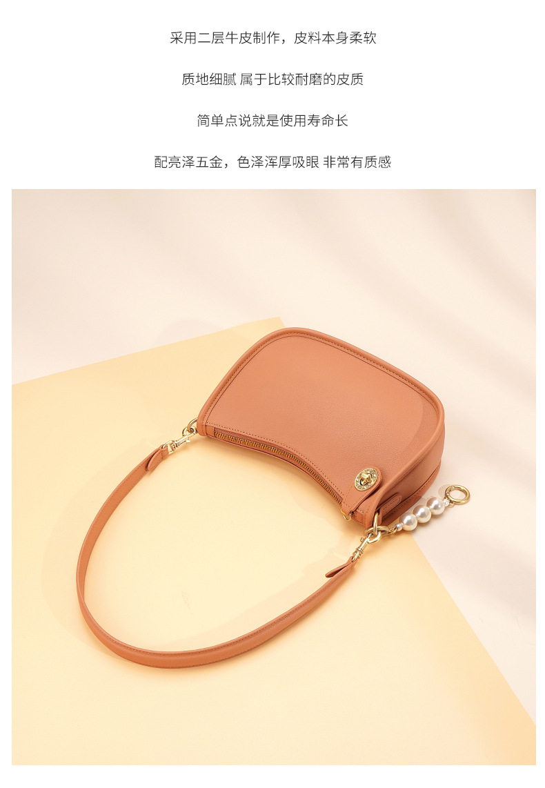 真皮珍珠腋下包小众高级感法棍包女潮流简约百搭牛皮单肩斜挎包