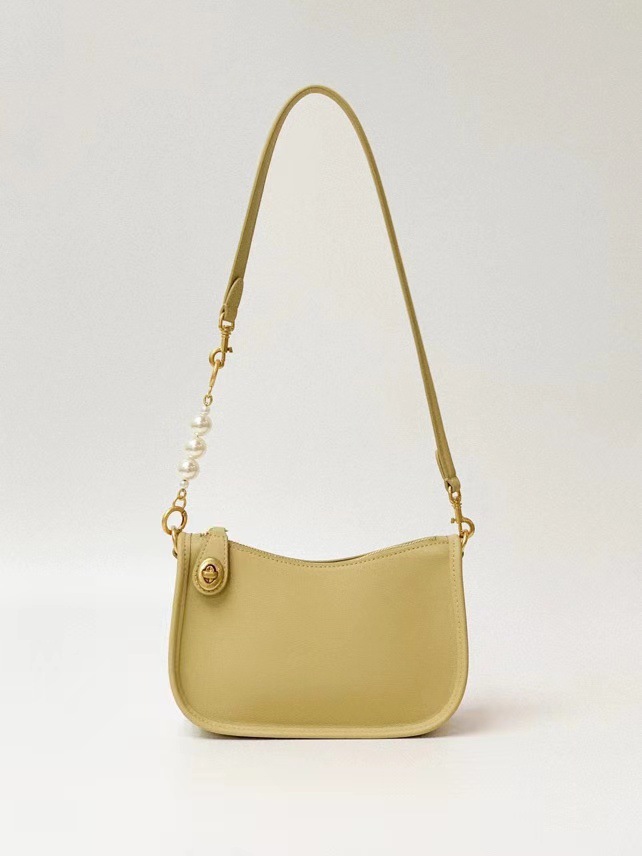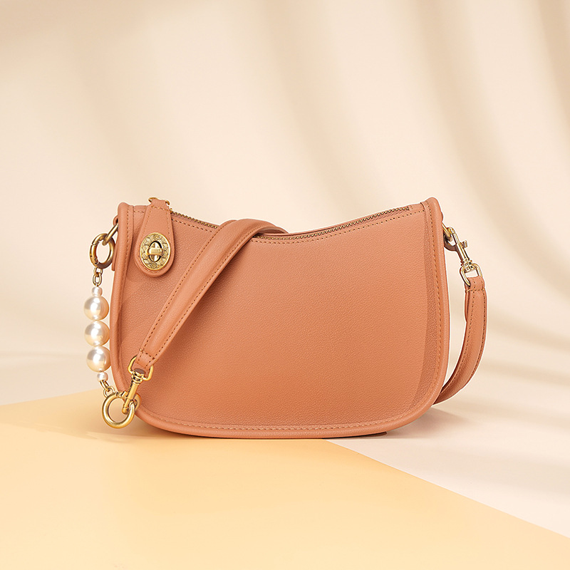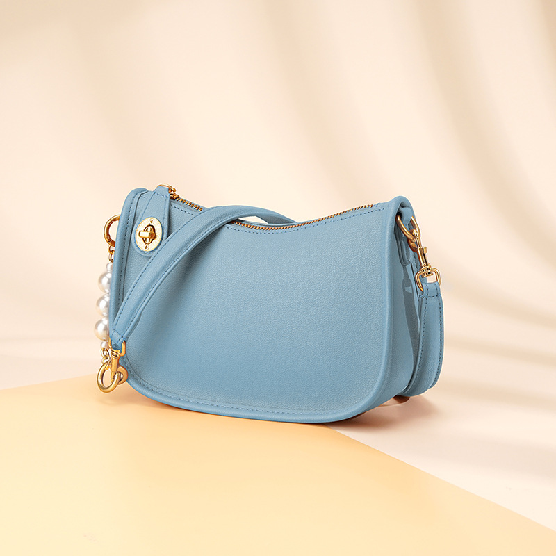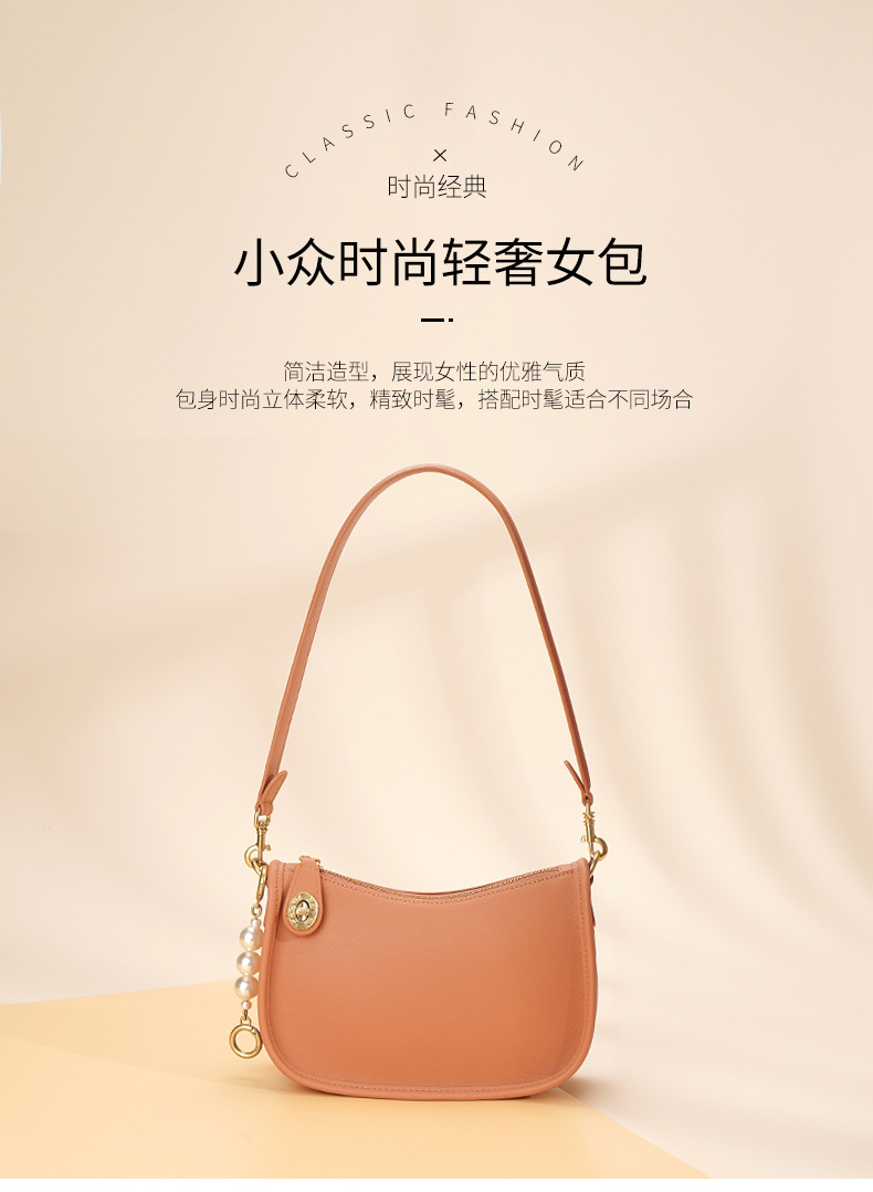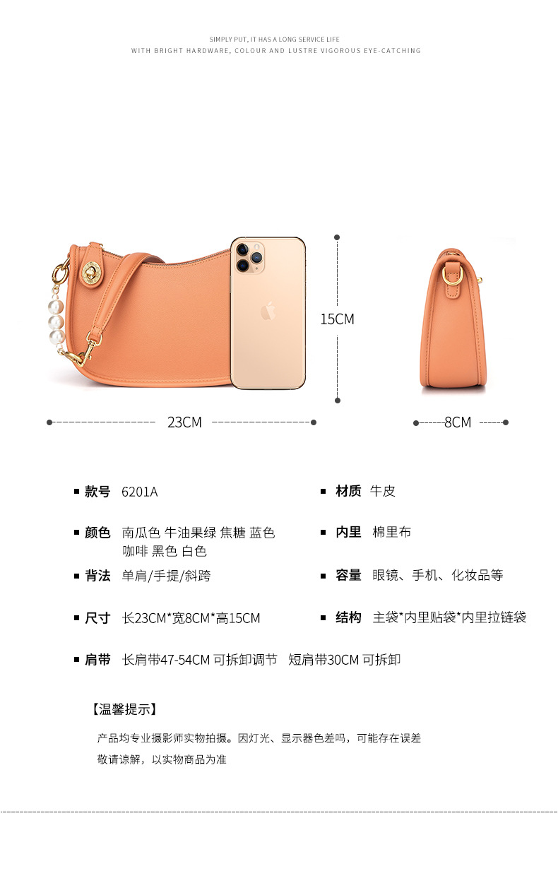 真皮珍珠腋下包小众高级感法棍包女潮流简约百搭牛皮单肩斜挎包