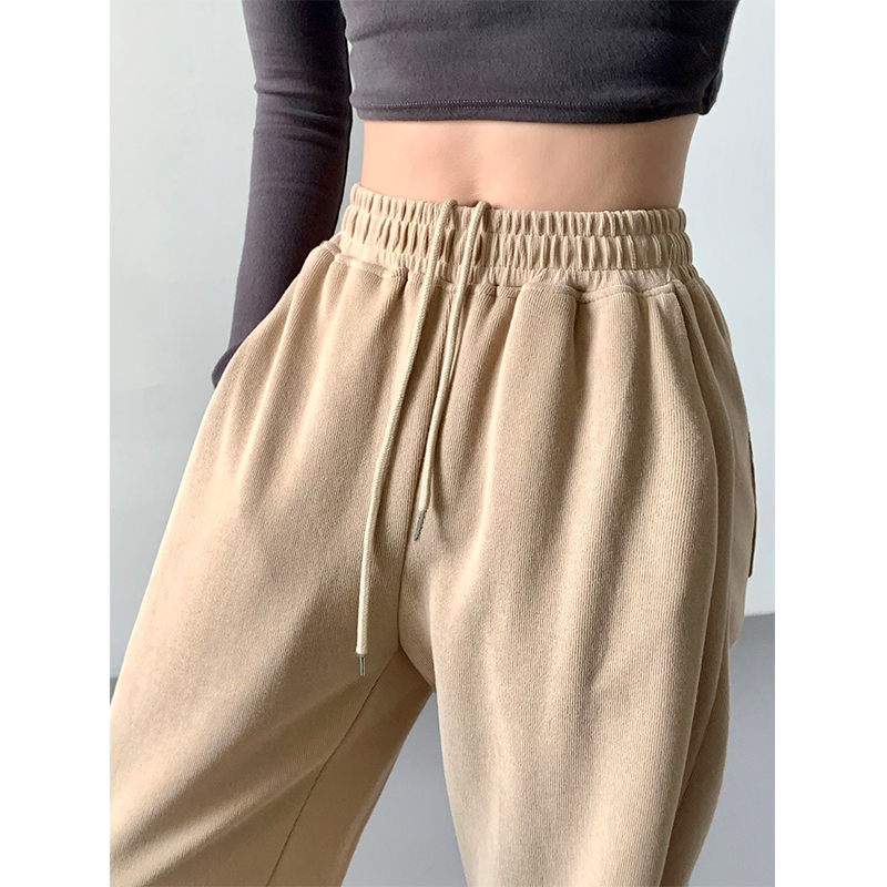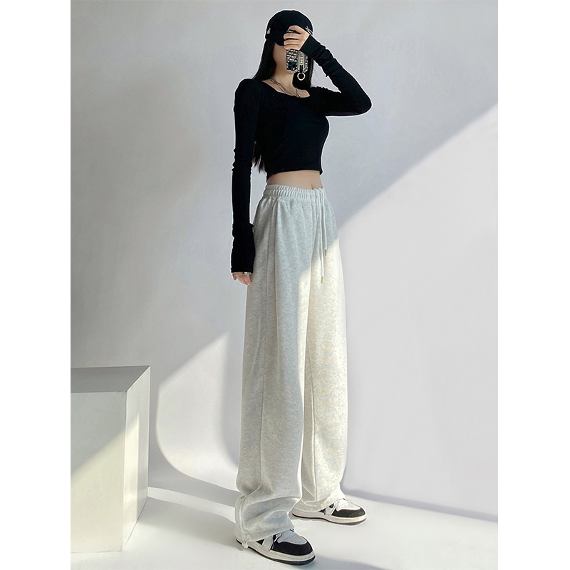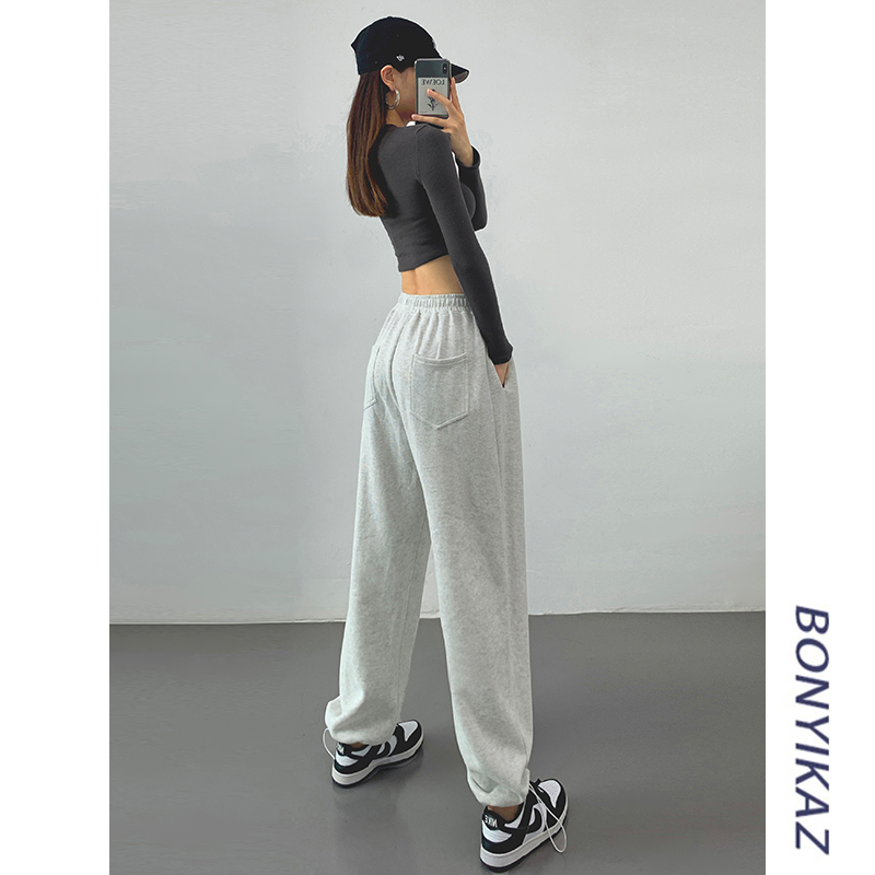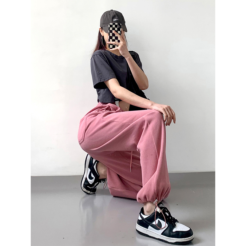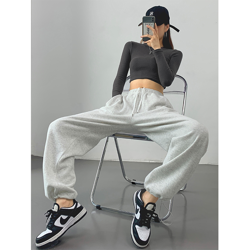 灰色運動褲女春秋薄款美式顯瘦寬鬆束口褲休閒抽繩舞蹈衛褲ins潮