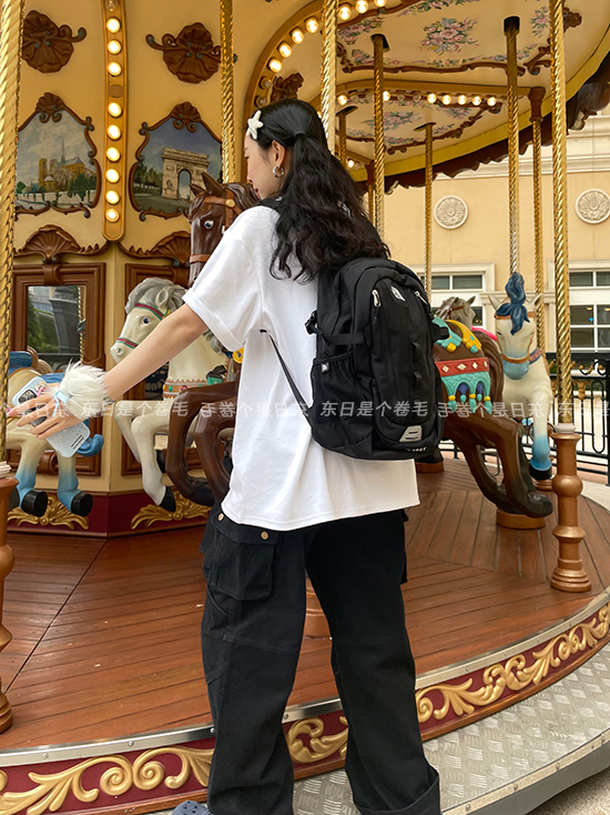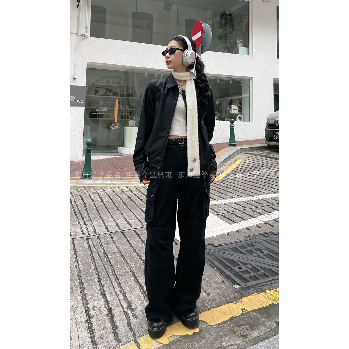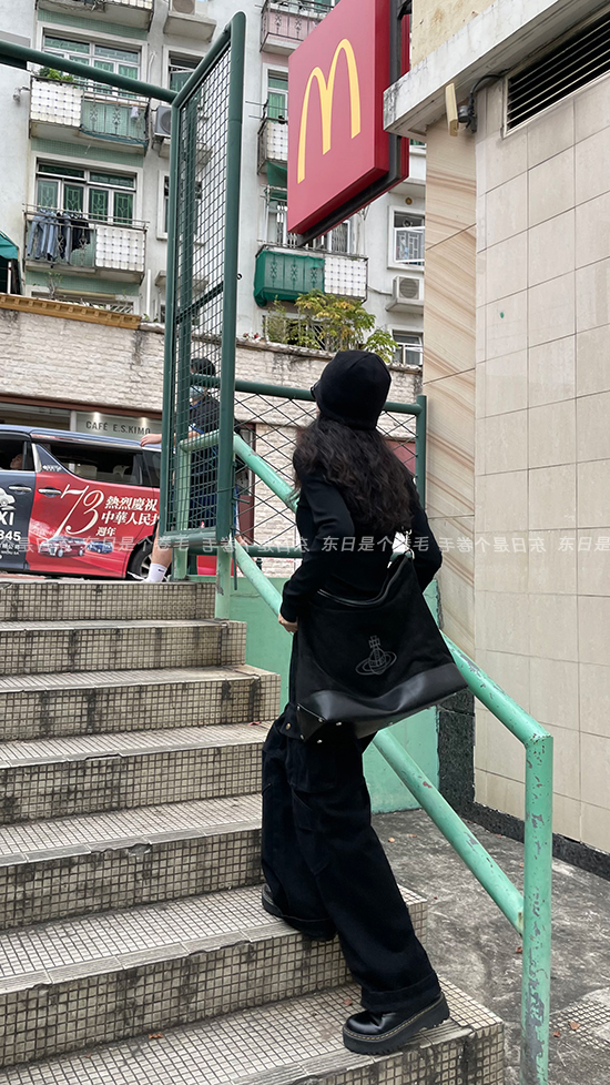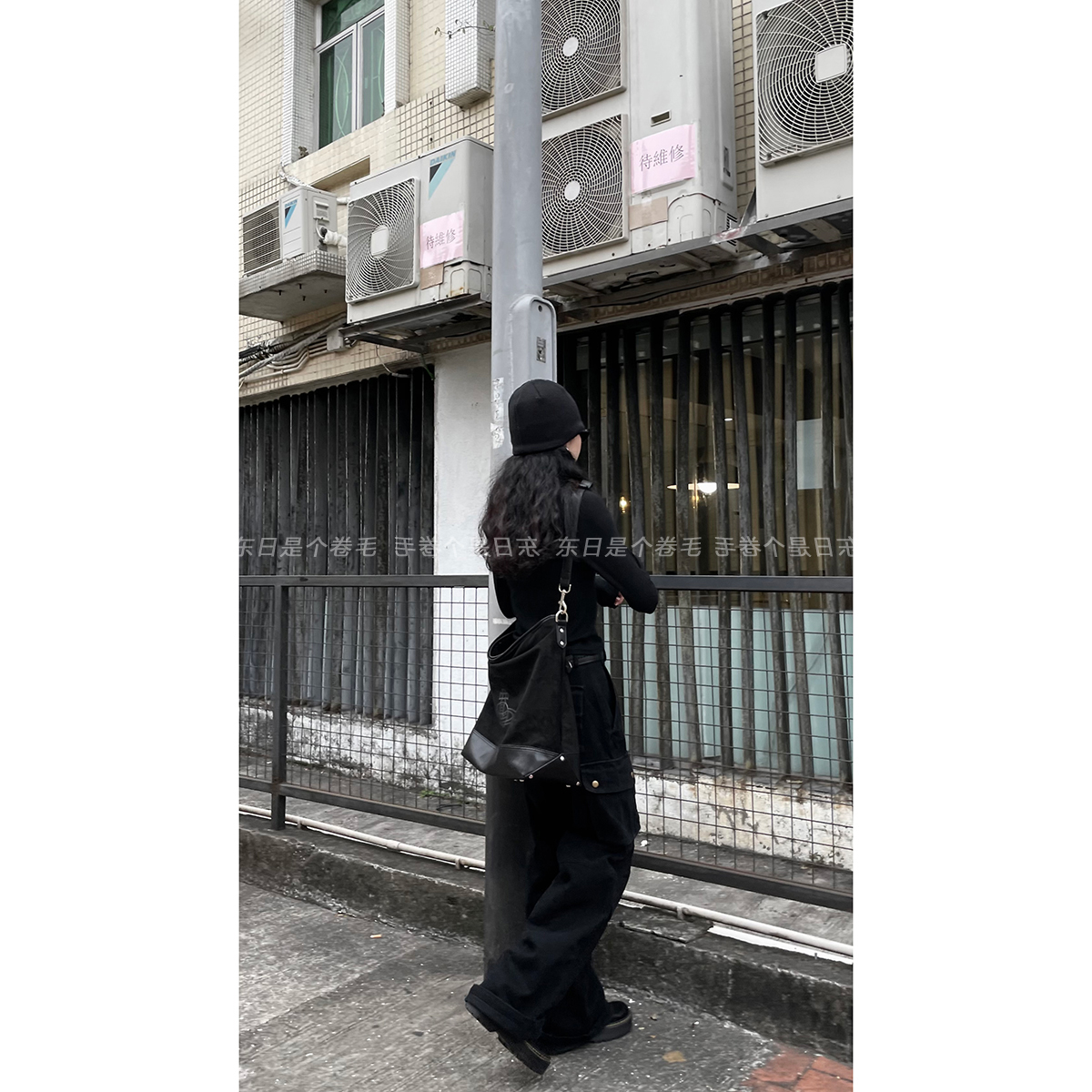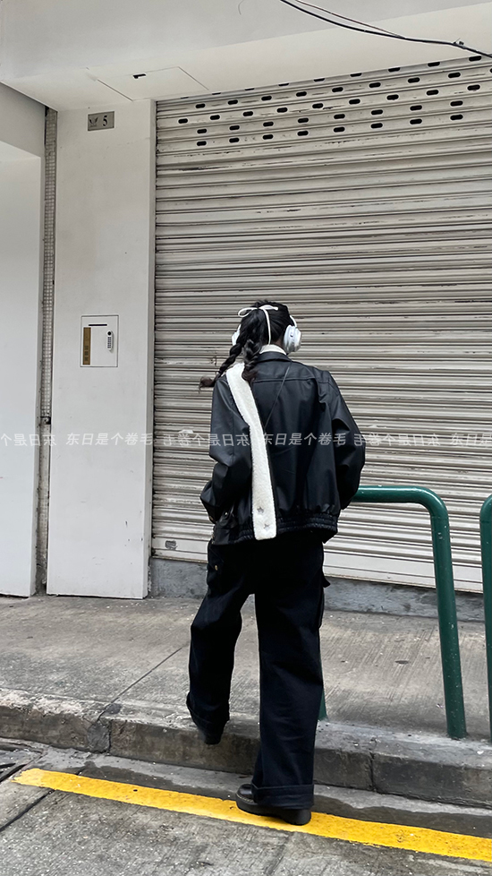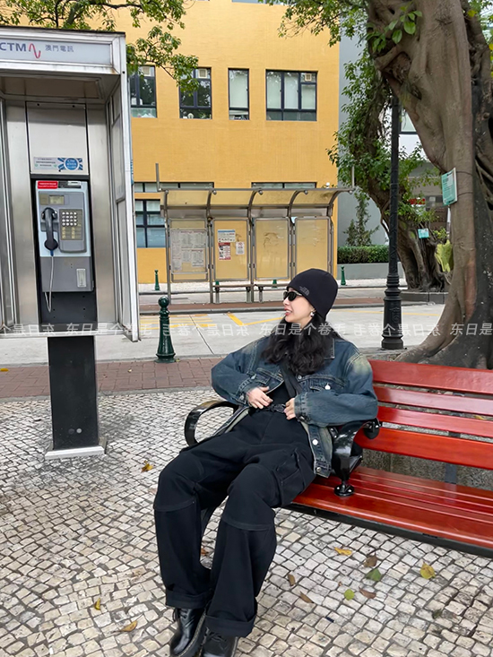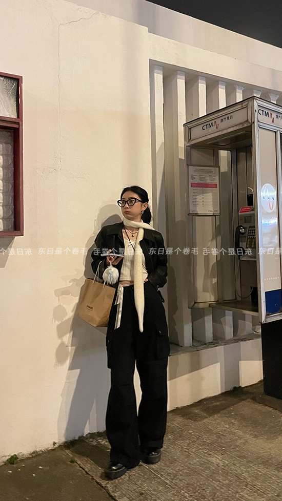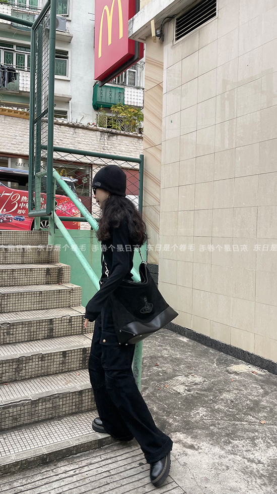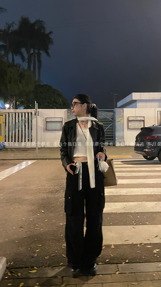 東日是個捲毛 曼切斯特 黑色直筒闊腿工裝褲女春寬鬆百搭休閒長褲