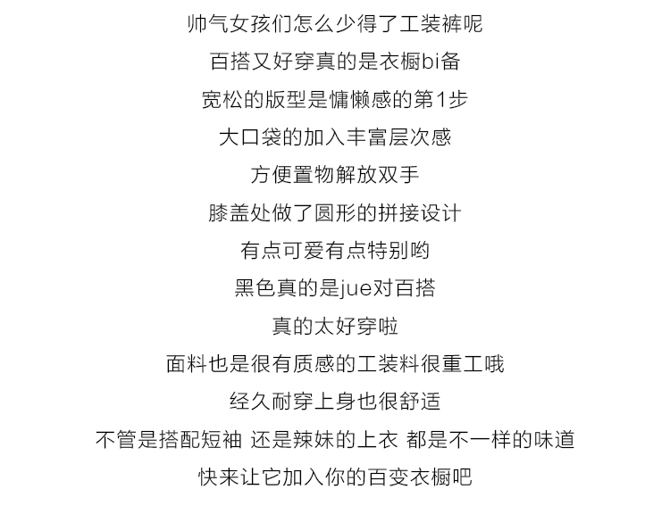 女褲褲型 工裝褲