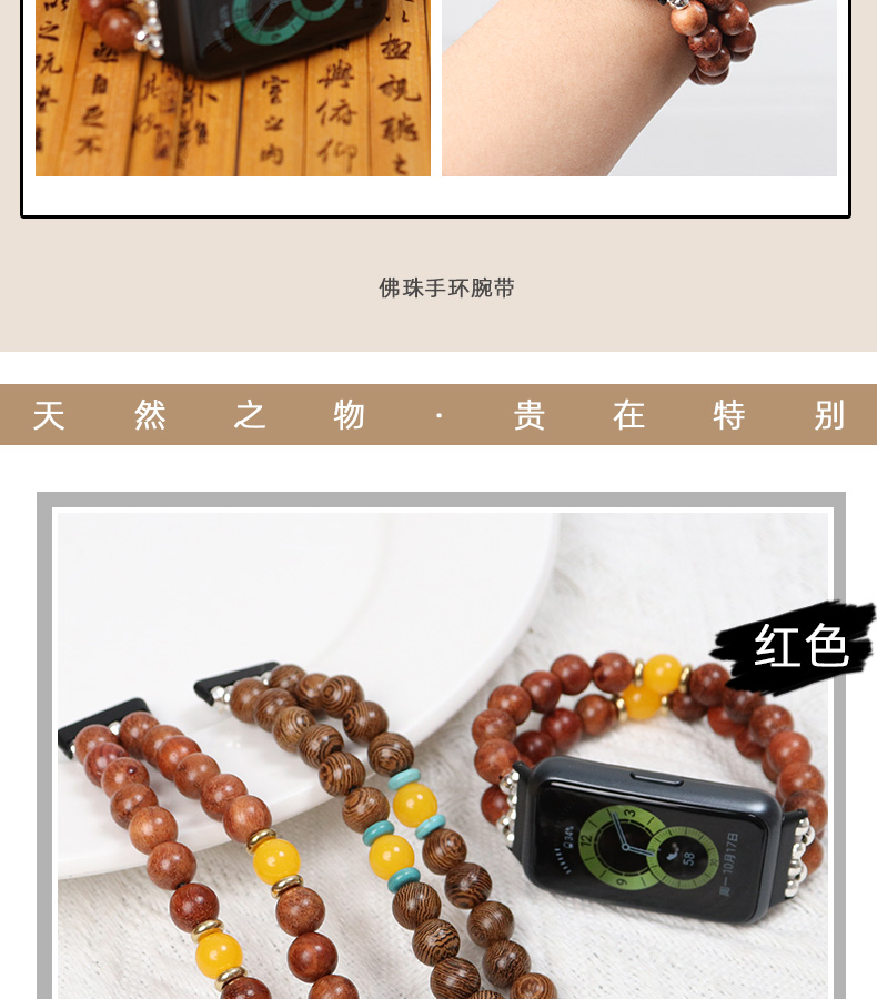 適用華為手環8/7nfc佛珠錶帶七代band7手錶串珠護腕b6手串手錬b7