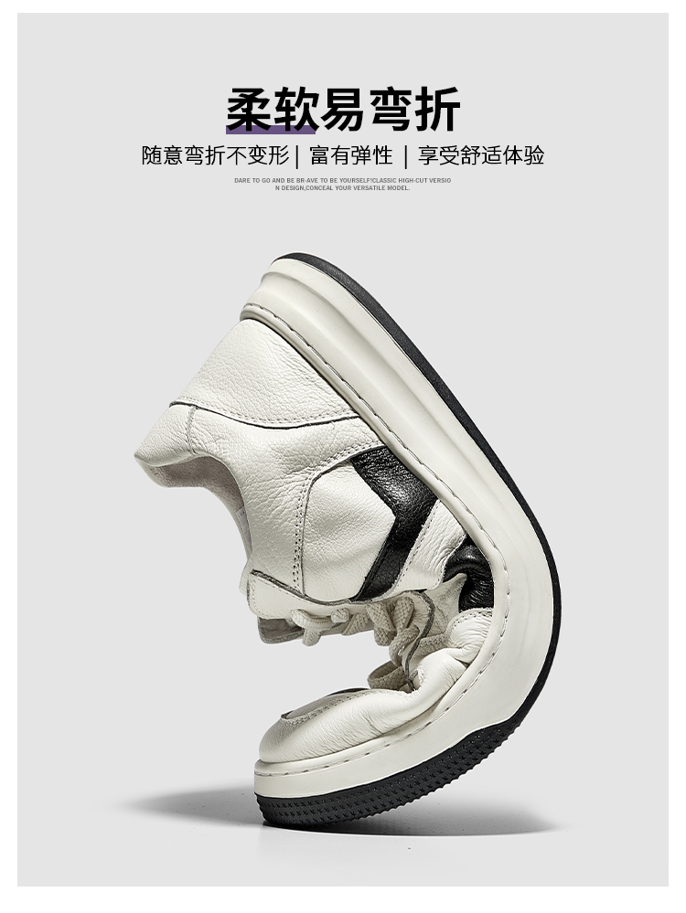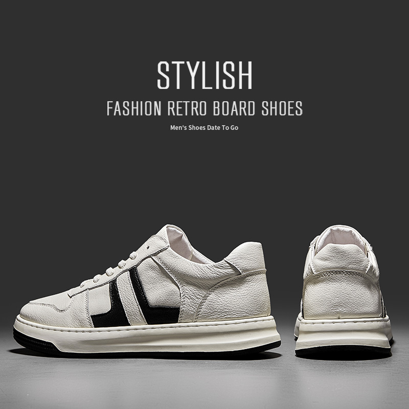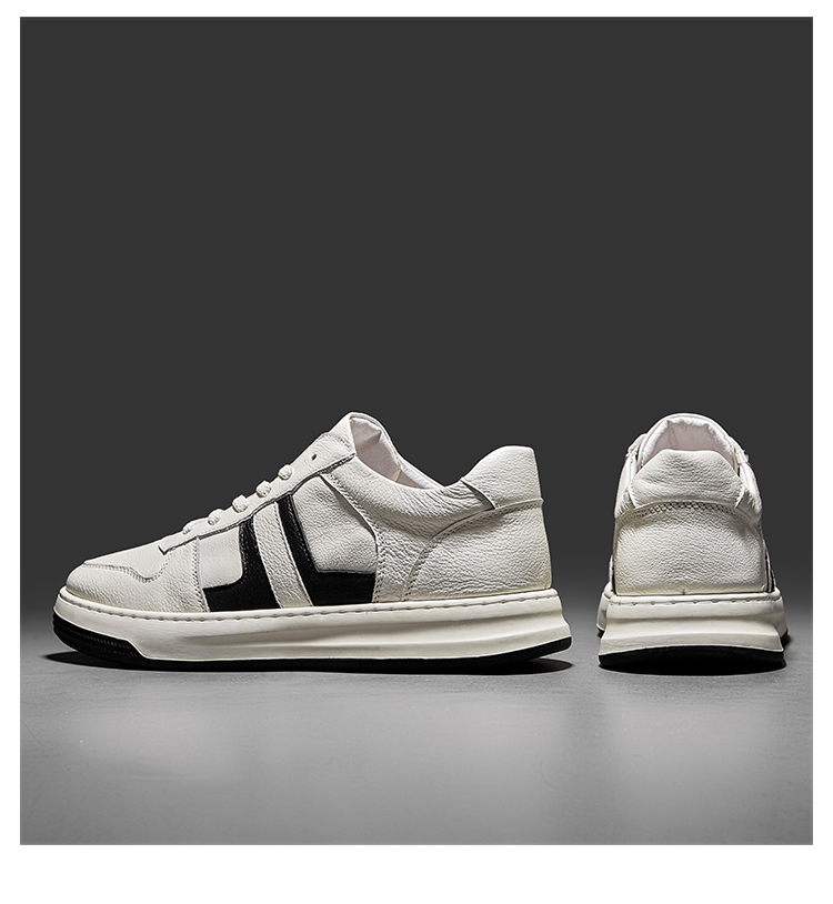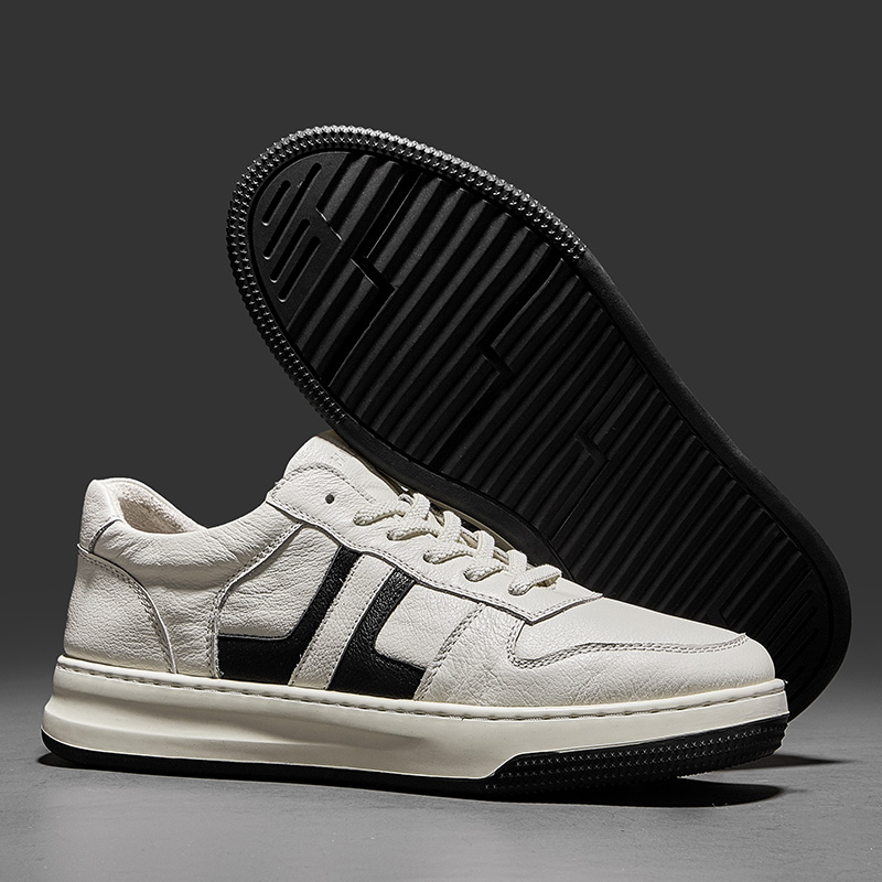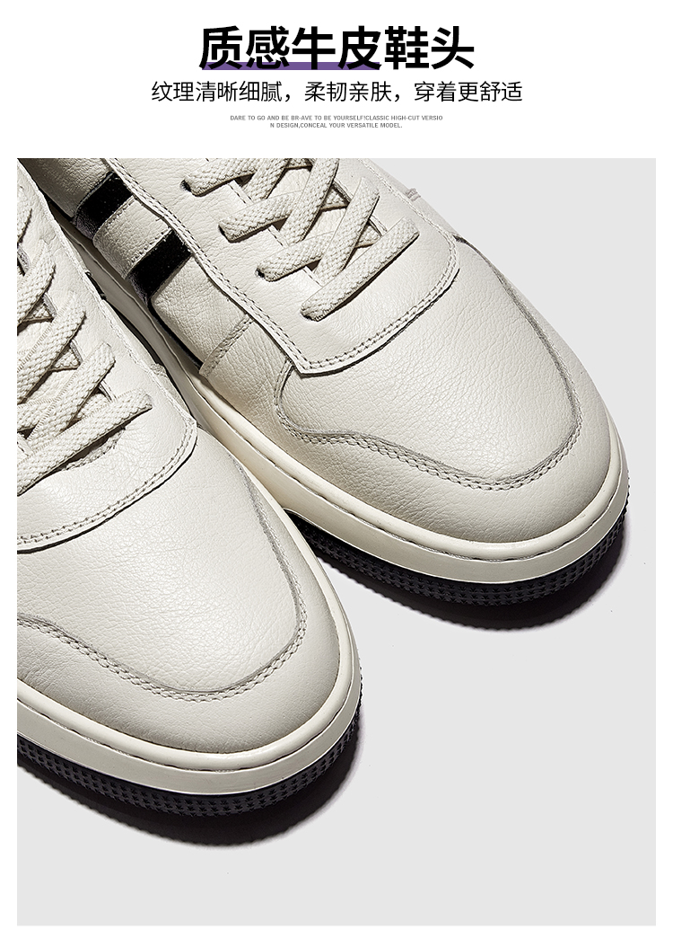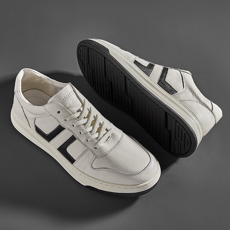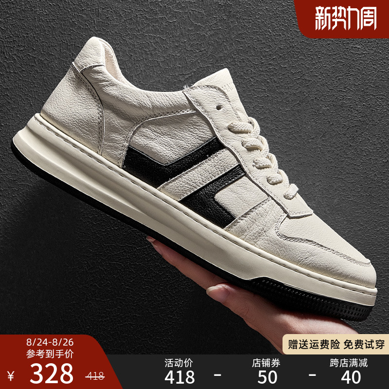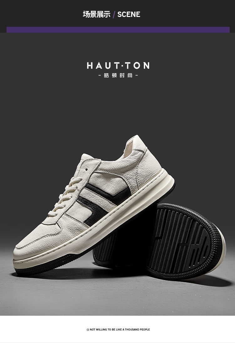HT皓頓男鞋2023夏款透氣真皮小白鞋男款潮流休閒皮鞋男士運動板鞋