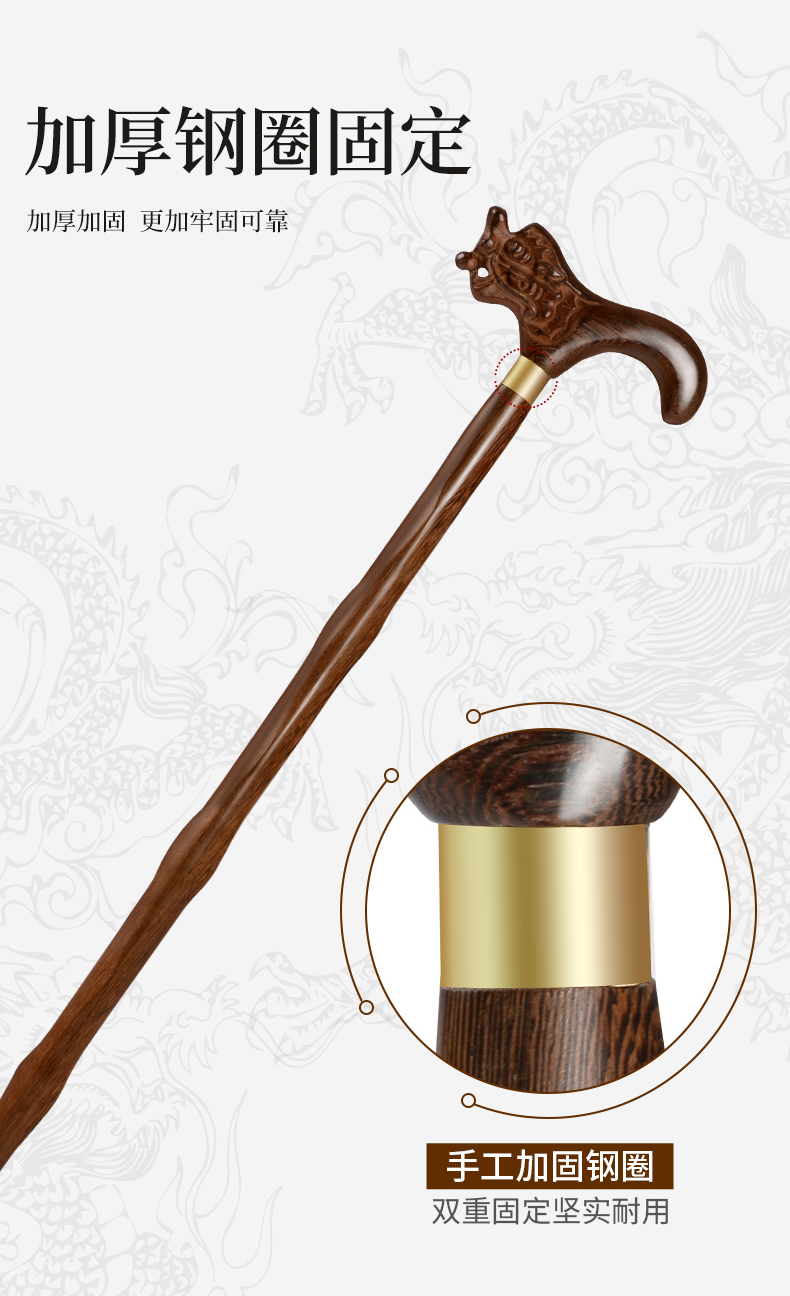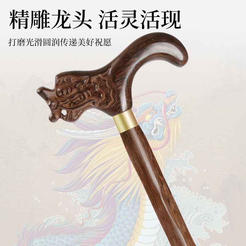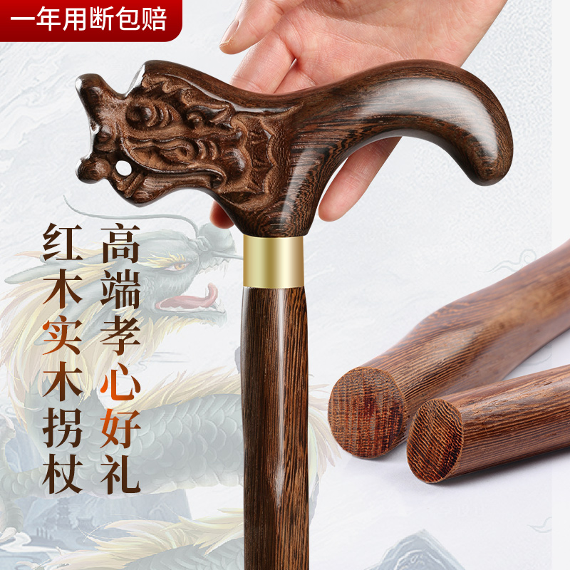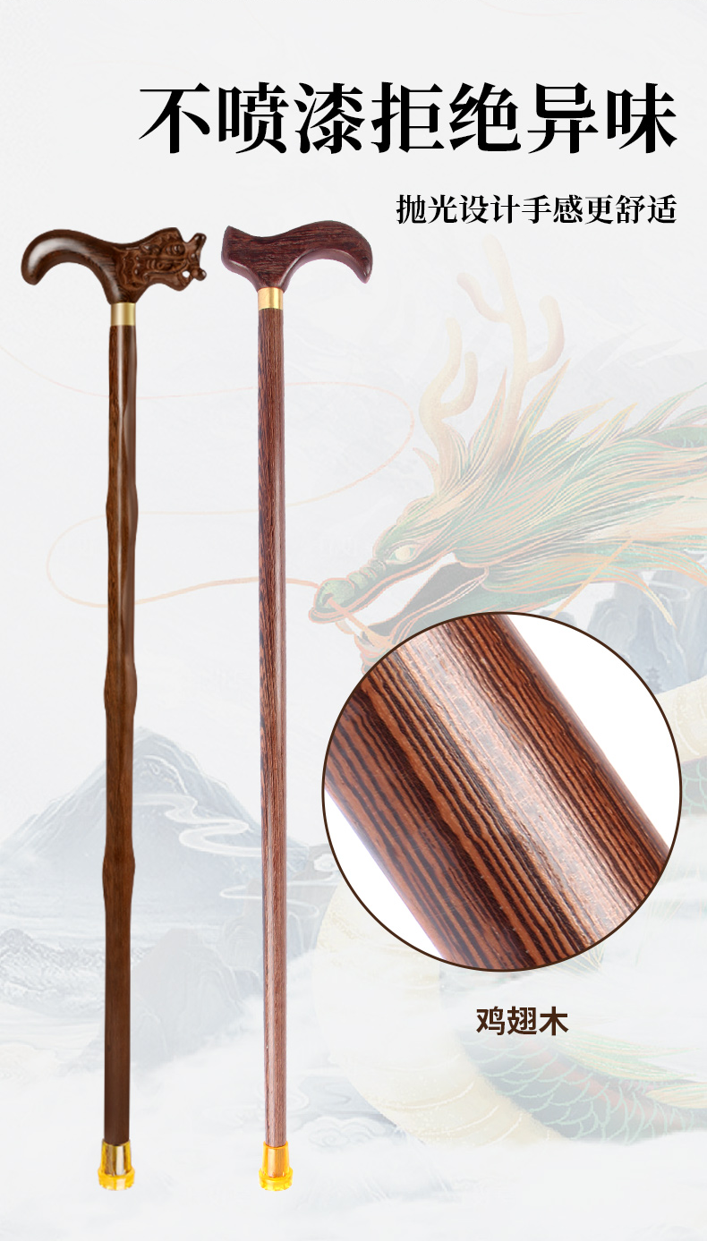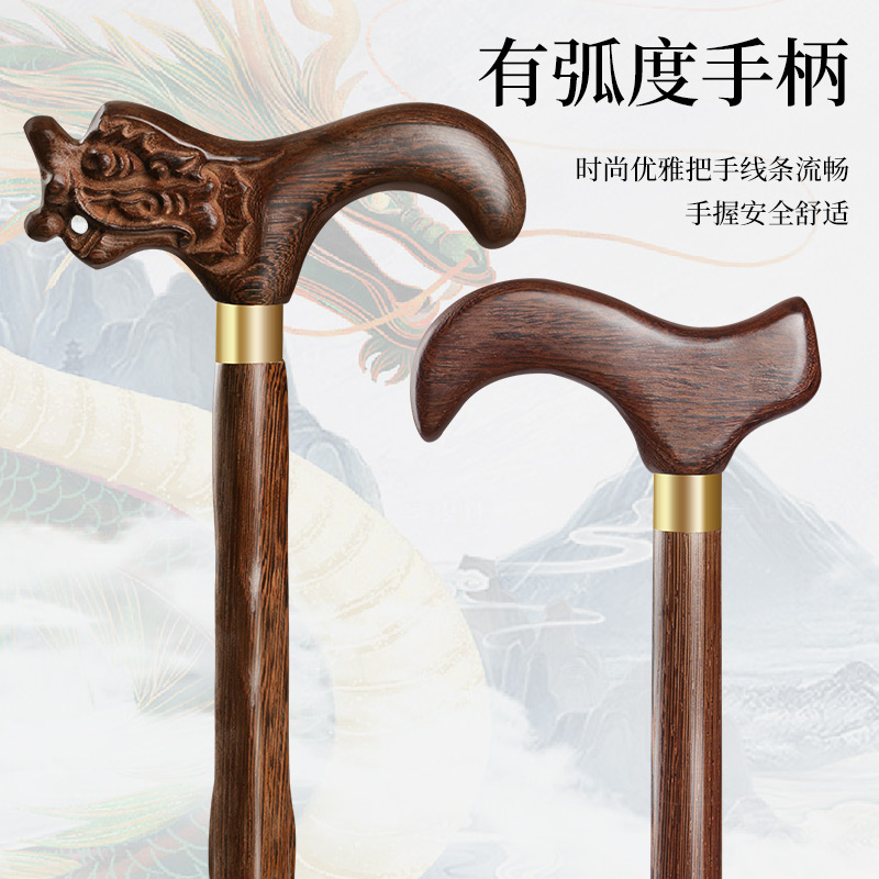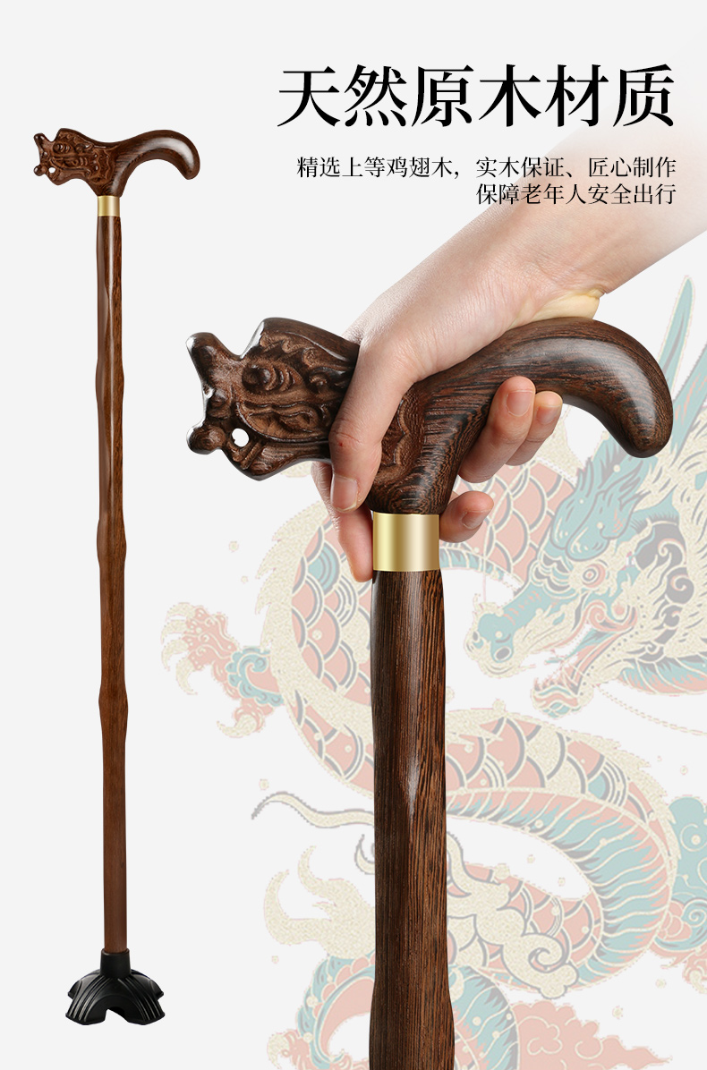 老人柺杖實木柺棍四腳防滑老年人手杖輕便木質扙拐雞翅木龍頭捌杖