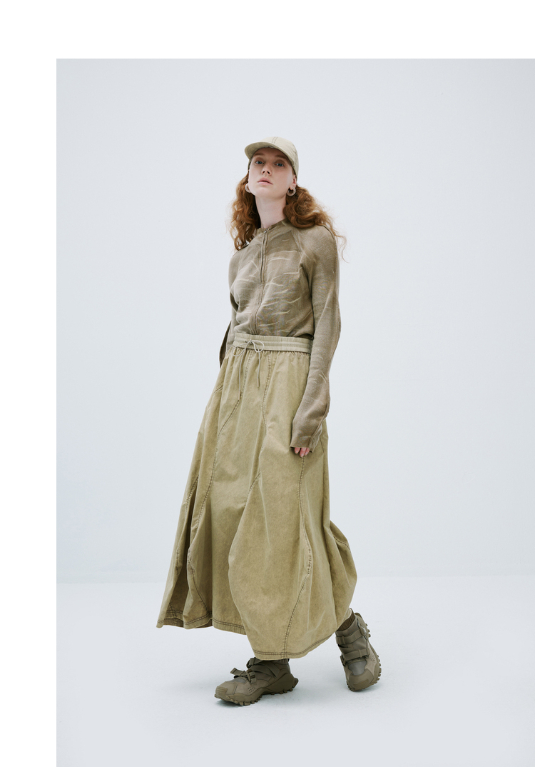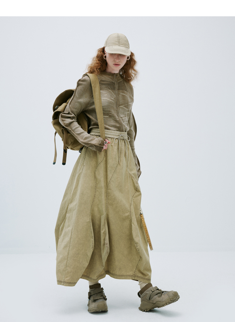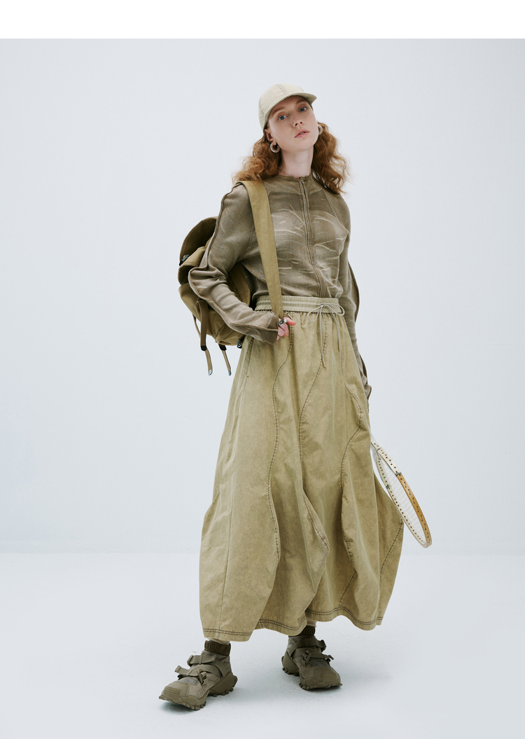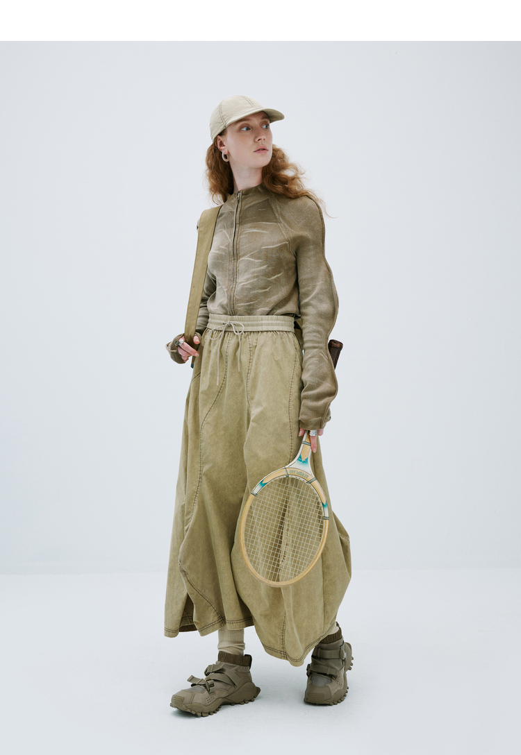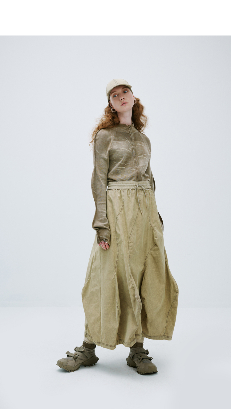 半圓原創設計2023春季新款扭曲分割不規則花苞半身裙高彈鬆緊
