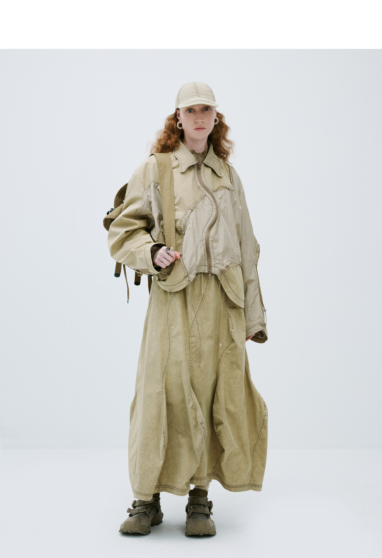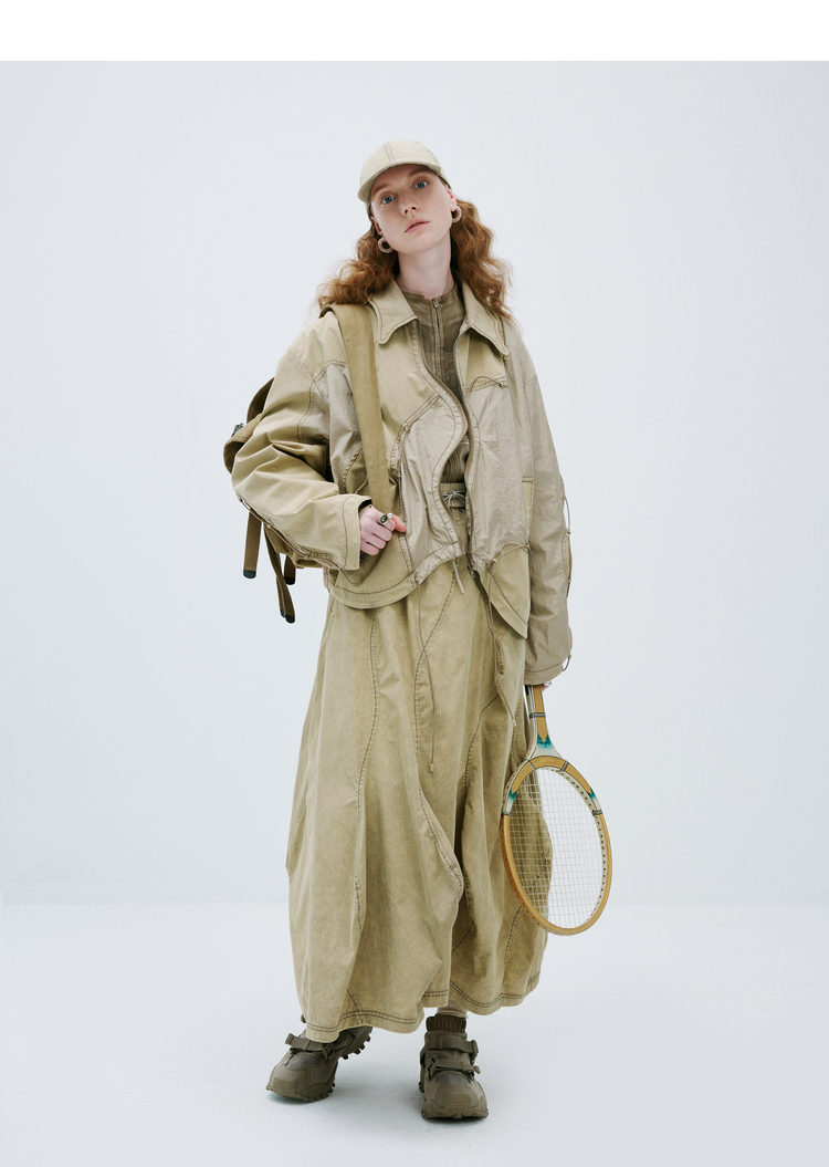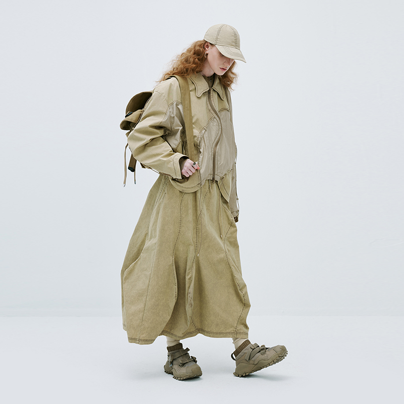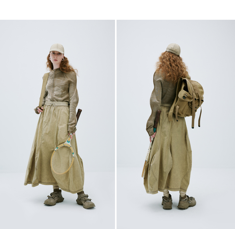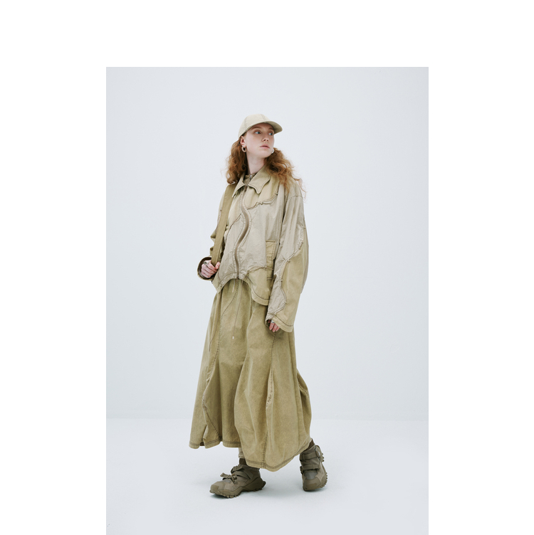 半圓原創設計2023春季新款扭曲分割不規則花苞半身裙高彈鬆緊