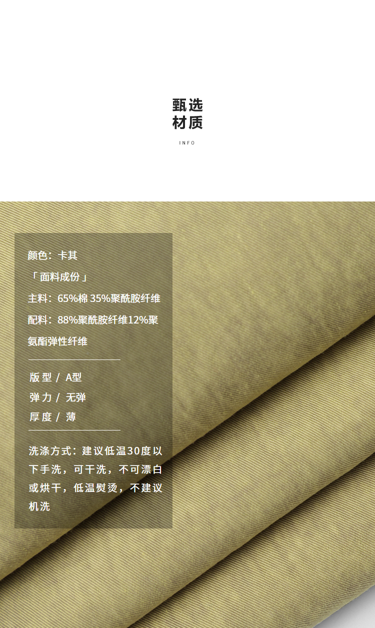 材質成分 棉65% 聚酰胺纖維(尼龍)35%