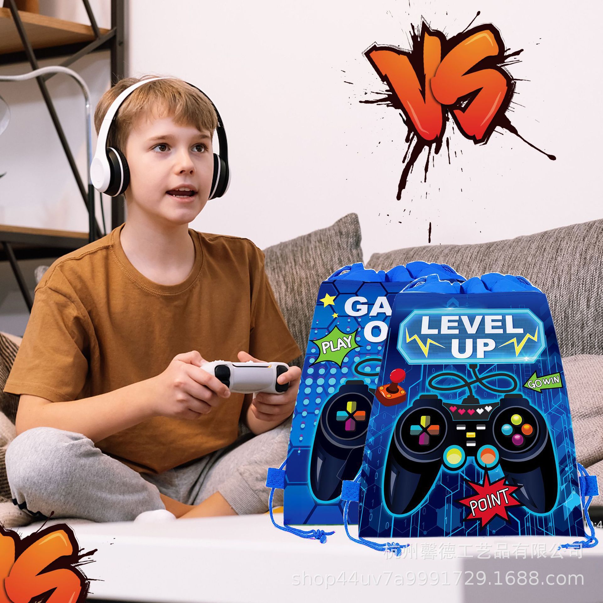WF035 游戏手柄GAME ON 像素 我的世界 无纺布袋礼品背包束口袋