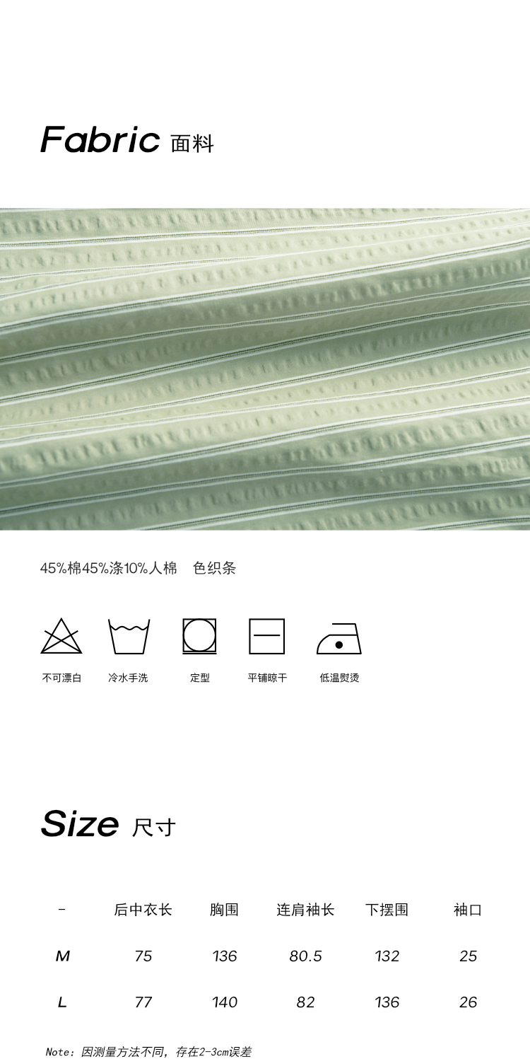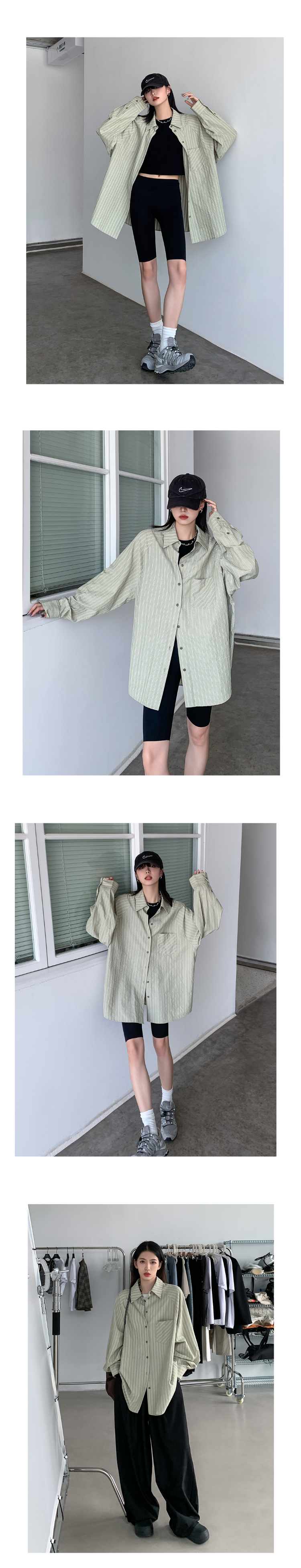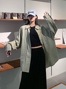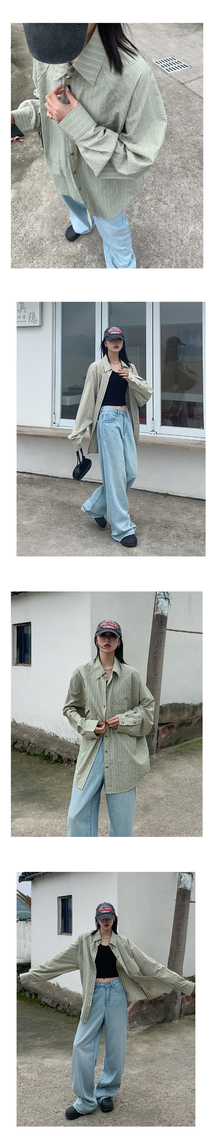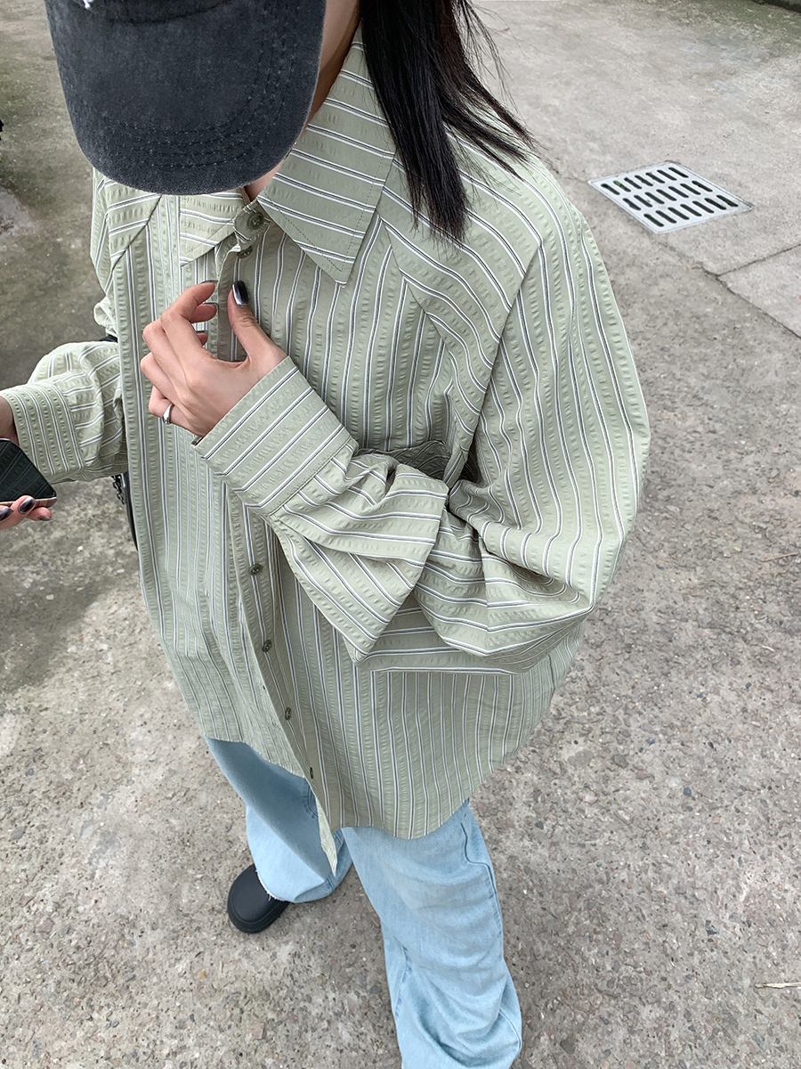 SIXI四喜家春夏 淺綠條紋插肩袖襯衫女寬鬆設計感抗皺易打理襯衫