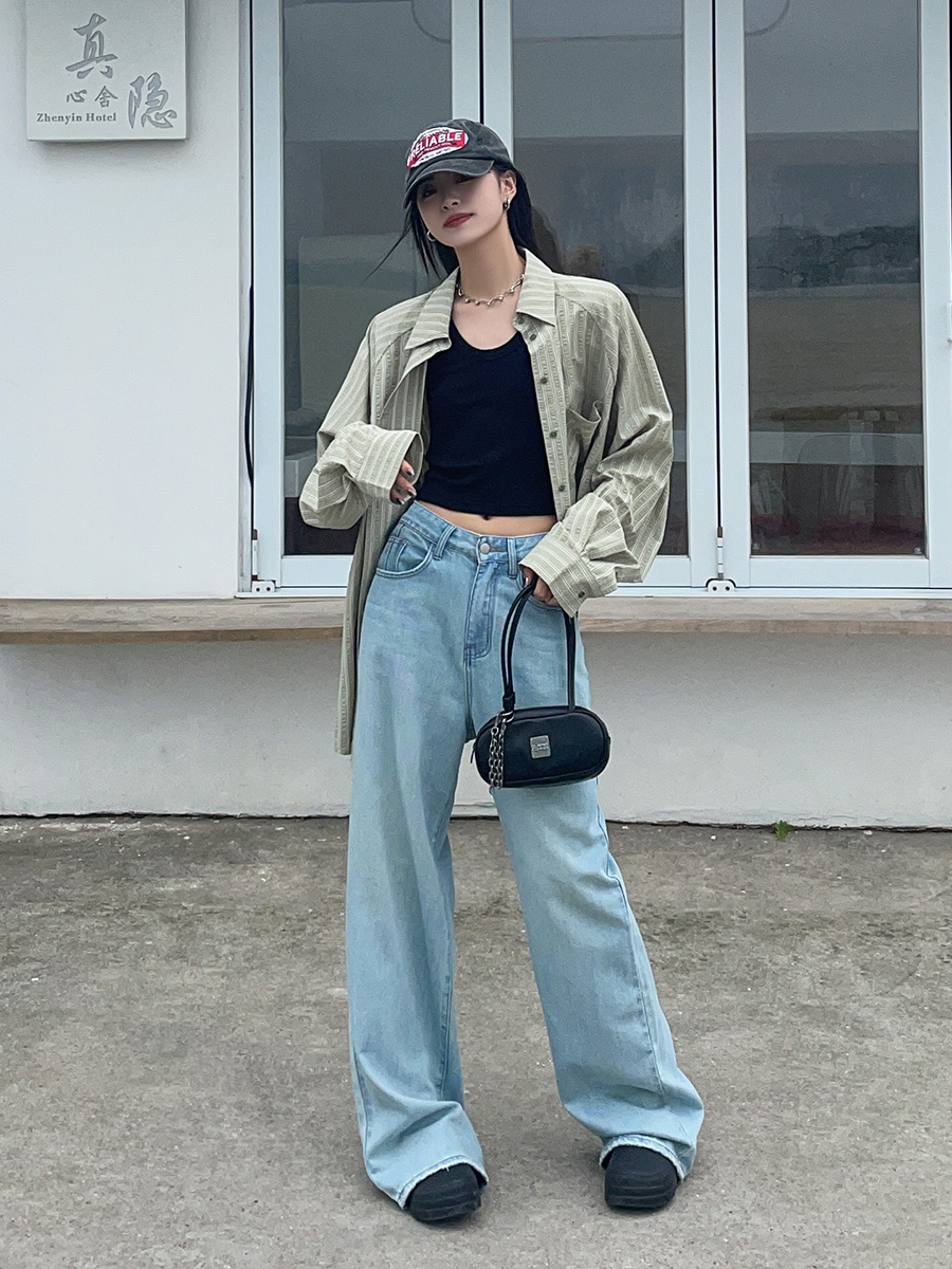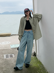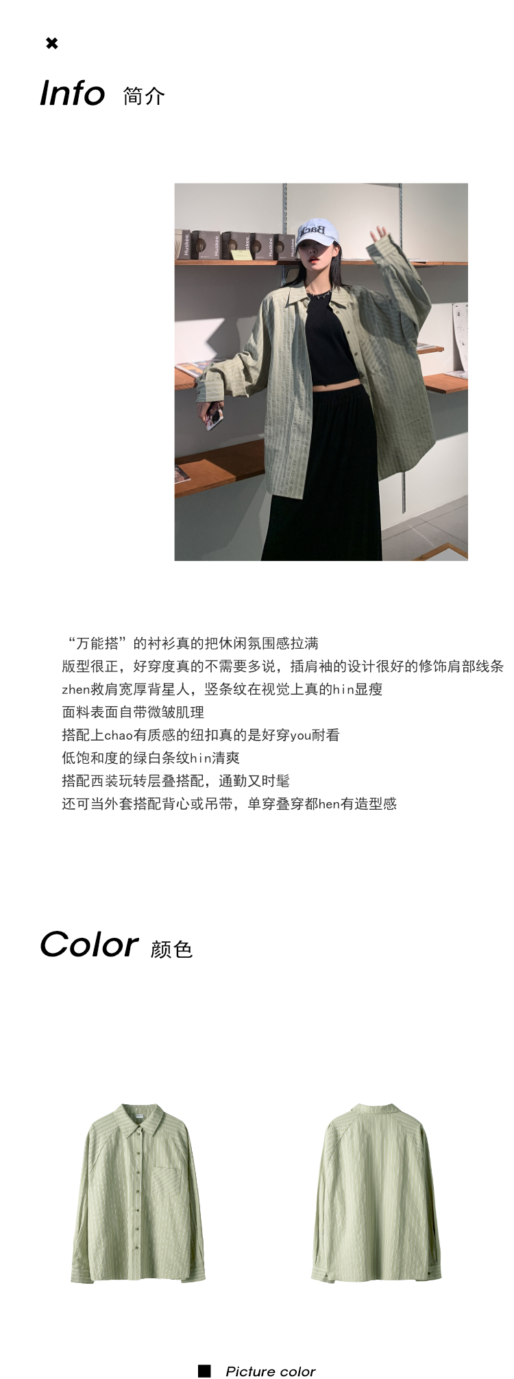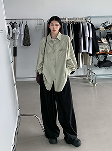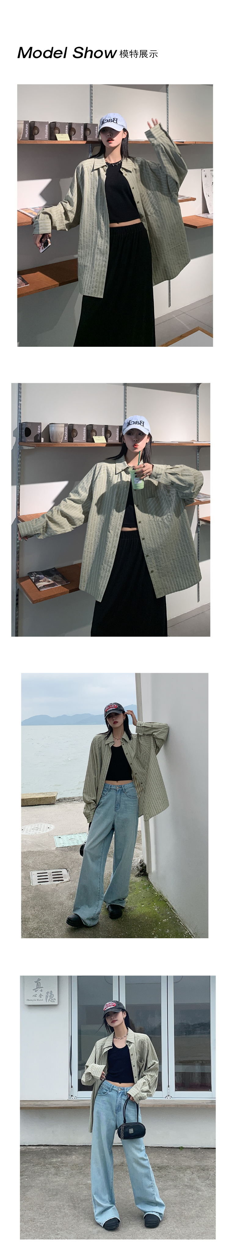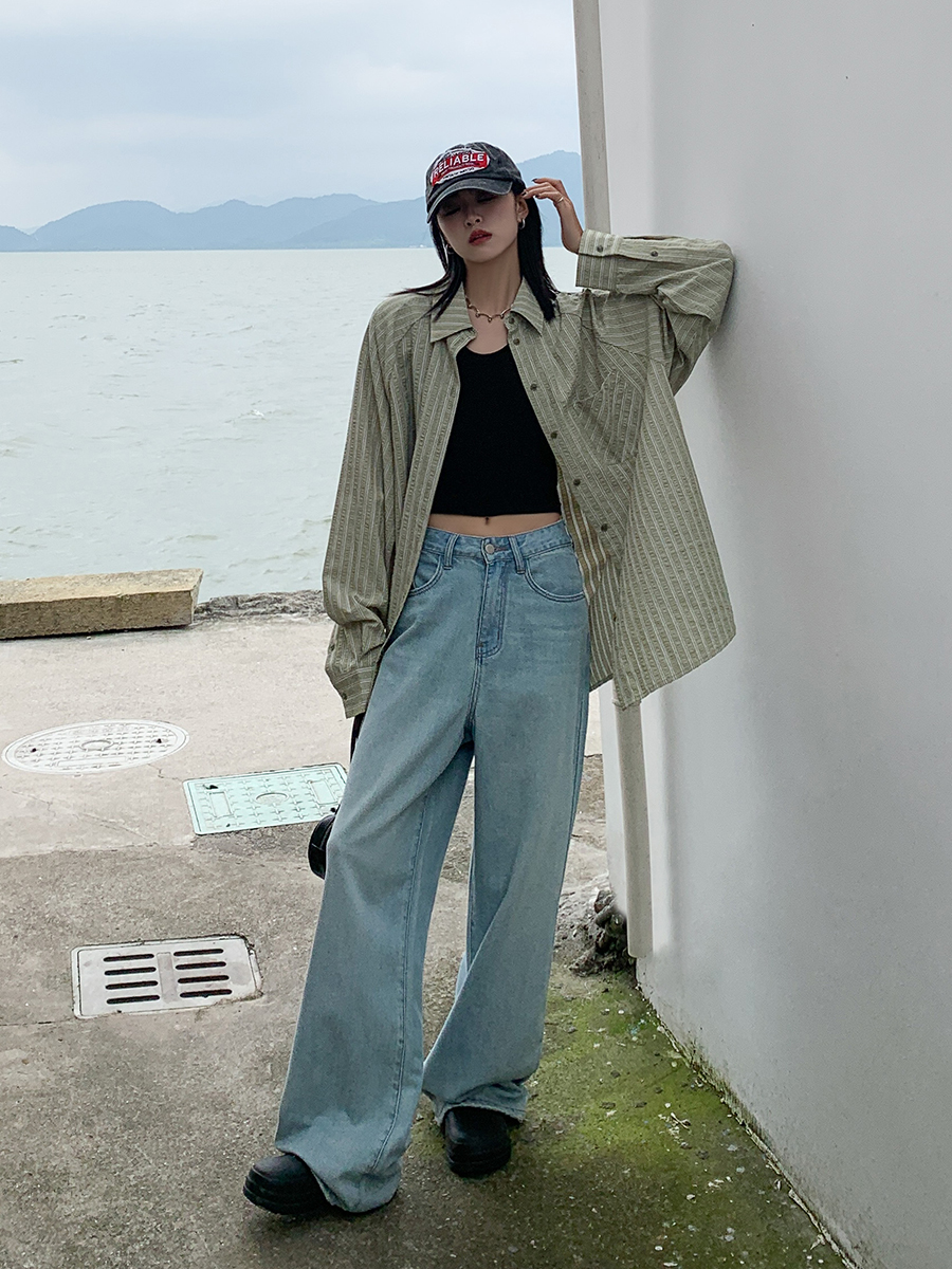 SIXI四喜家春夏 淺綠條紋插肩袖襯衫女寬鬆設計感抗皺易打理襯衫
