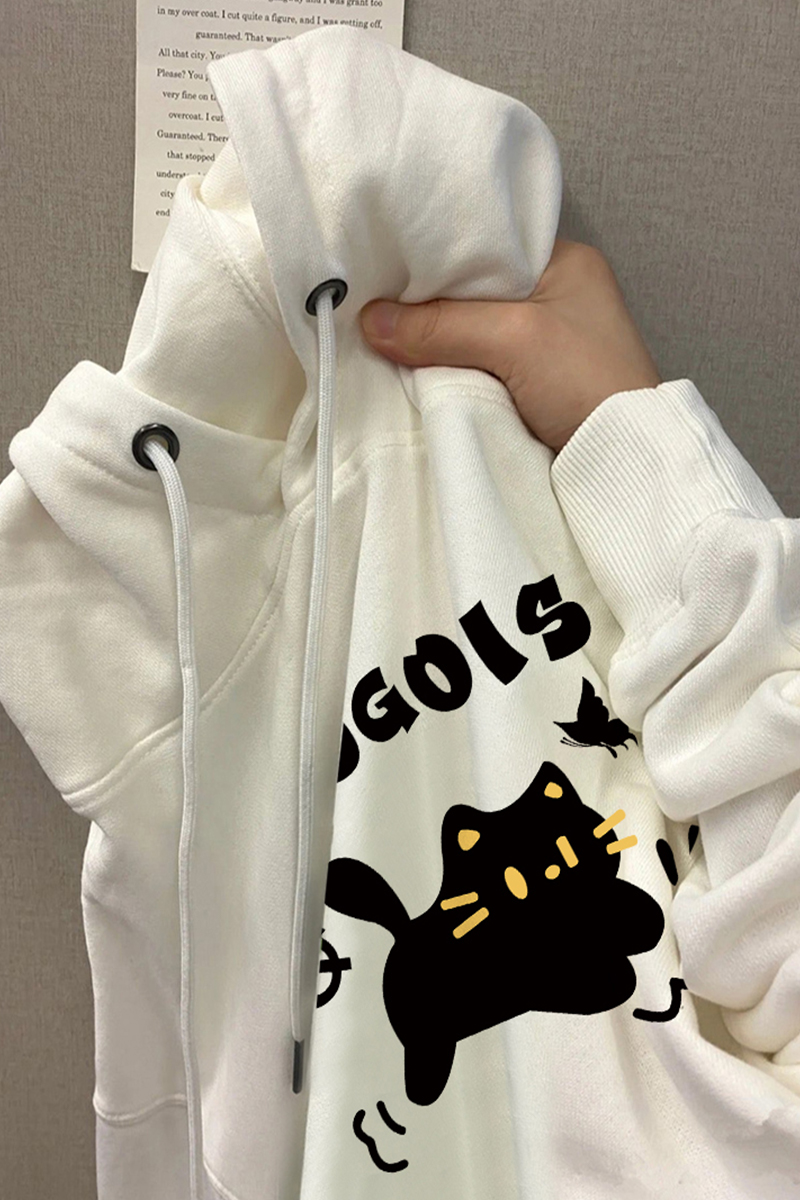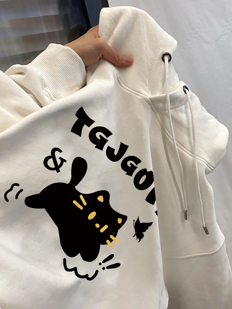 軟糯舒適!白色純棉寬鬆連帽運動衫秋冬新款減齡甜美薄款套頭女上衣