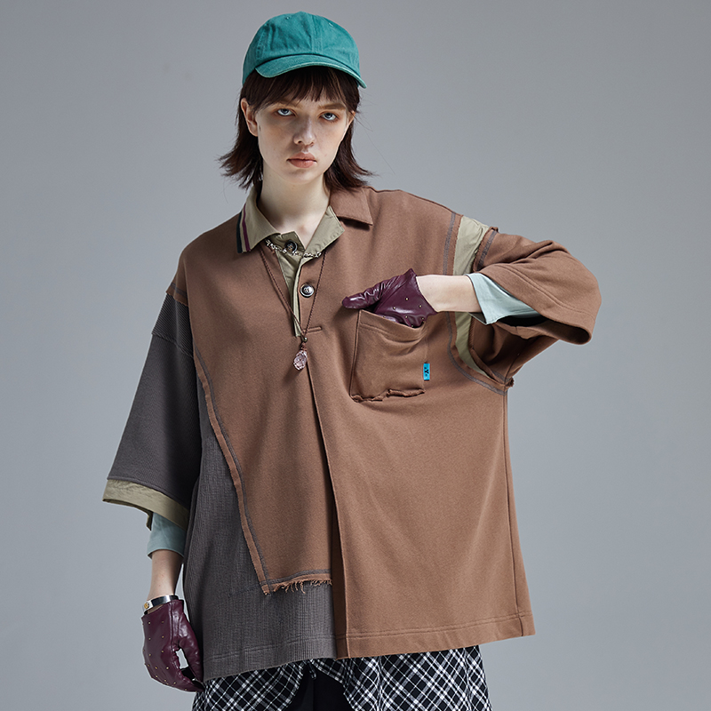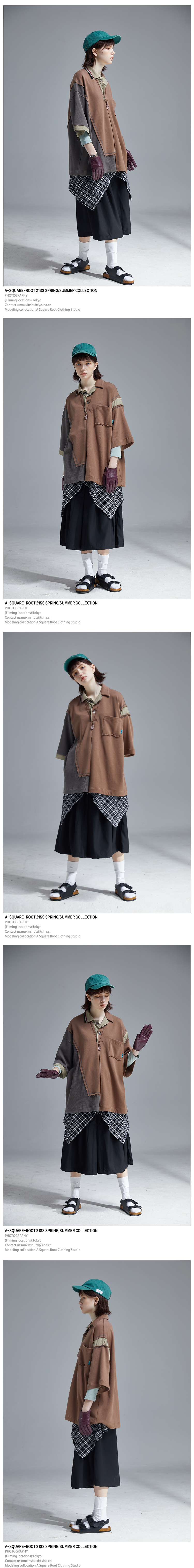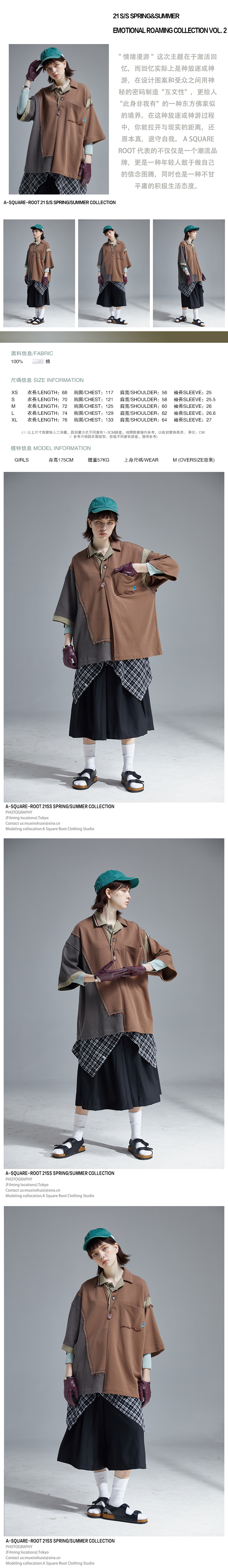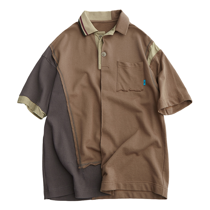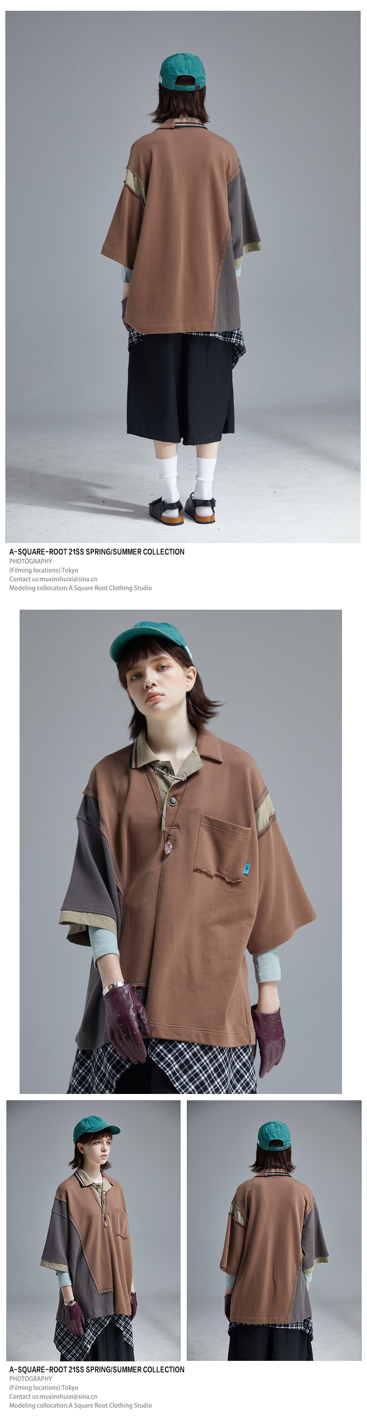 A SQUARE ROOT 華夫格拼接復古美式潮休閒POLO衫男女寬鬆短袖T恤