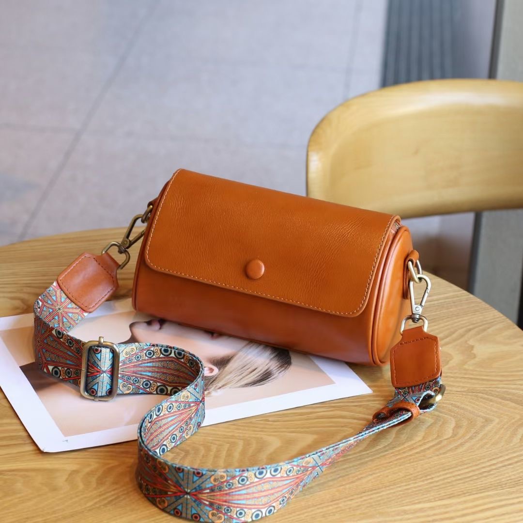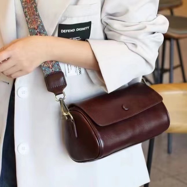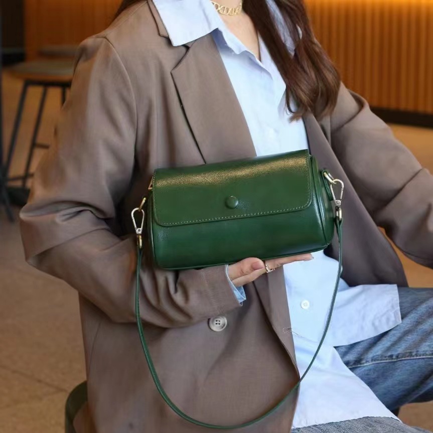 真皮女包2023新款高级感百搭植鞣皮小圆包简约通勤单肩手提斜挎包