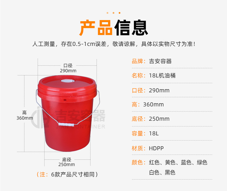 规格 18L机油桶 绿色 胶提手,18L机油桶 绿色 铁提手,18L机油桶 蓝色 铁提手,18L机油桶 红色 铁提手,18L机油桶 黄色 铁提手,18L机油桶 黑色 铁提手,18L机油桶 蓝色 胶提手,18L机油桶 红色 胶提手,18L机油桶 黄色 胶提手,18L机油桶 黑色 胶提手,18L机油桶 白色 胶提手,18L机油桶 白色 铁提手