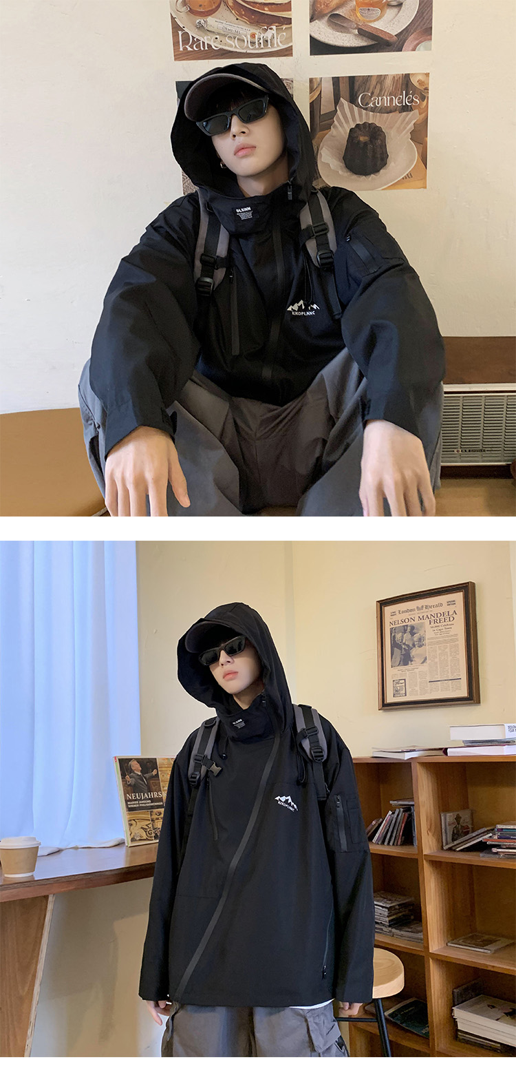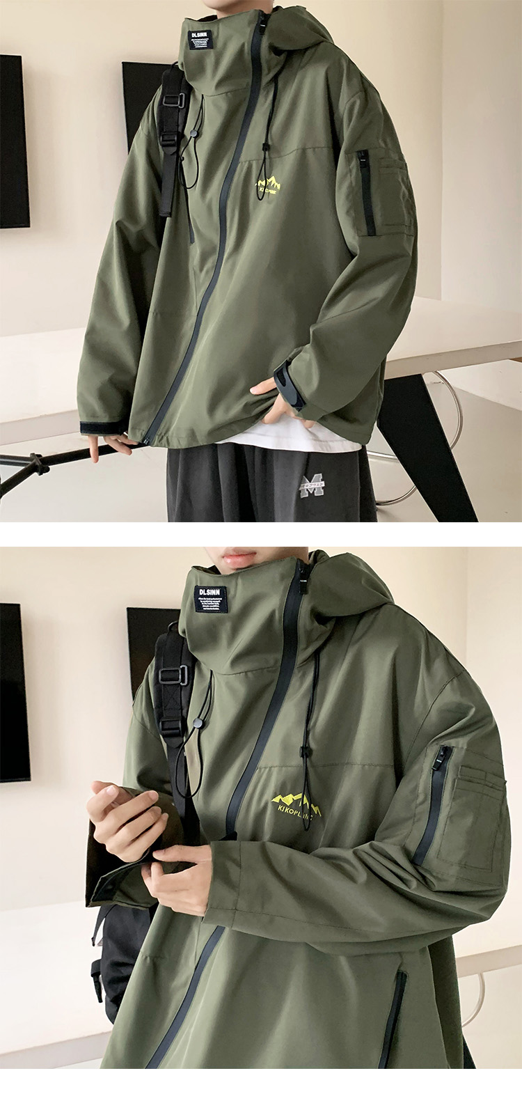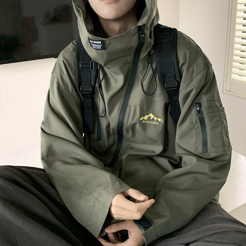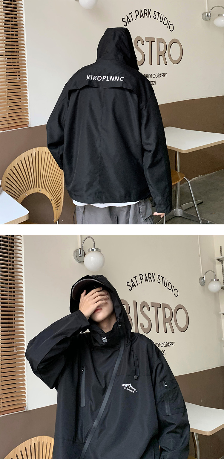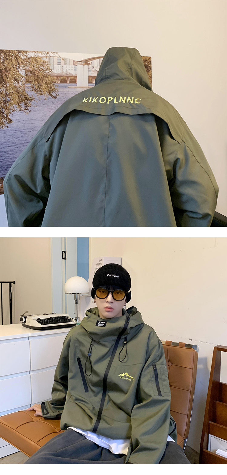 戶外騎行服vintage衝鋒衣夾克美式復古hiphop半高立領連帽外套ins