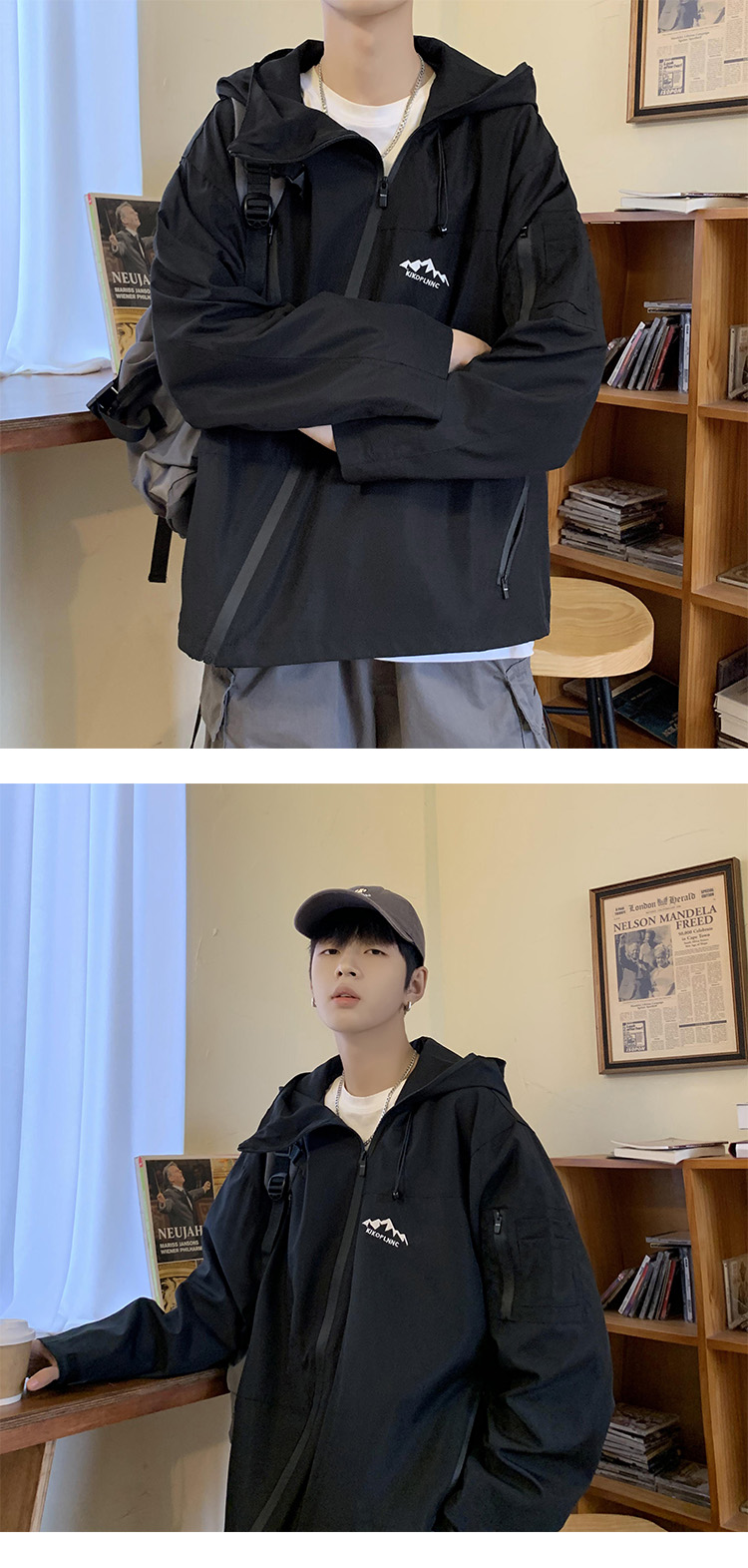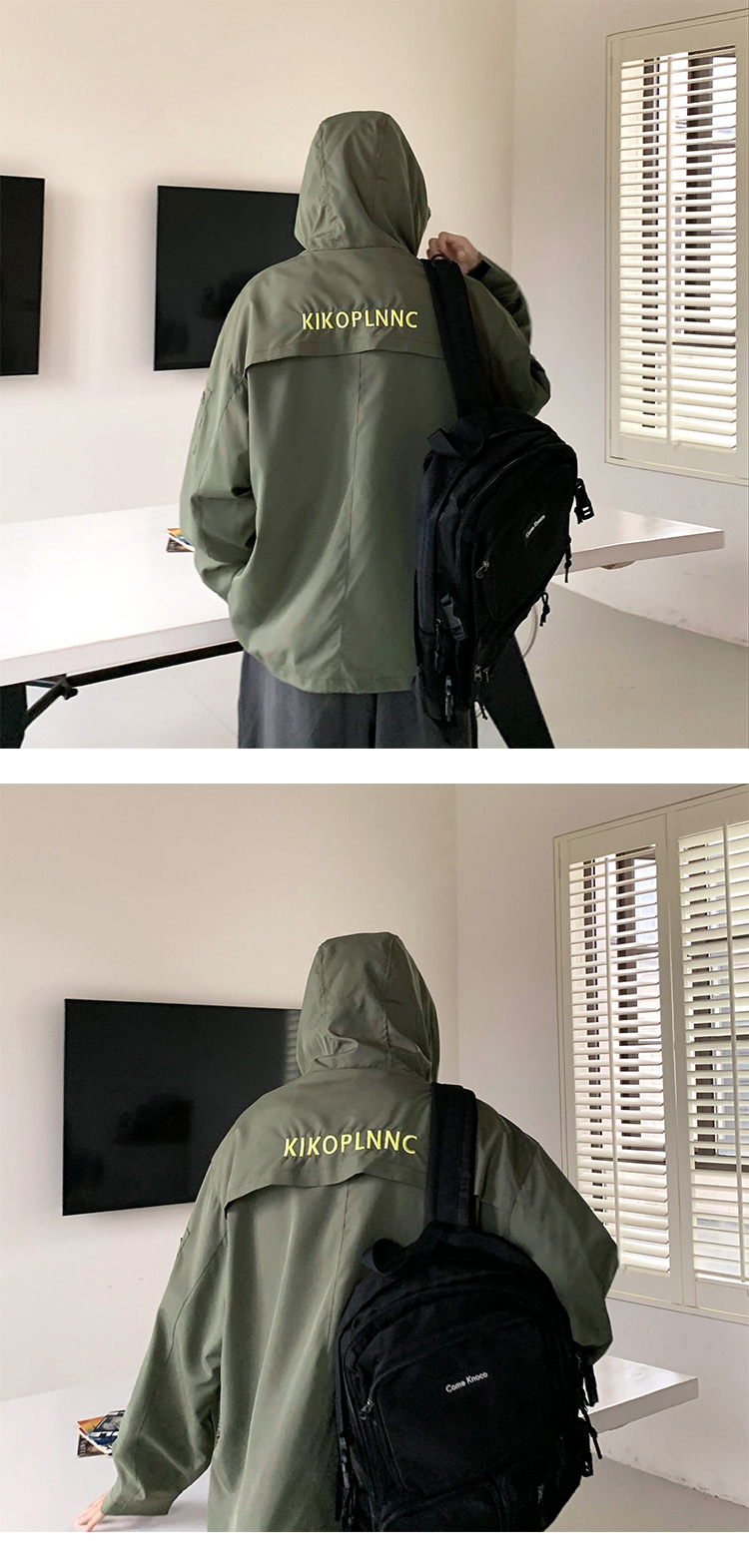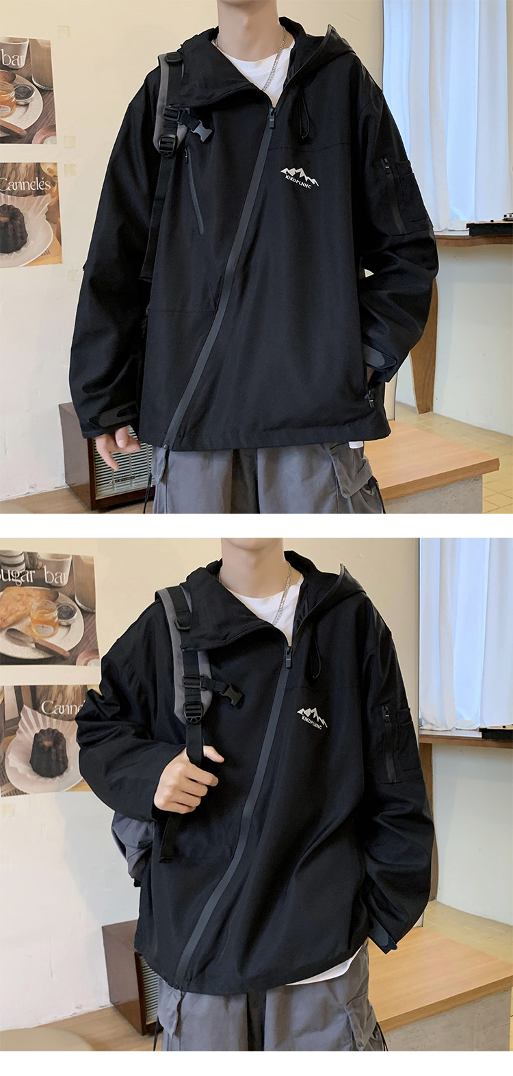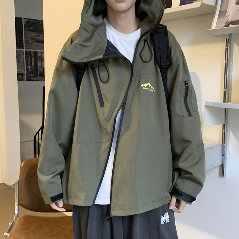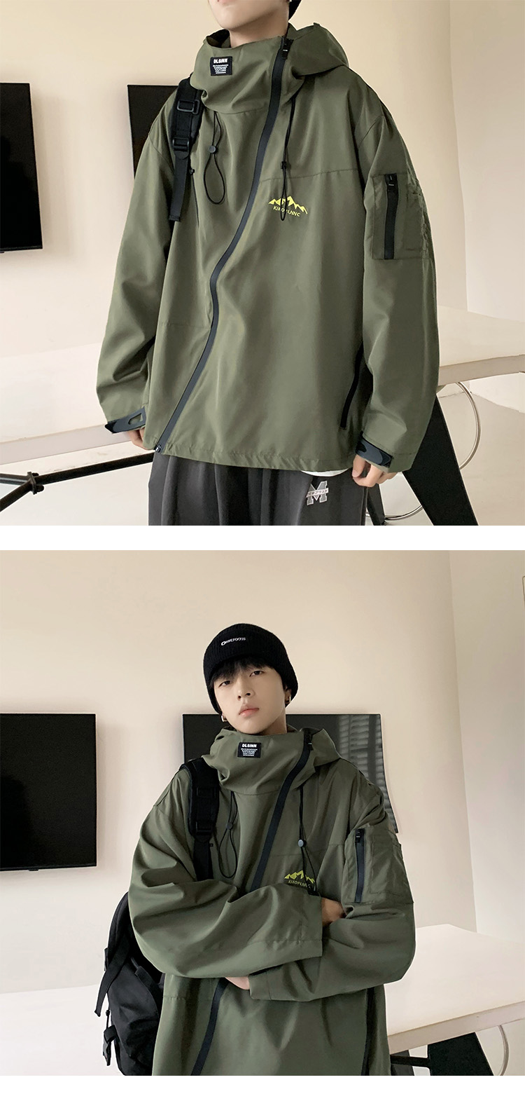 戶外騎行服vintage衝鋒衣夾克美式復古hiphop半高立領連帽外套ins