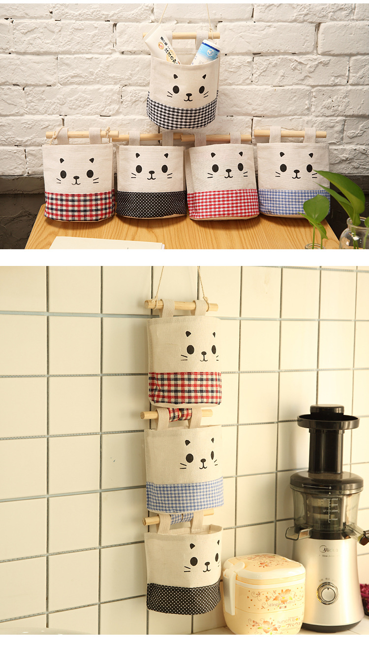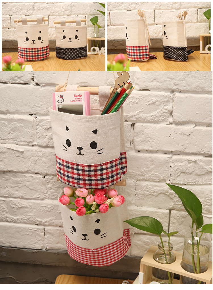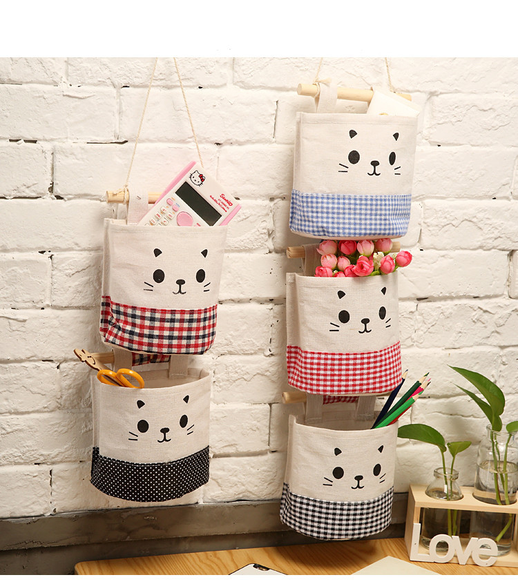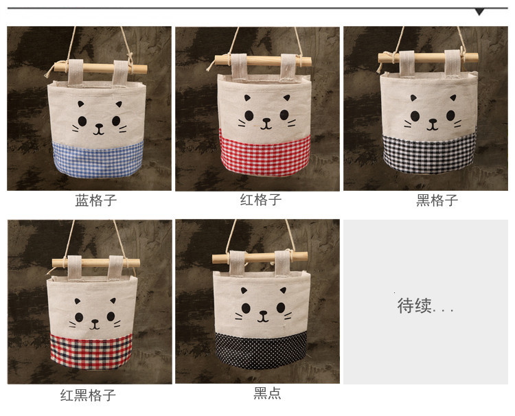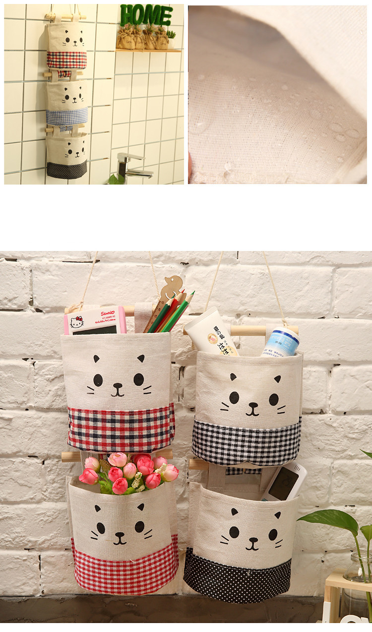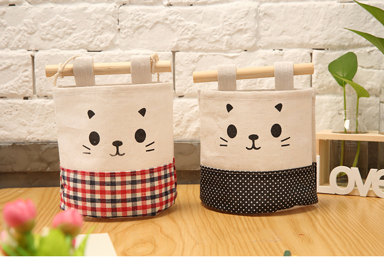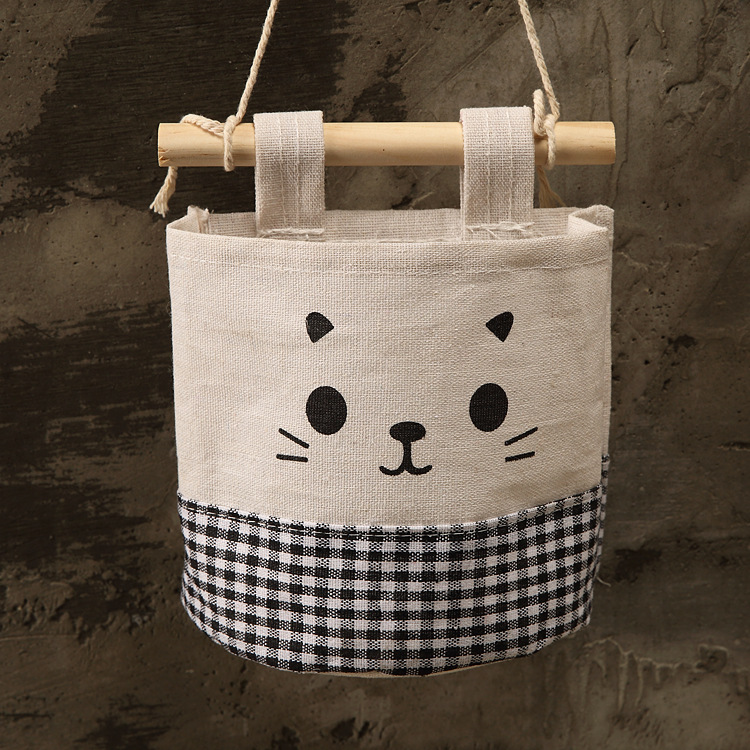 纯棉帆布卡通可爱猫咪布艺墙挂式收纳袋袋简约门后收纳挂袋单个
