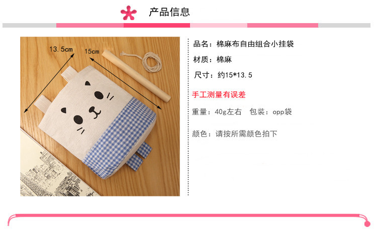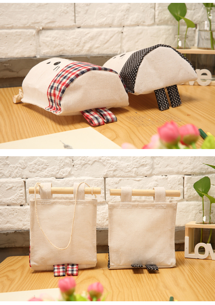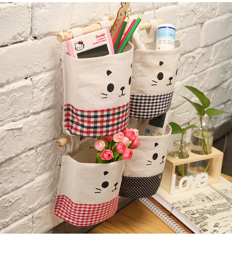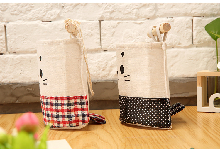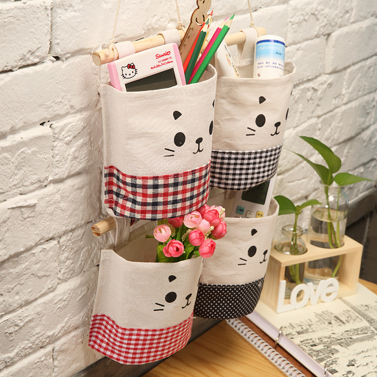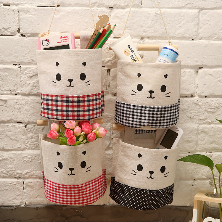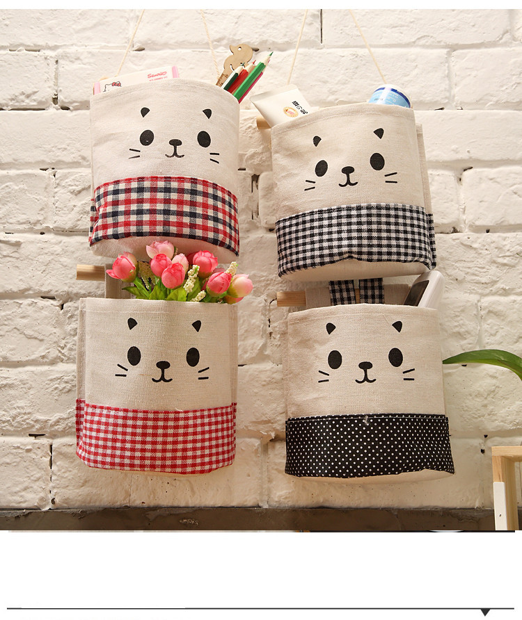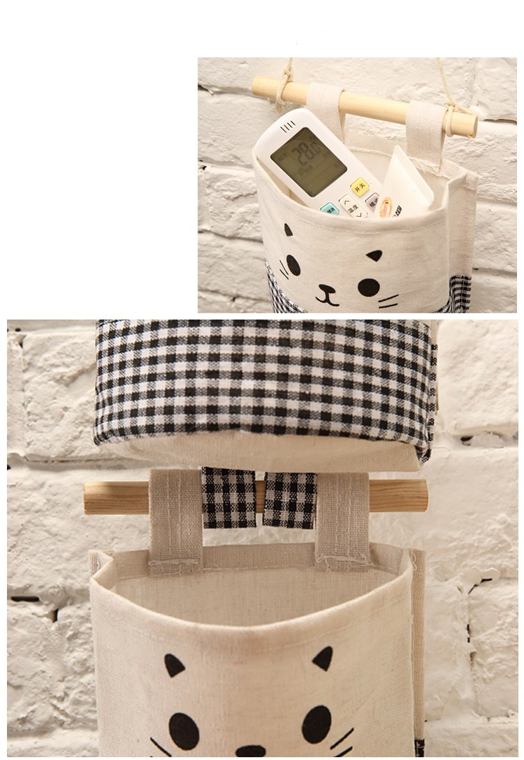 纯棉帆布卡通可爱猫咪布艺墙挂式收纳袋袋简约门后收纳挂袋单个