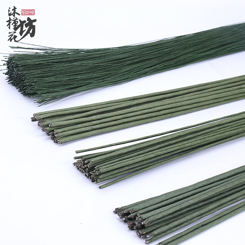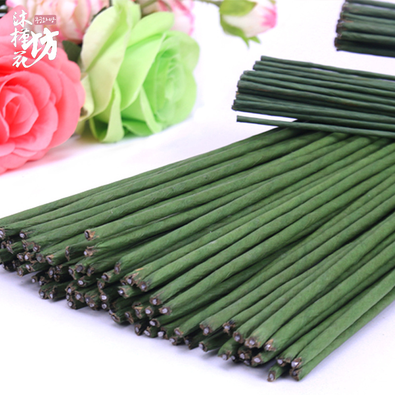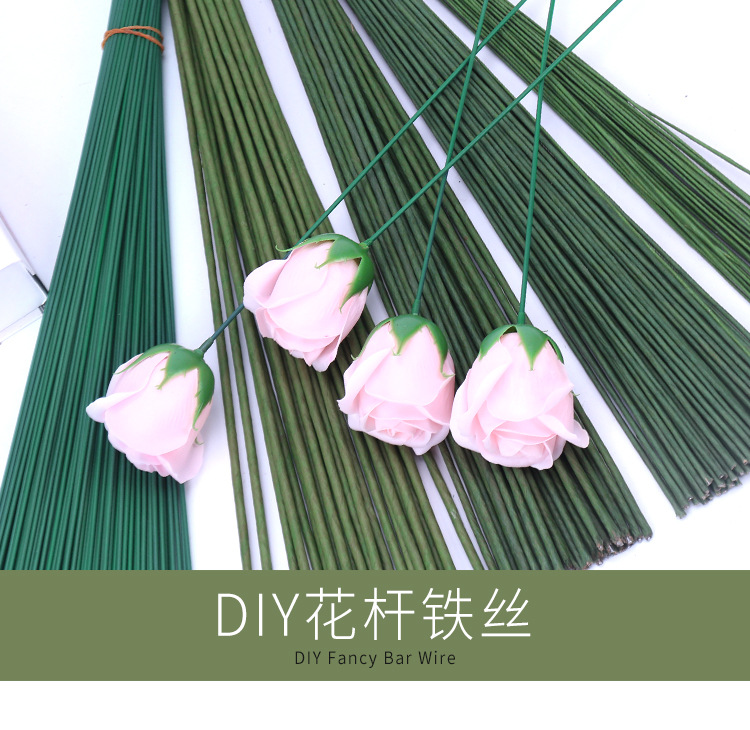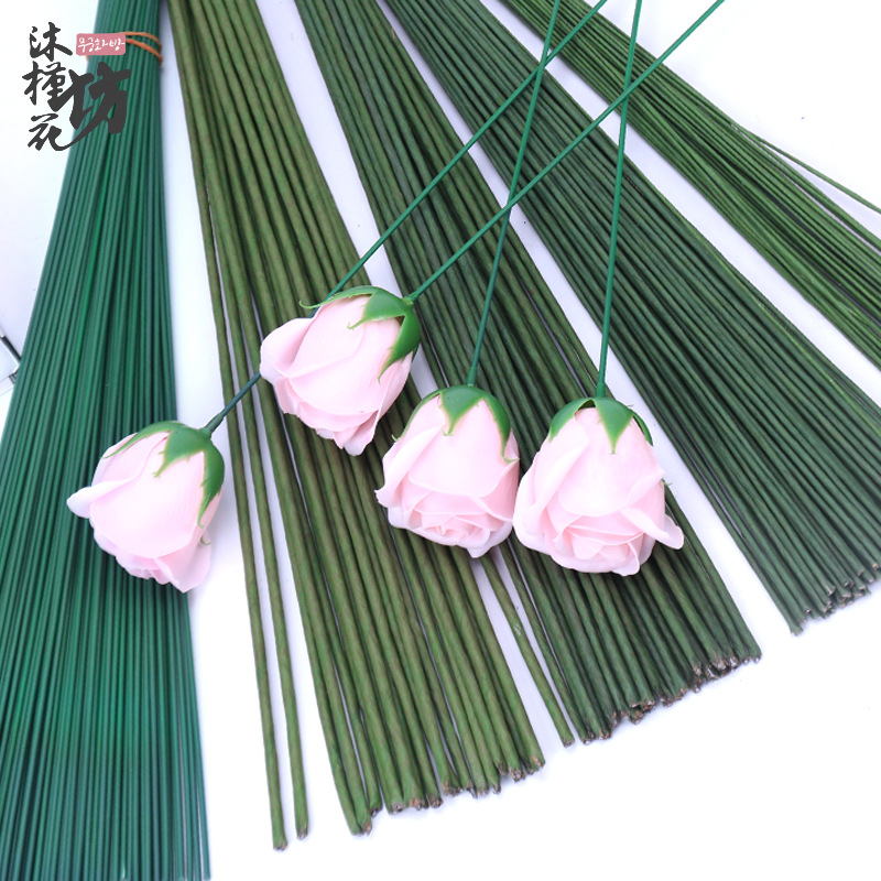 绿色纸包仿真花杆铁杆花店diy手工制作材料香皂花2号胶包花杆铁丝