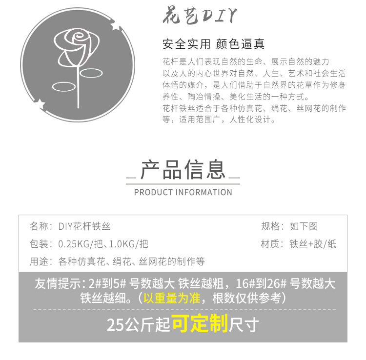 用途:可做纸藤花、水晶花、丝网花等仿真花花枝、花干等