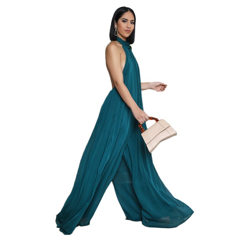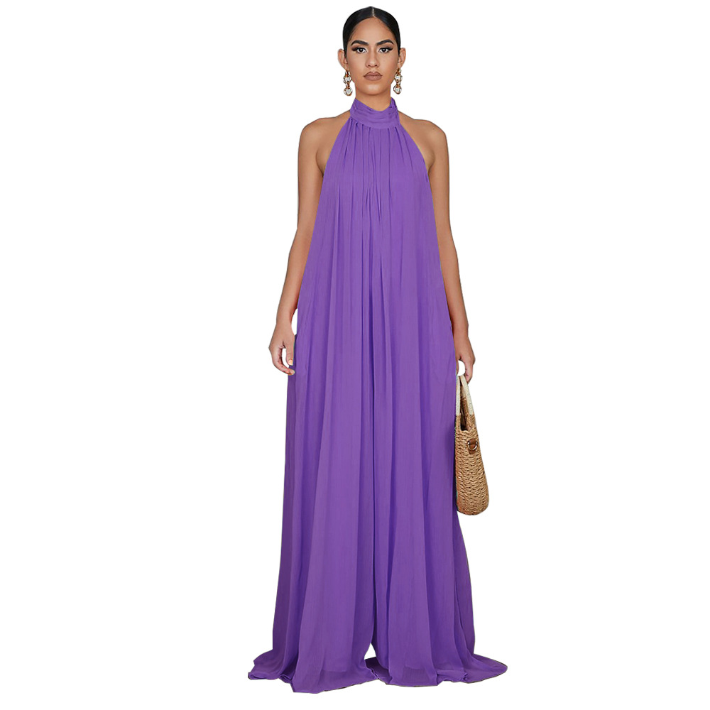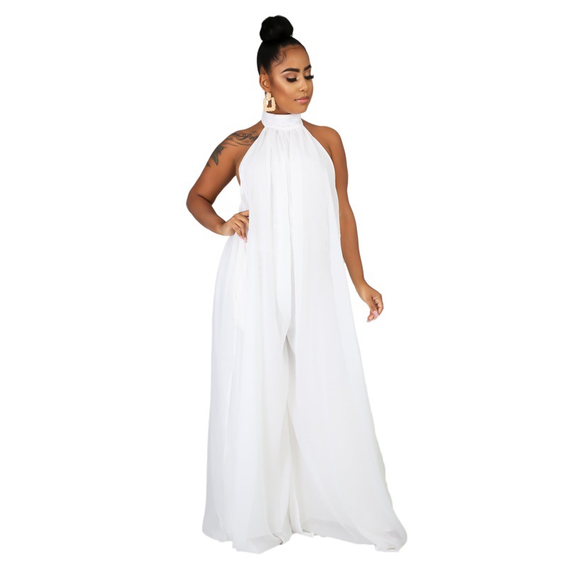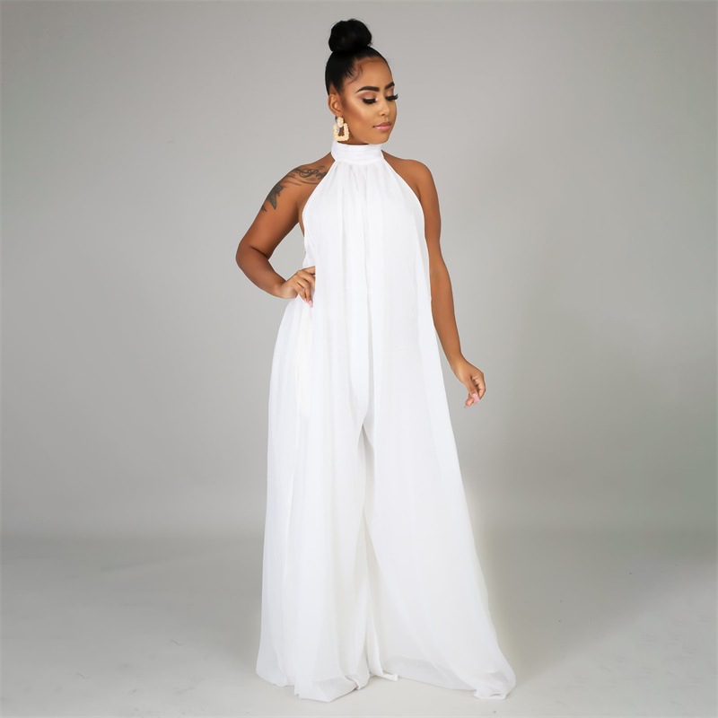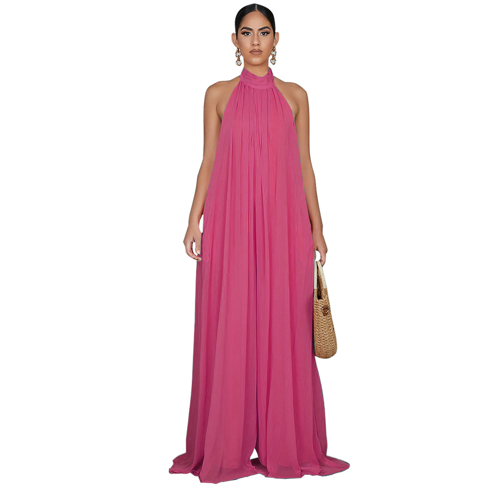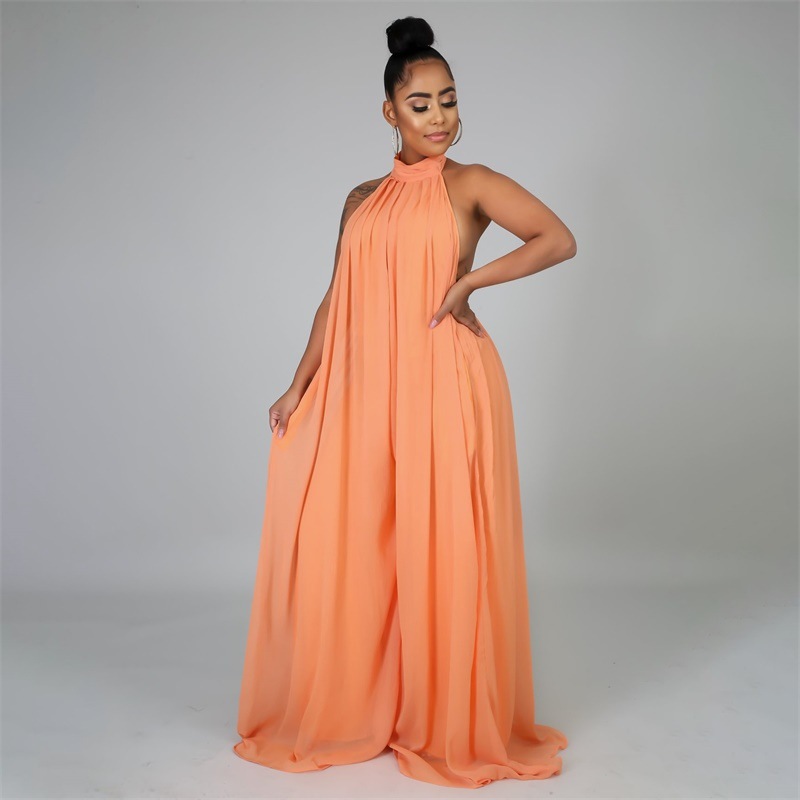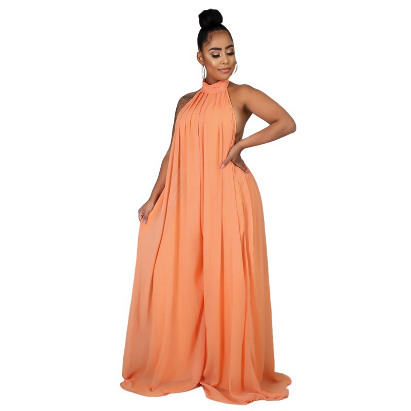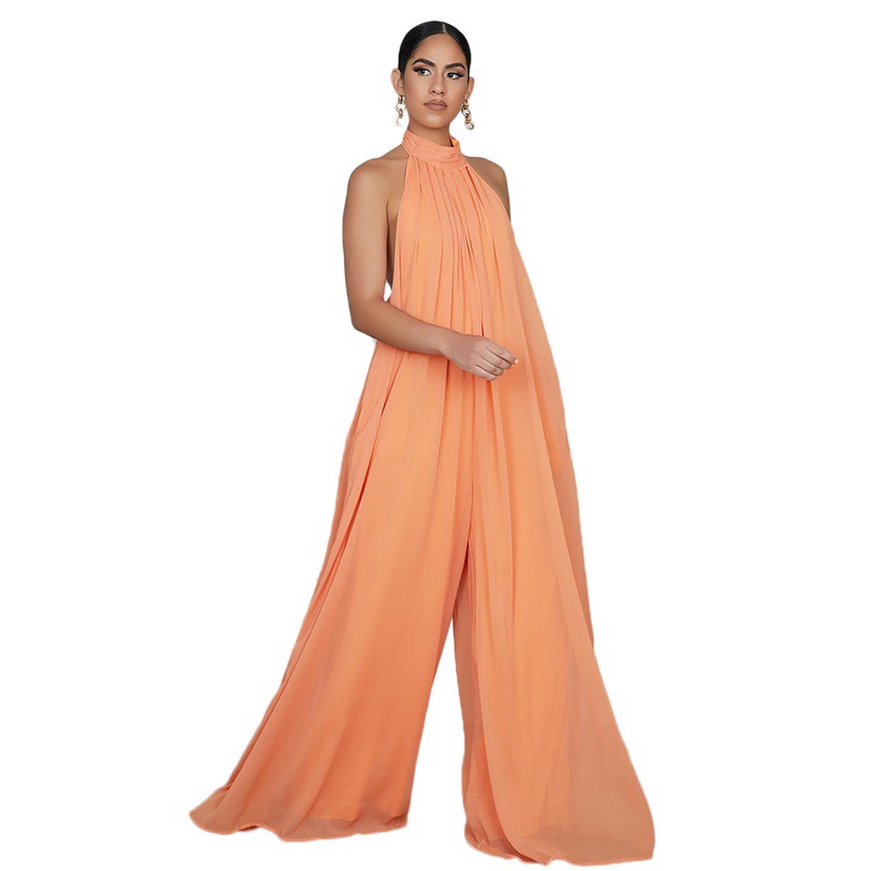 9342 欧美跨境休闲无袖雪纺宽松露背女装连体裤