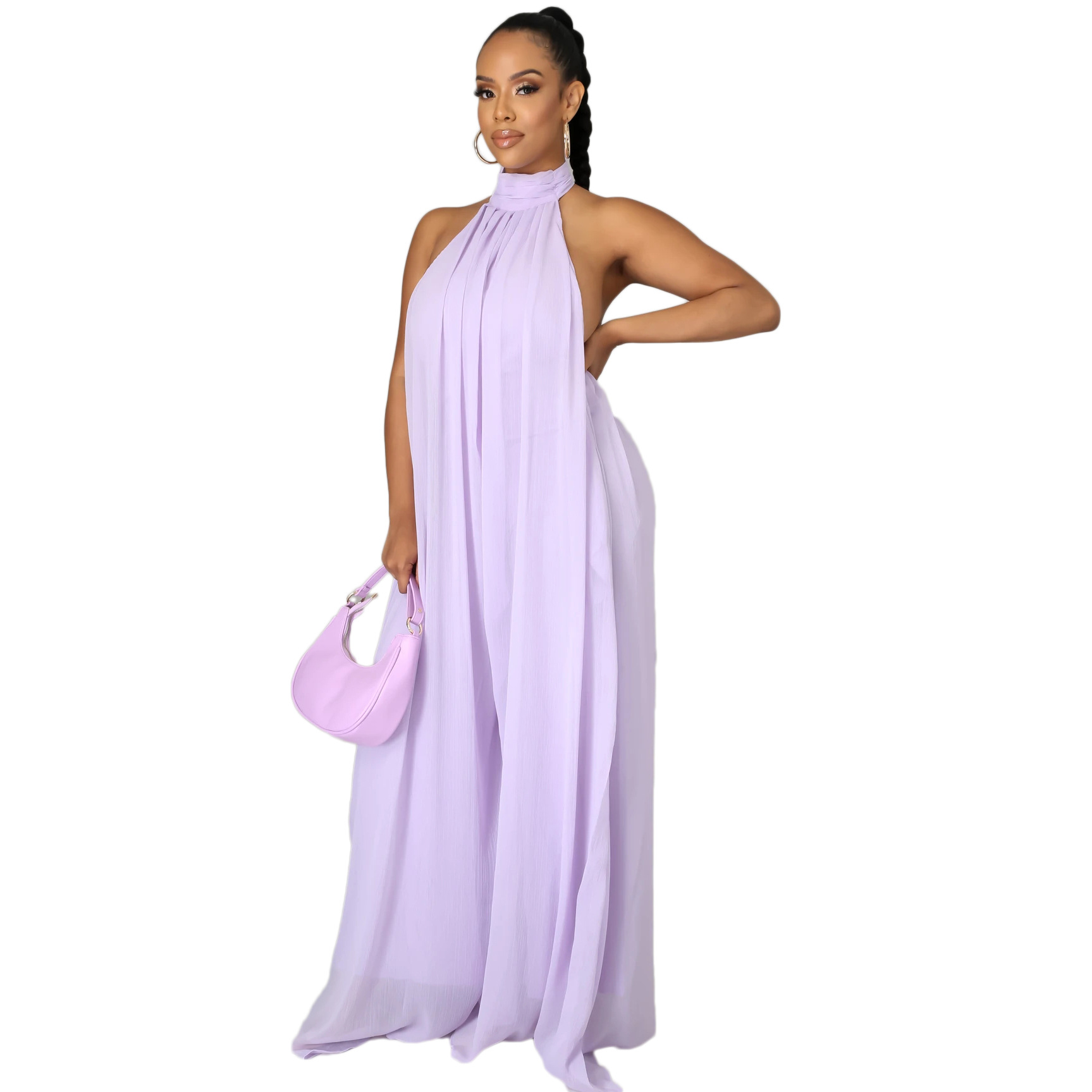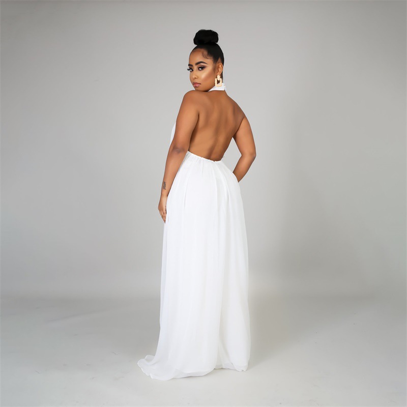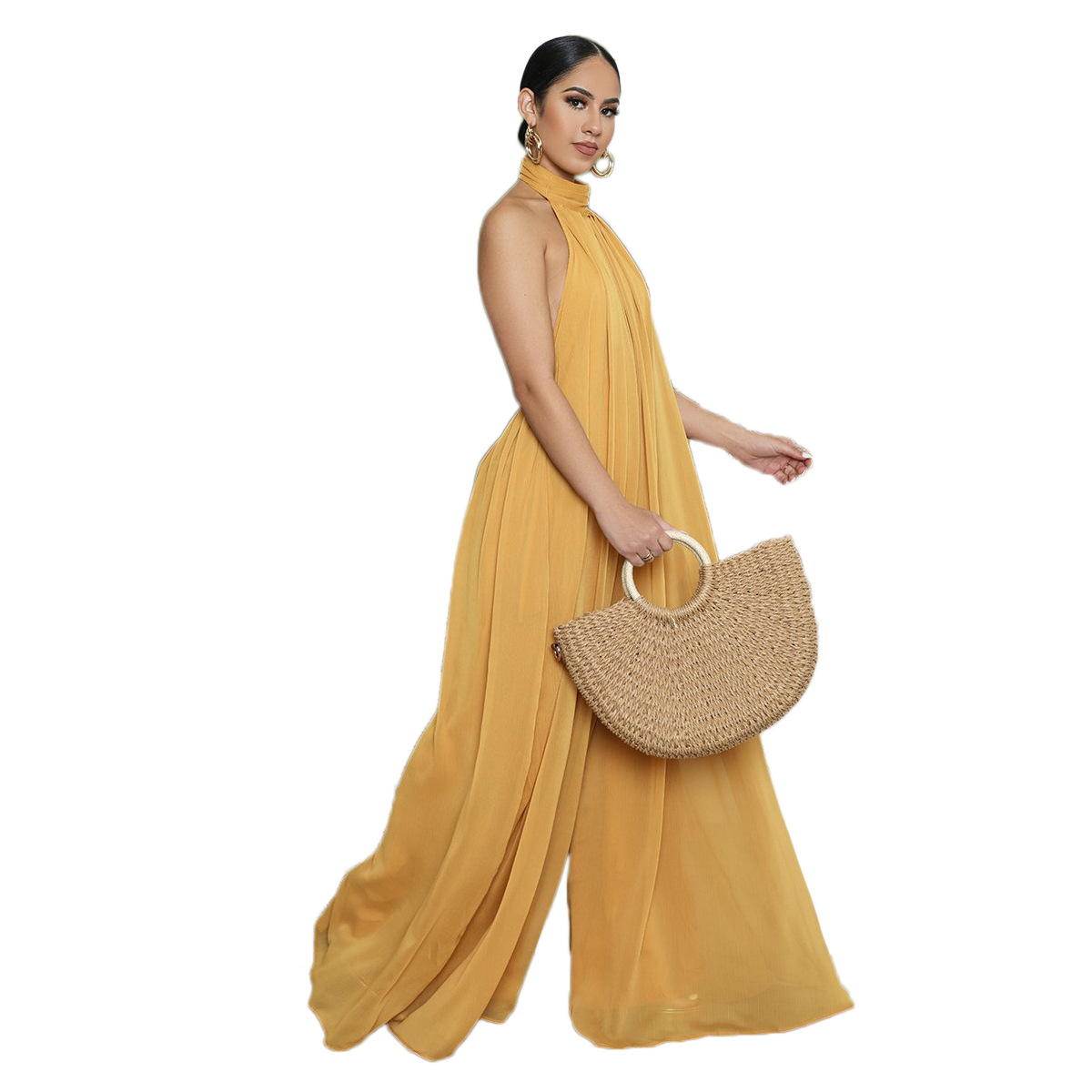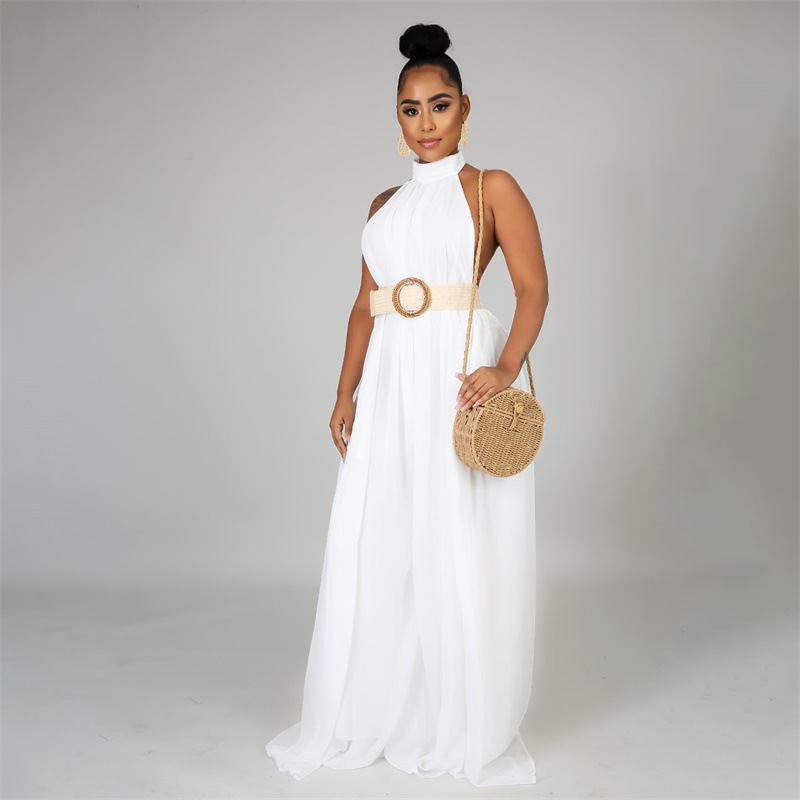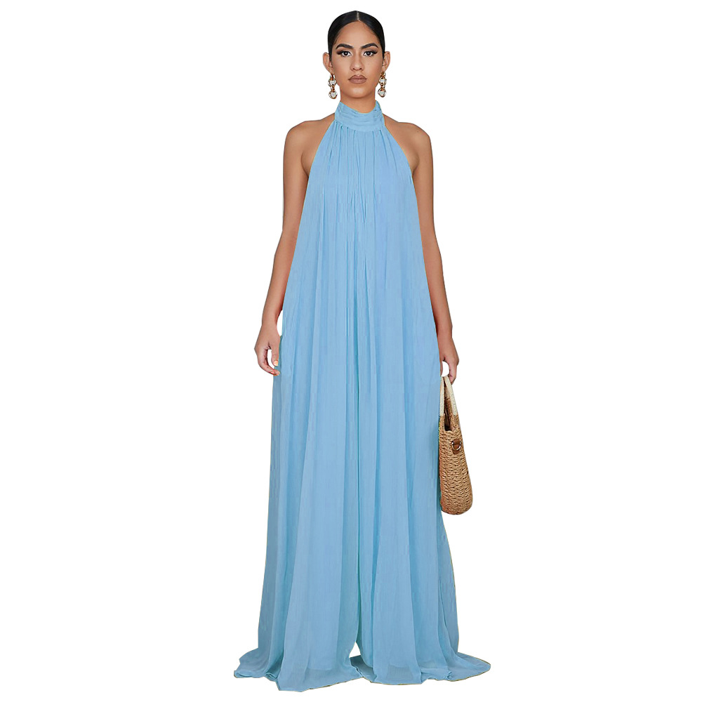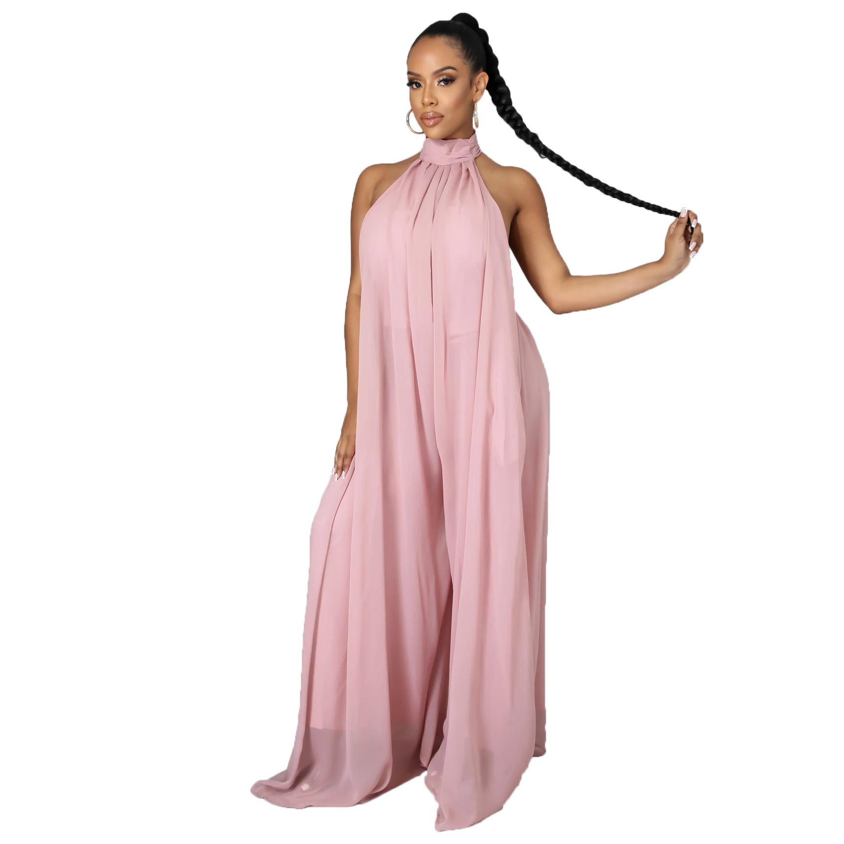 9342 欧美跨境休闲无袖雪纺宽松露背女装连体裤