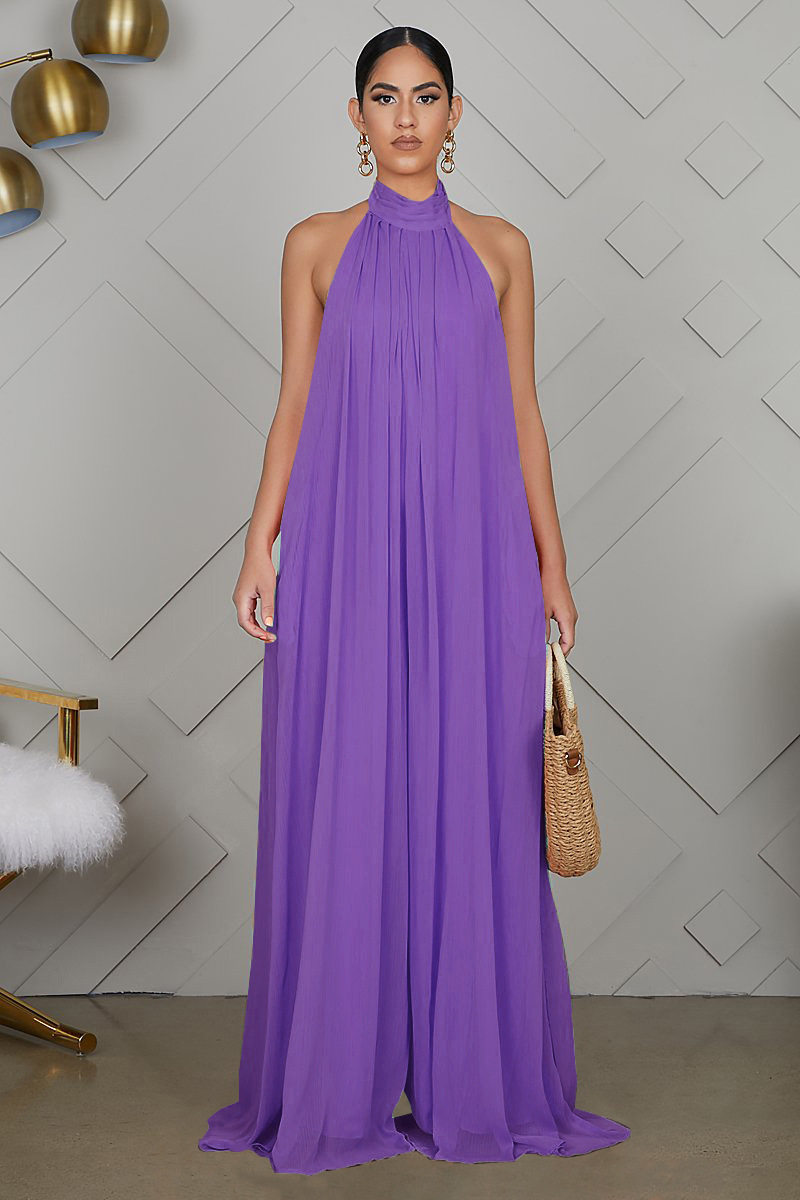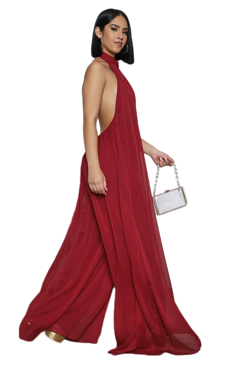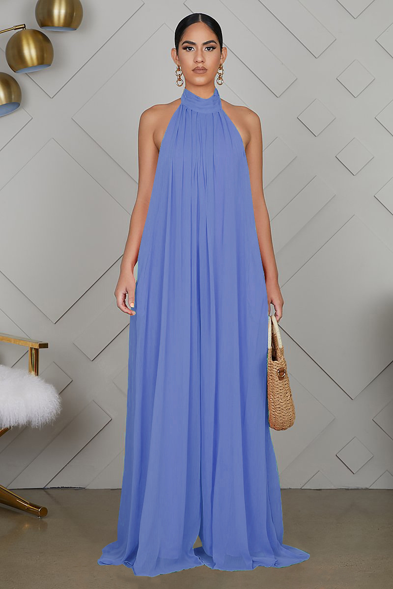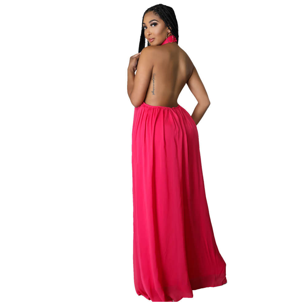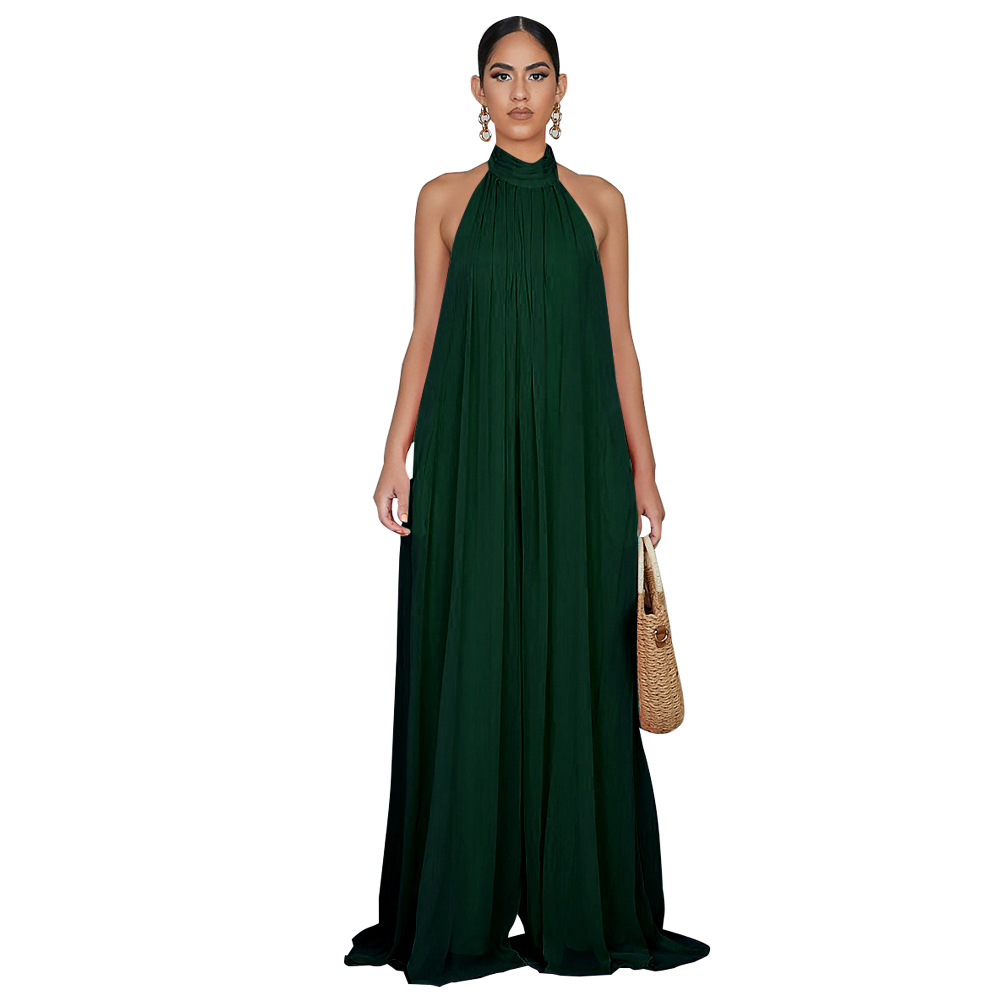 9342 欧美跨境休闲无袖雪纺宽松露背女装连体裤