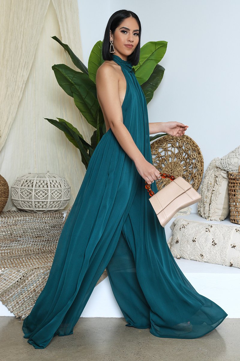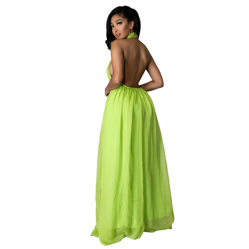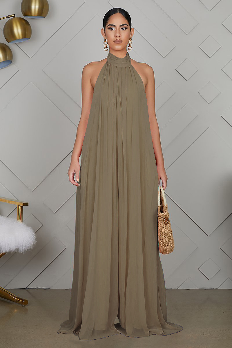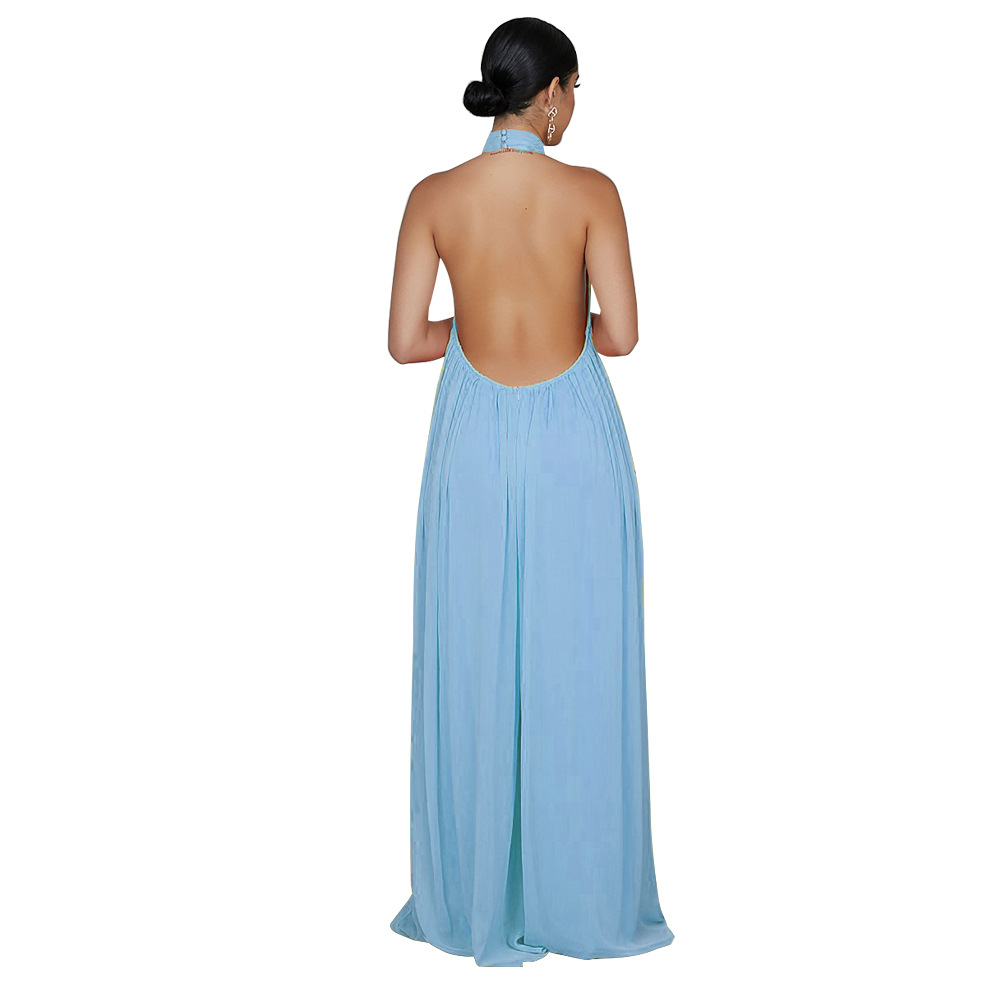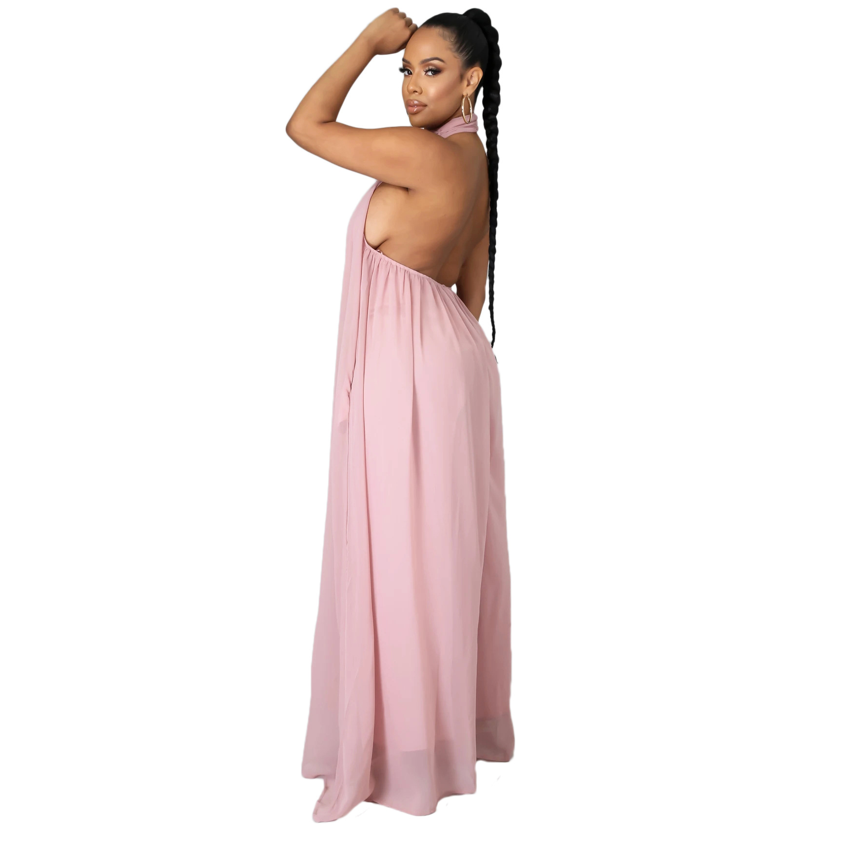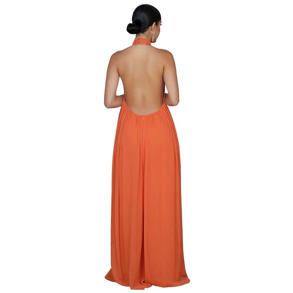 9342 欧美跨境休闲无袖雪纺宽松露背女装连体裤