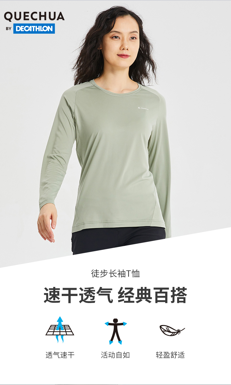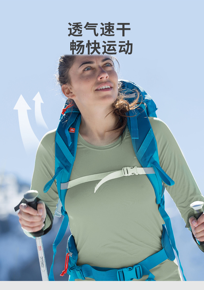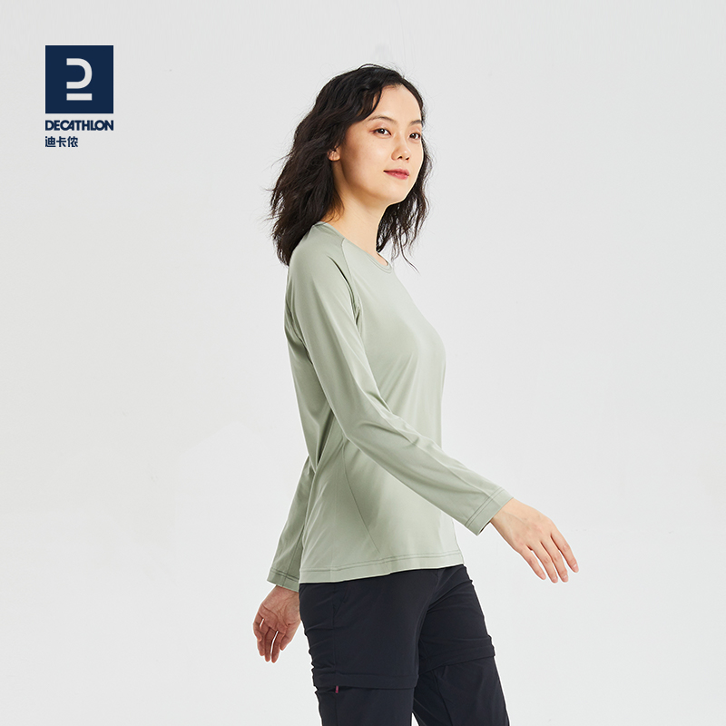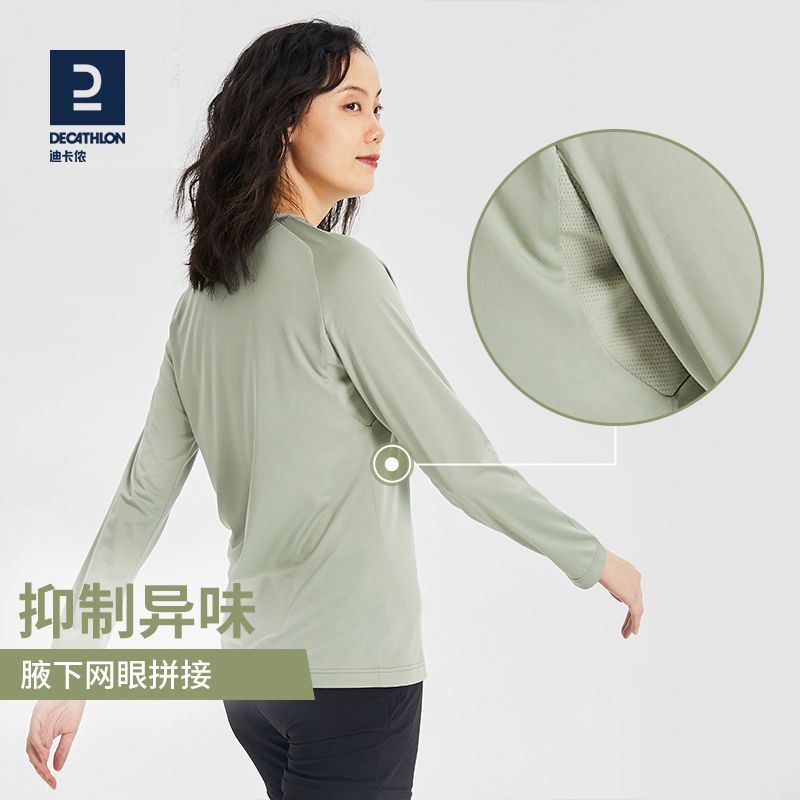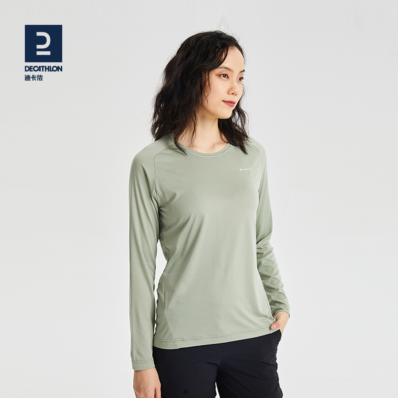 迪卡儂官方旗艦店衣戶外速乾T恤長袖女登山快乾排汗透氣運動ODT1