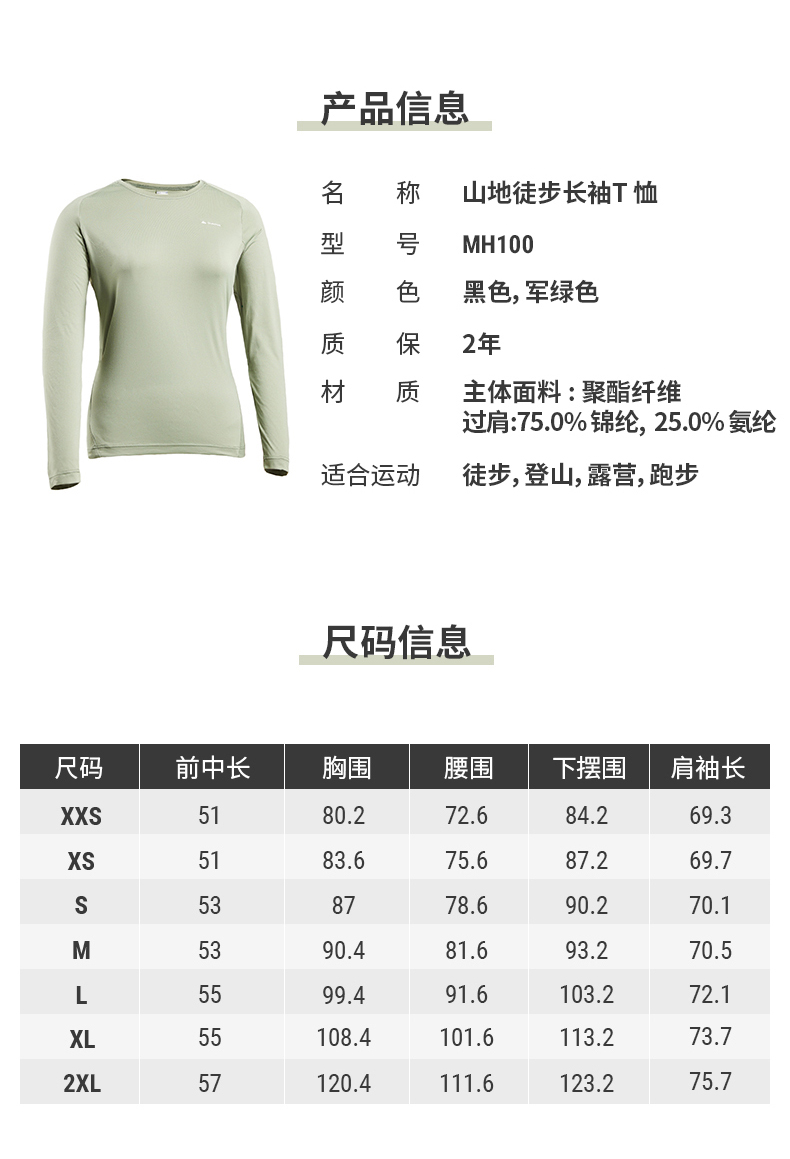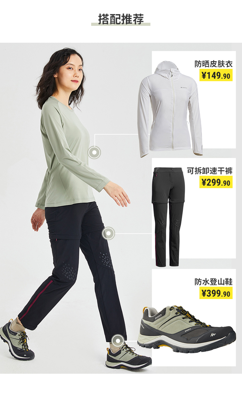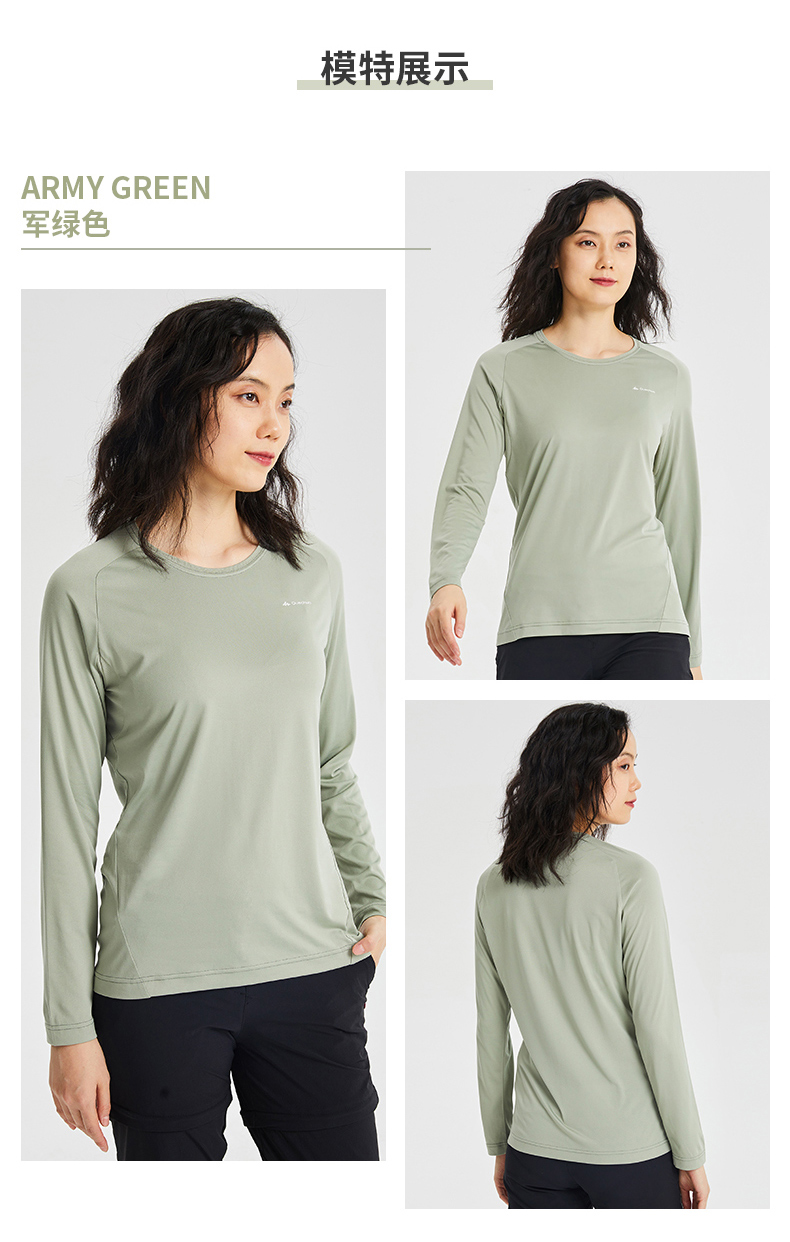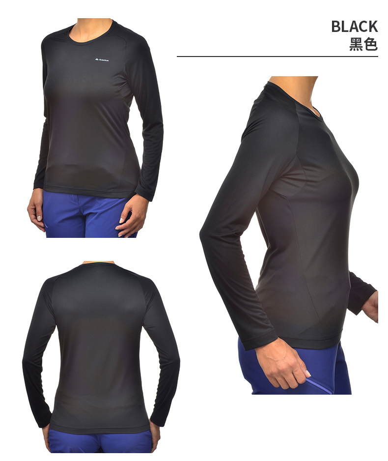 迪卡儂官方旗艦店衣戶外速乾T恤長袖女登山快乾排汗透氣運動ODT1