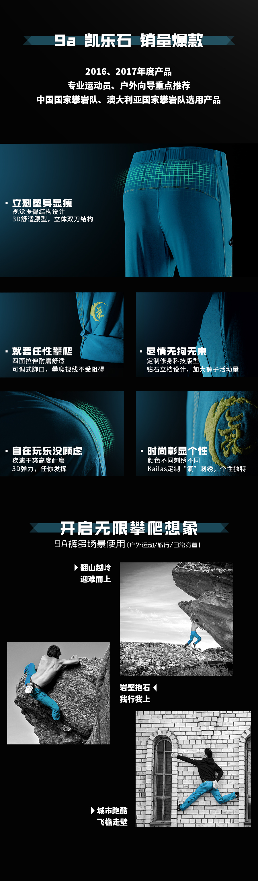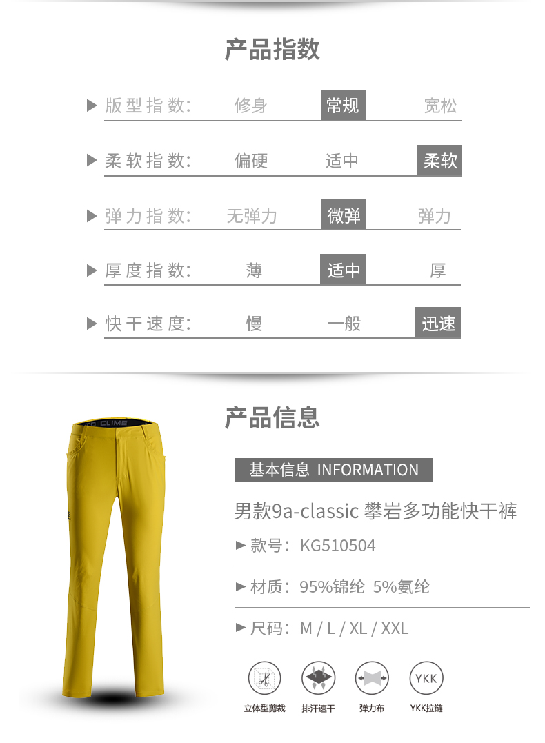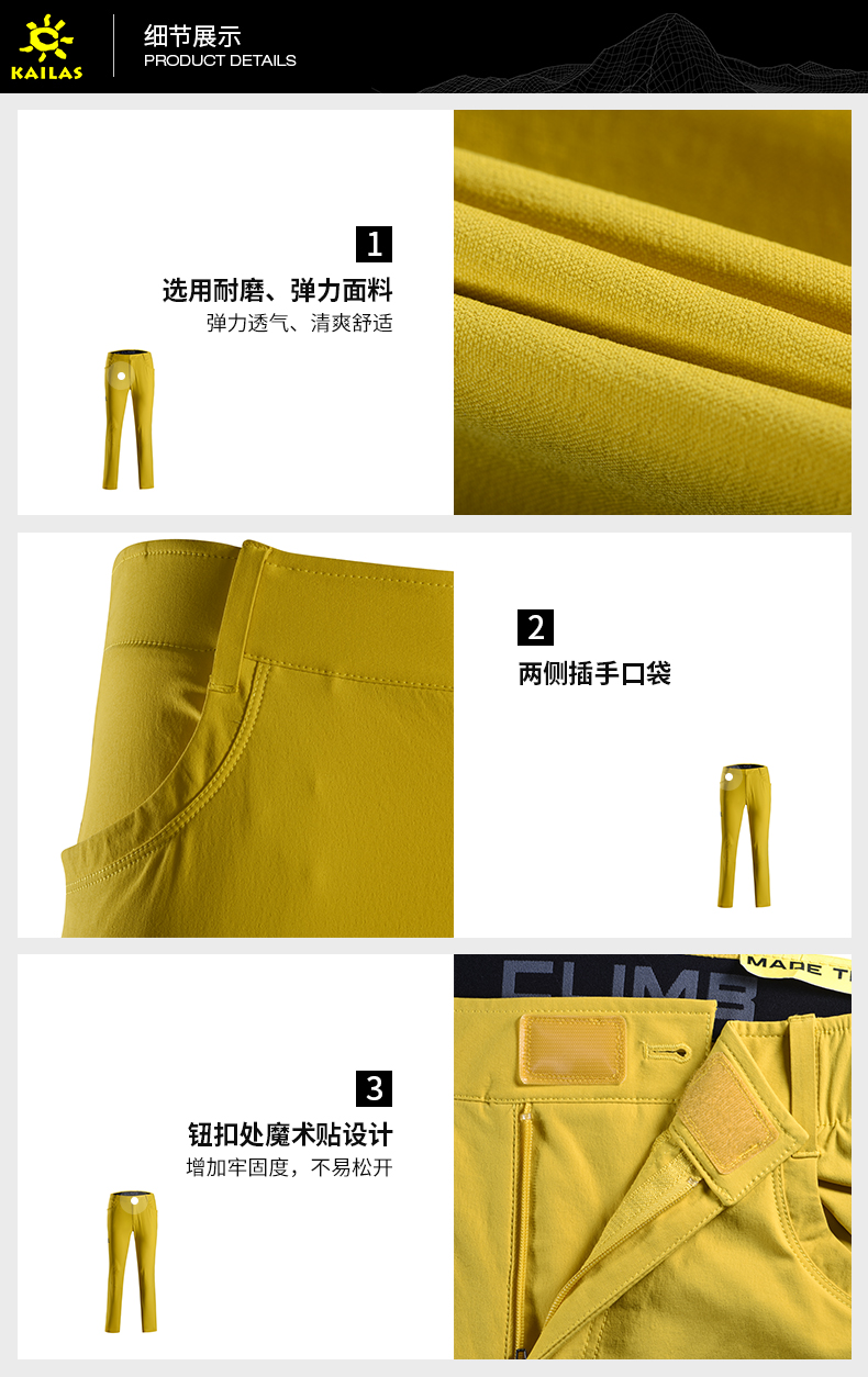 凱樂石新款彈力耐磨速乾攀巖褲男女運動快乾攀巖戶外長褲