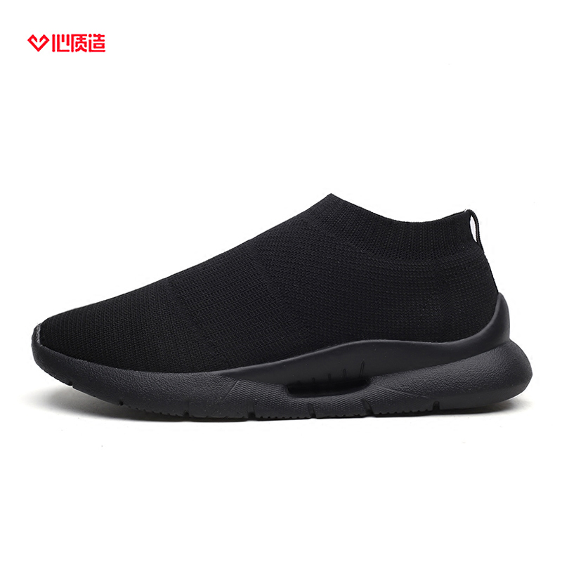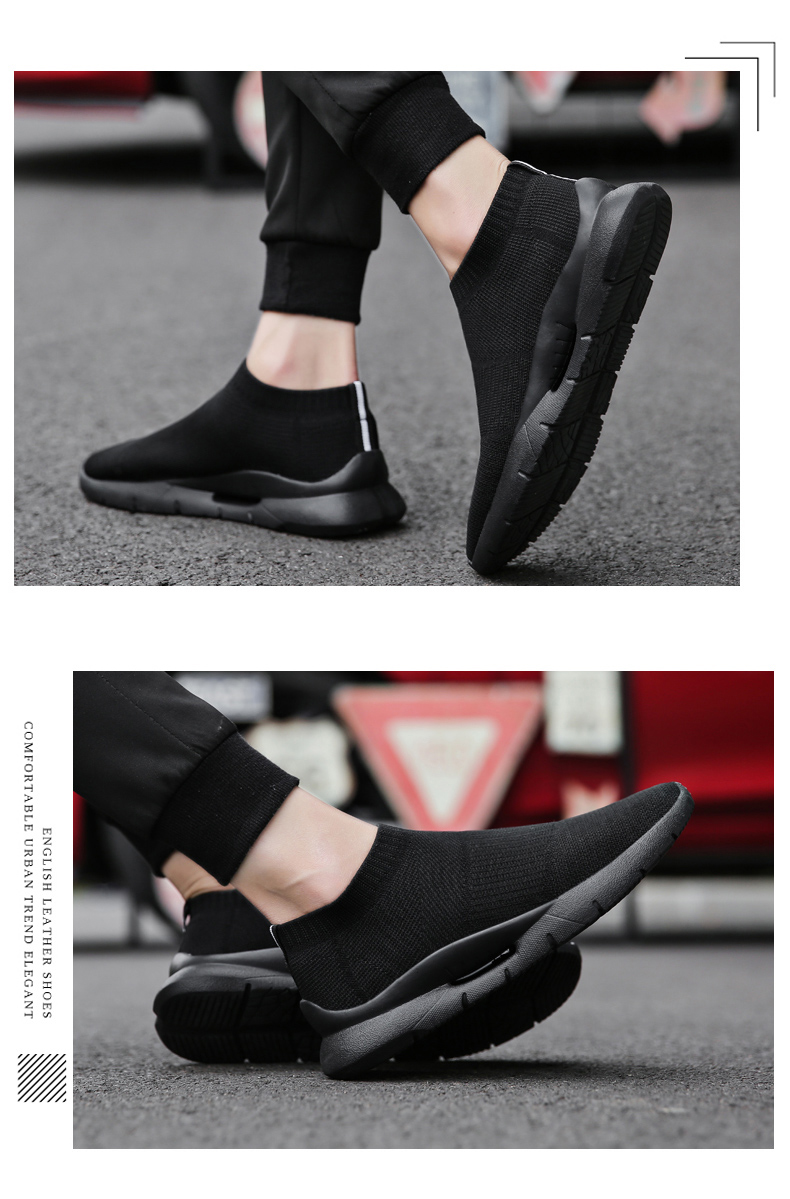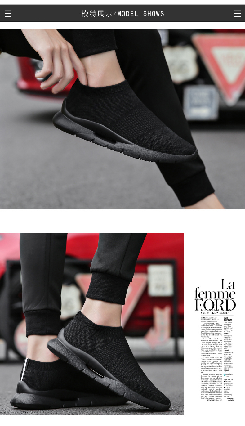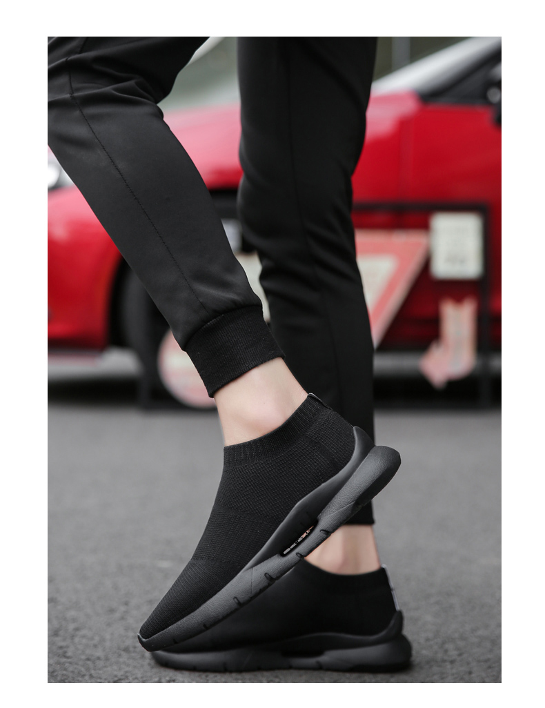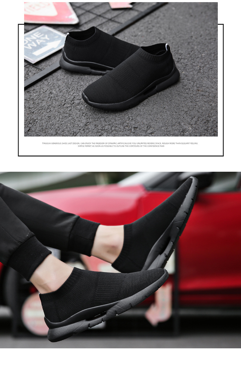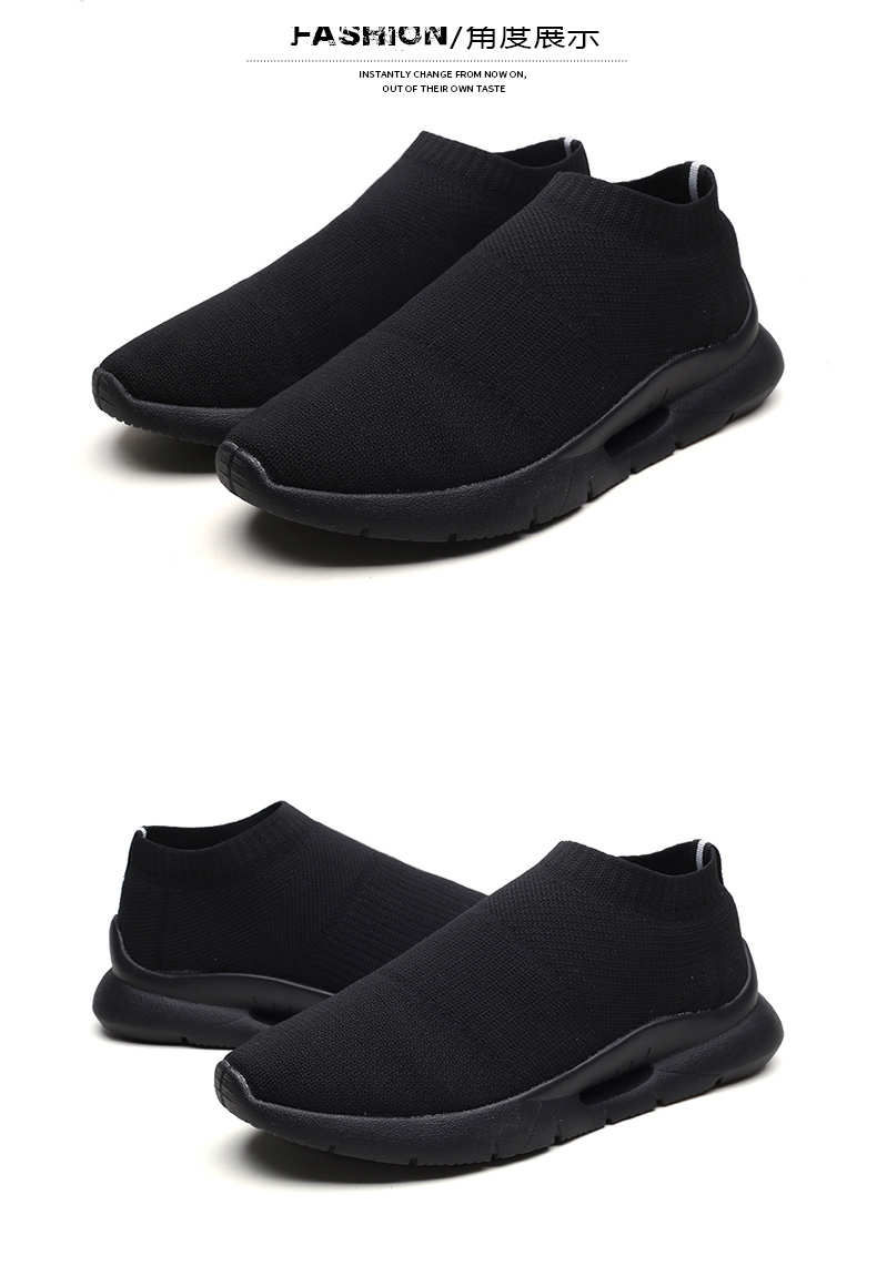 夏季透氣2023新款網鞋男鞋運動休閒一腳蹬飛織襪子全黑色男款潮鞋