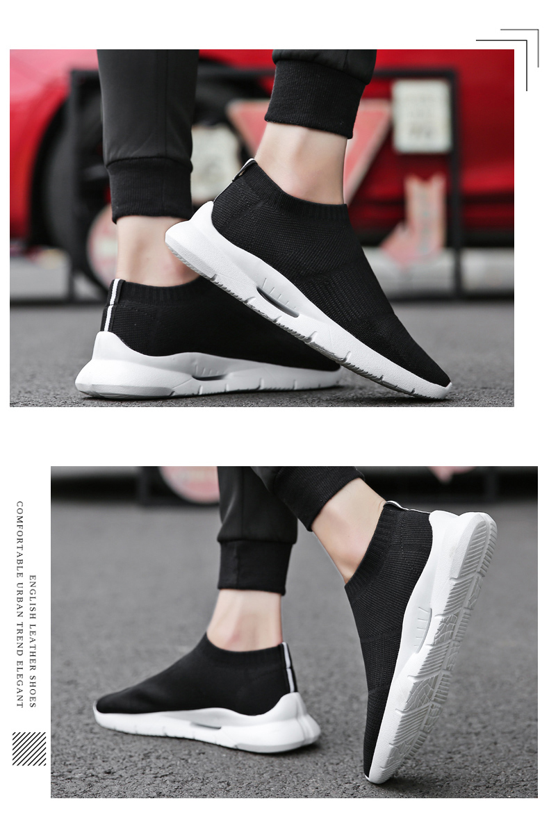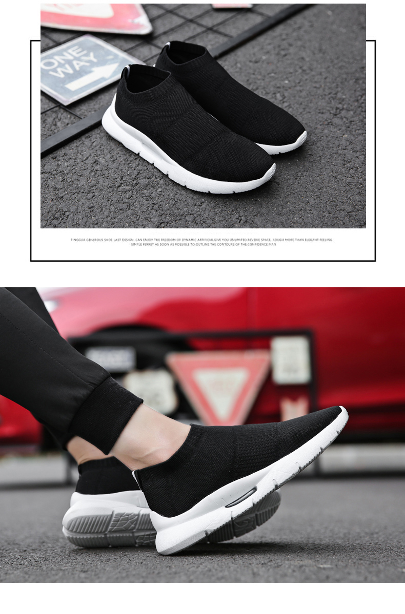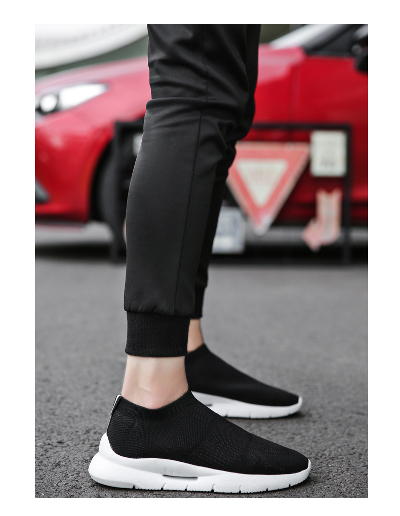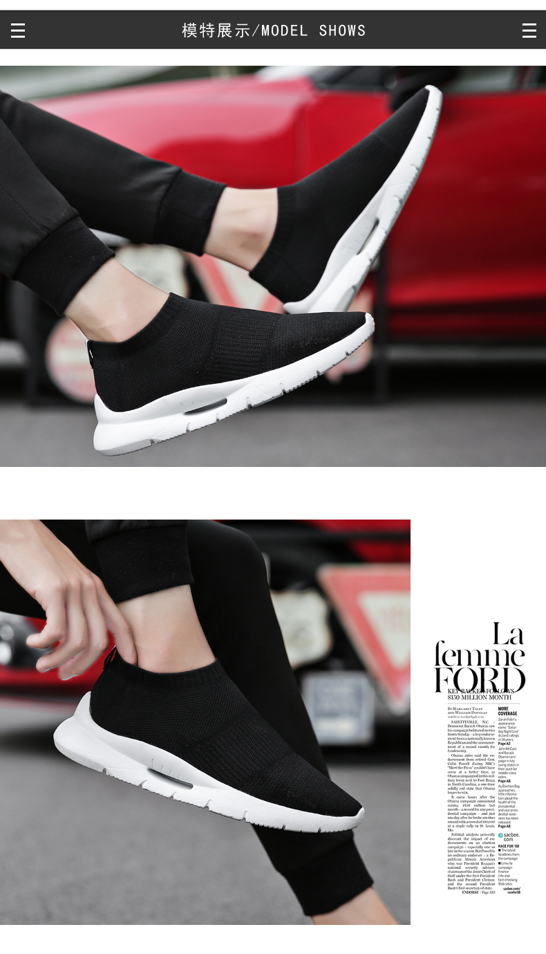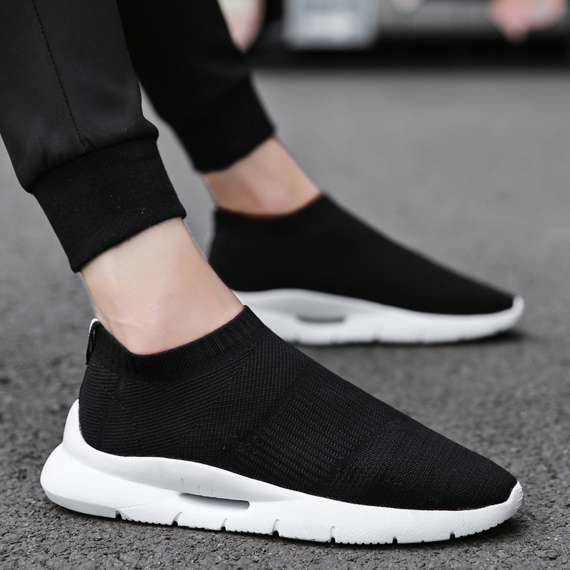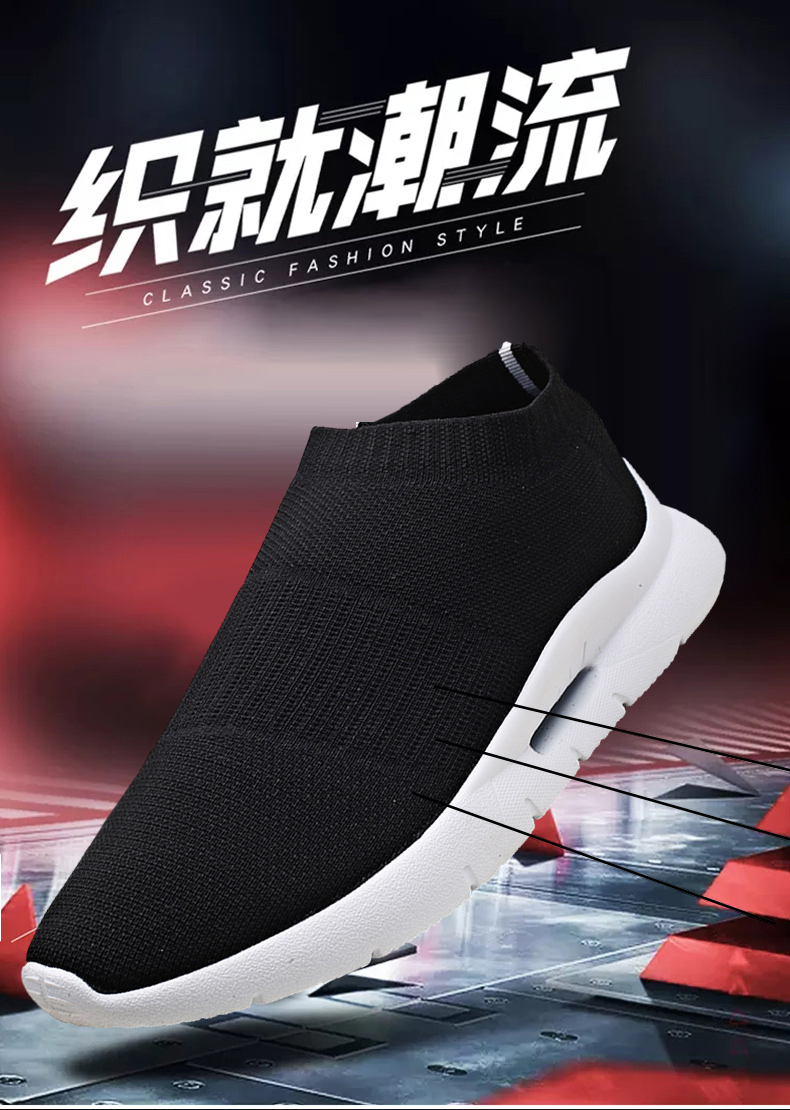 夏季透氣2023新款網鞋男鞋運動休閒一腳蹬飛織襪子全黑色男款潮鞋