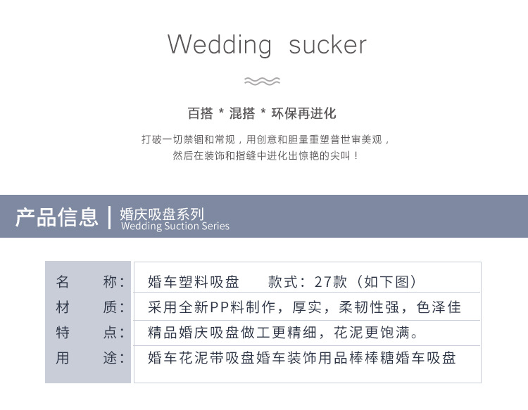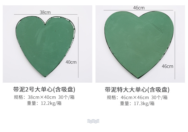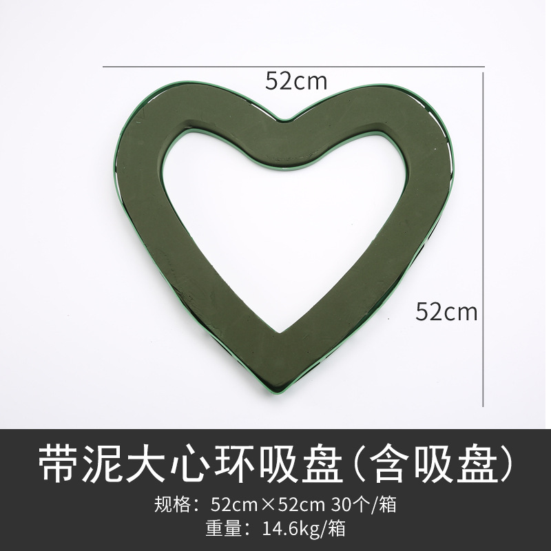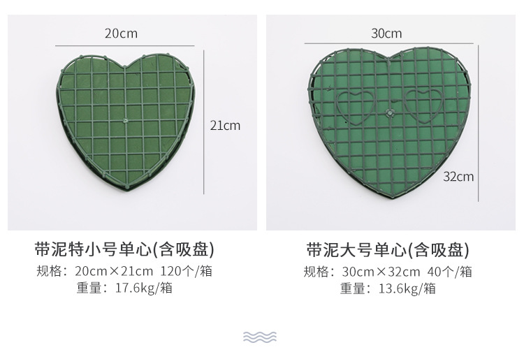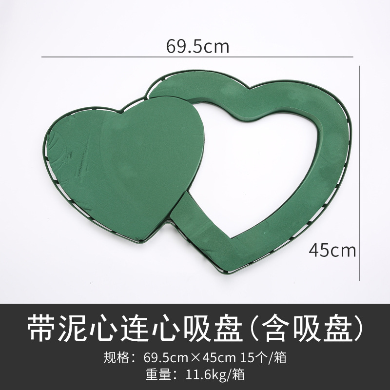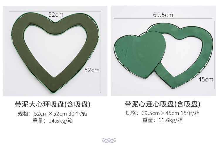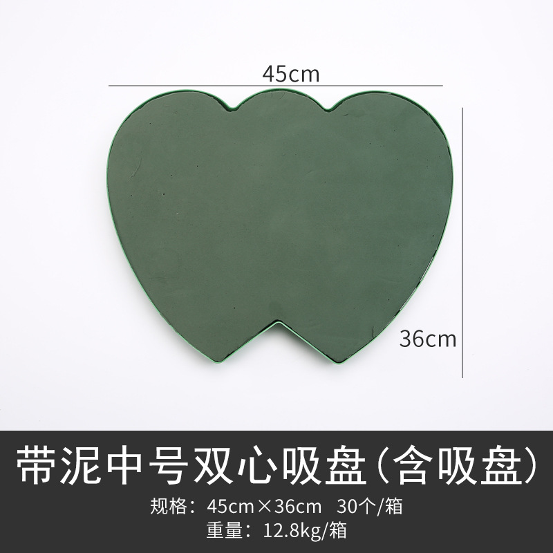 重量:小号带泥桃心吸盘0.15kg/个 中号带泥桃心吸盘0.35kg/个 大号桃心和双心带泥吸盘0.6kg/个 用途:做婚车插花吸盘 婚车花泥带吸盘花车花泥心盘婚车装饰车头花吸盘婚车车花吸盘带泥  使用方法:将有吸盘面放在汽车身,会自然吸附在车身上